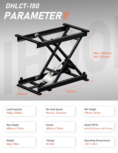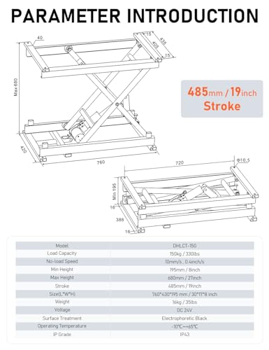 DIHOOL Electric Scissor Lift Table 350Lbs, 195-680MM Height Adjustable Electric Lifting Platform