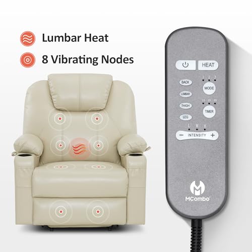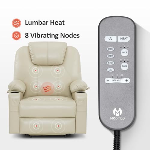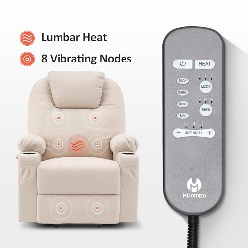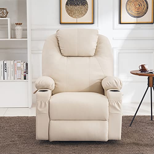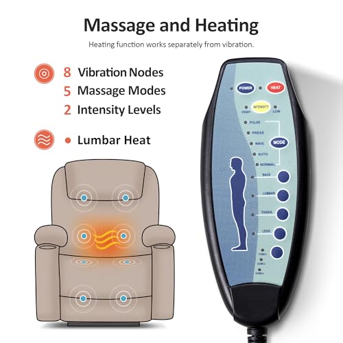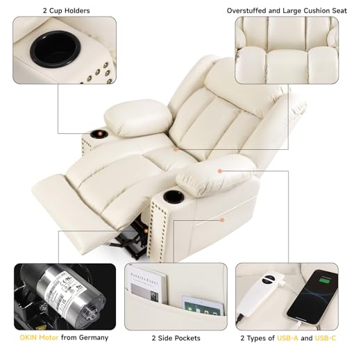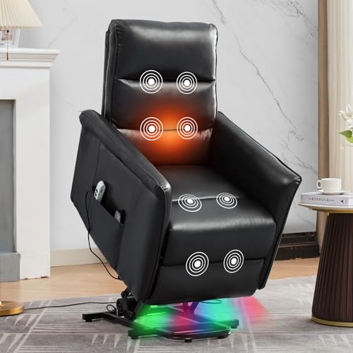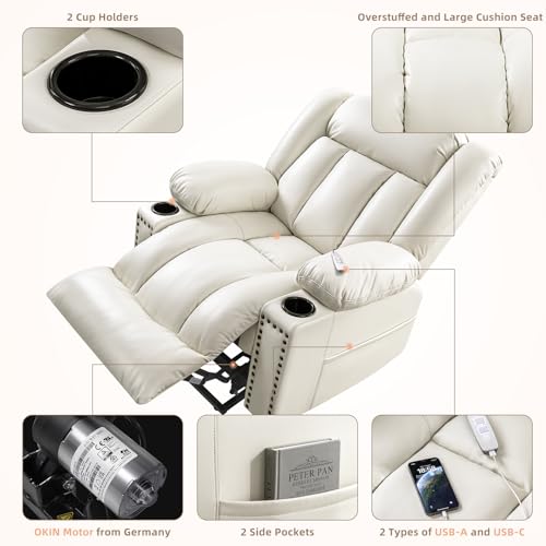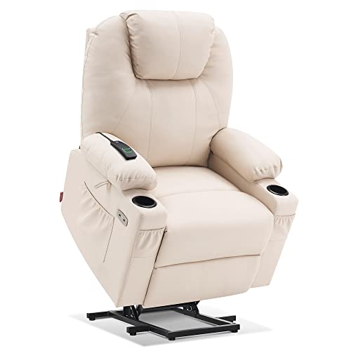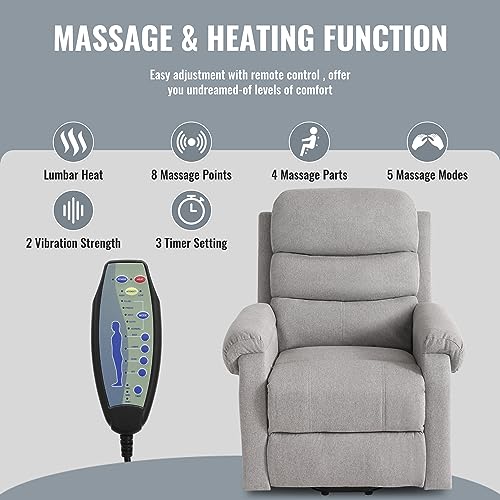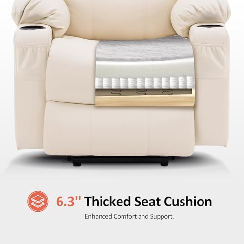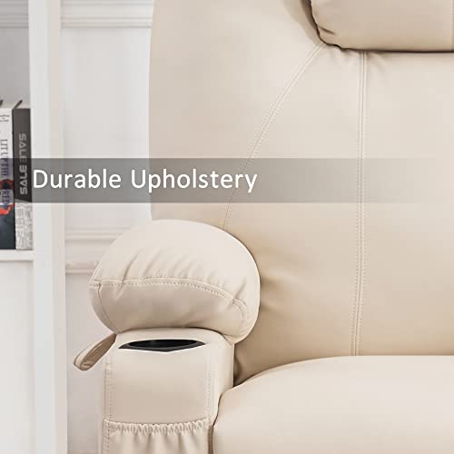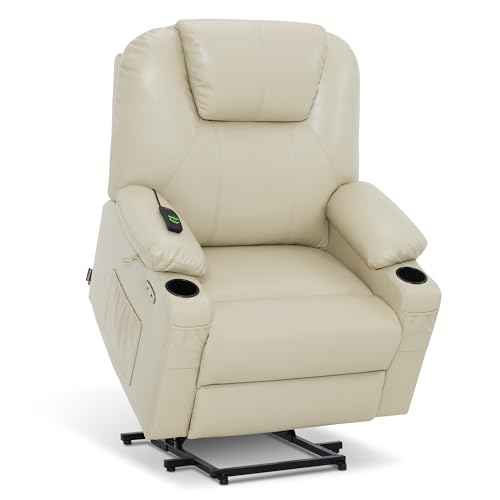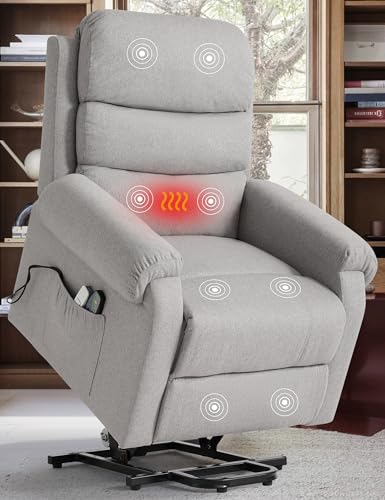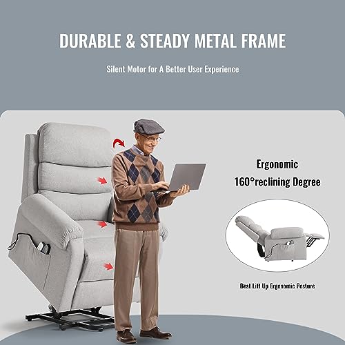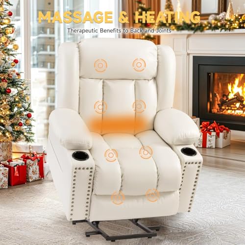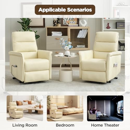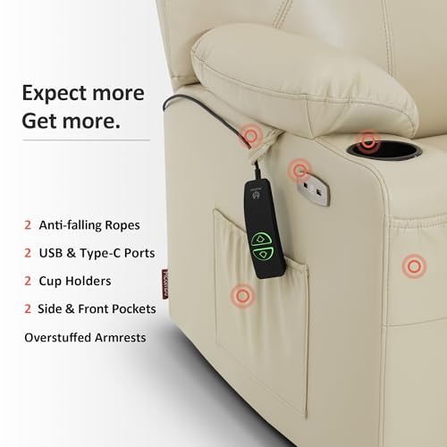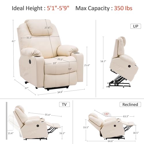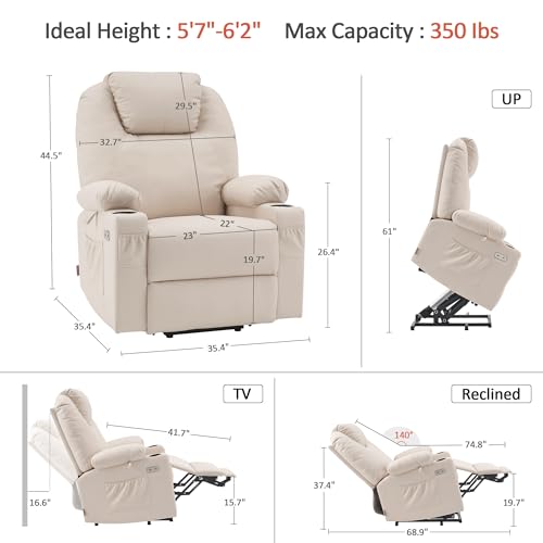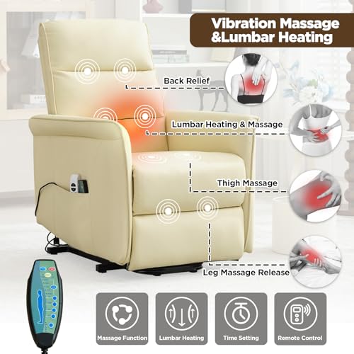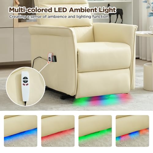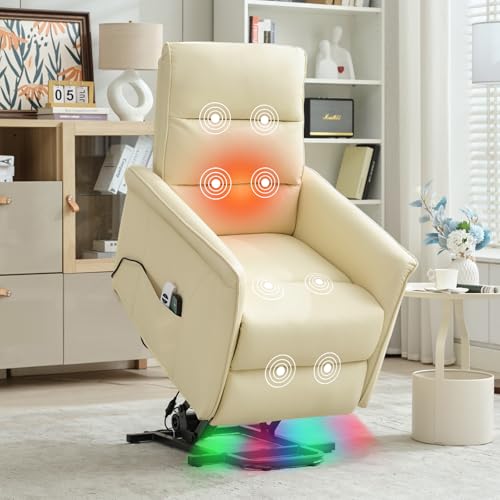 MANBUR Power Lift Recliner with Vibration and Lumbar Heat, Electric Power Lift Chair Recliner Chair, Home Theater Seating RV Recliner Living Room Chair with Side Pockets, LED Light, USB Port(Beige)