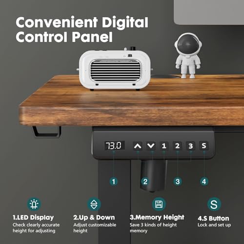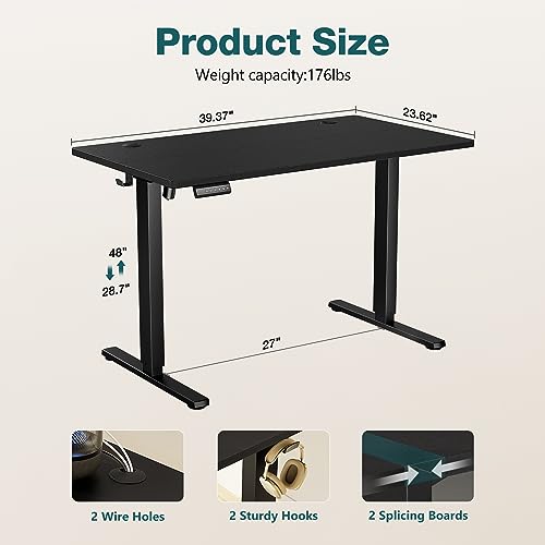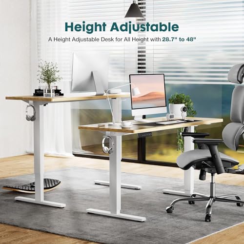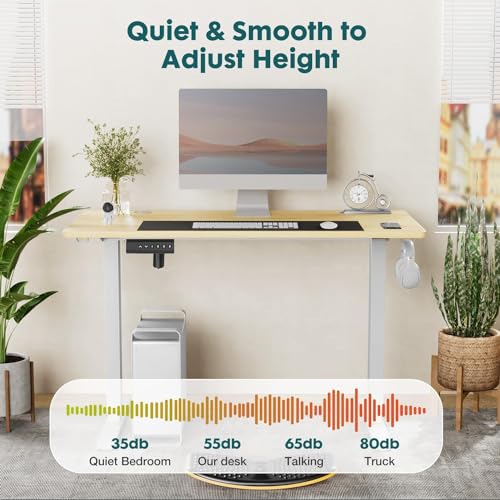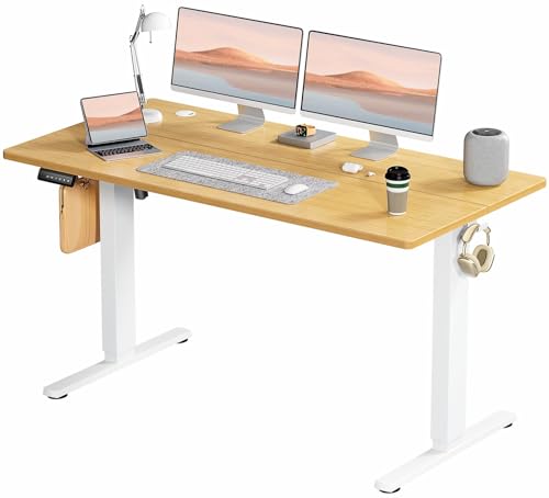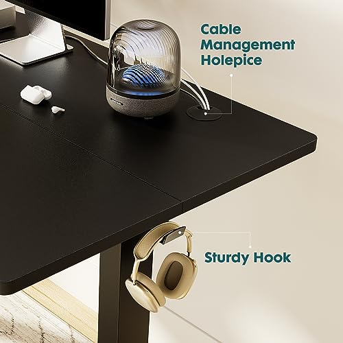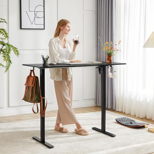 Standing Desk, Adjustable Height Electric Sit Stand Up Down Computer Table, 55x24 Inch Ergonomic Rising Modern Lift Motorized Gaming Desktop Workstation for Work Home Office, Black