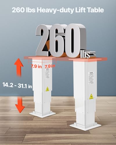 VEVOR Electric Lifting Column System, 176 lbs Lift Table, 14.2-31.1 in Height Range, Three-Stage Adjustable Desk Column, Telescopic Table Leg, Comes with Power-Supply Option to Control up/Down Motion