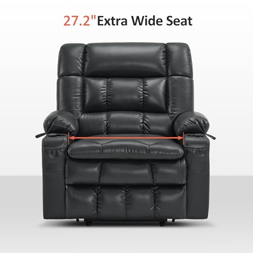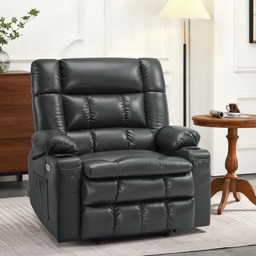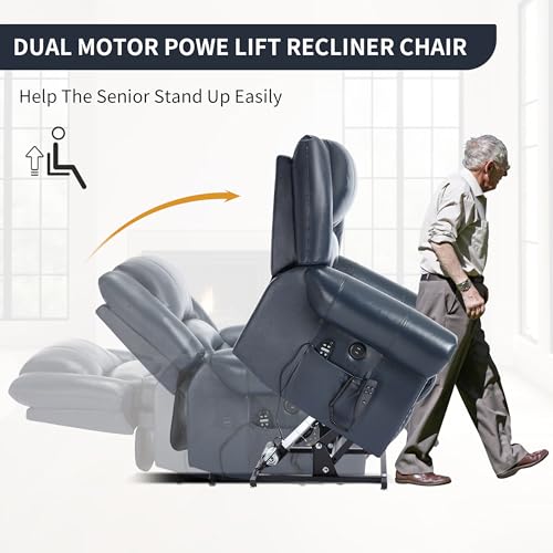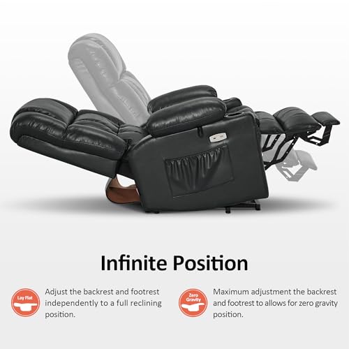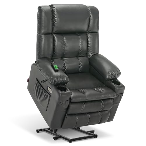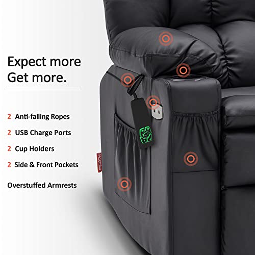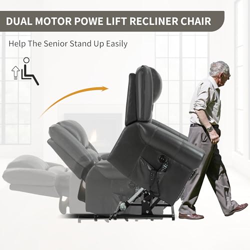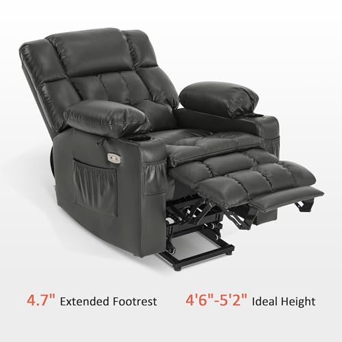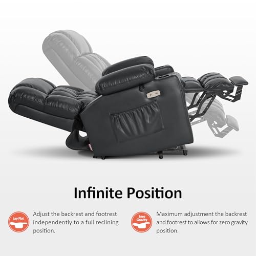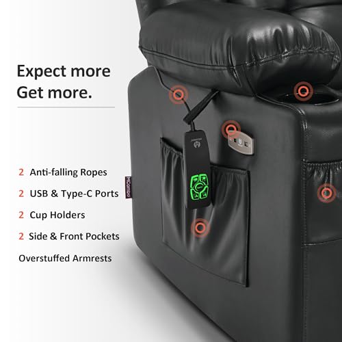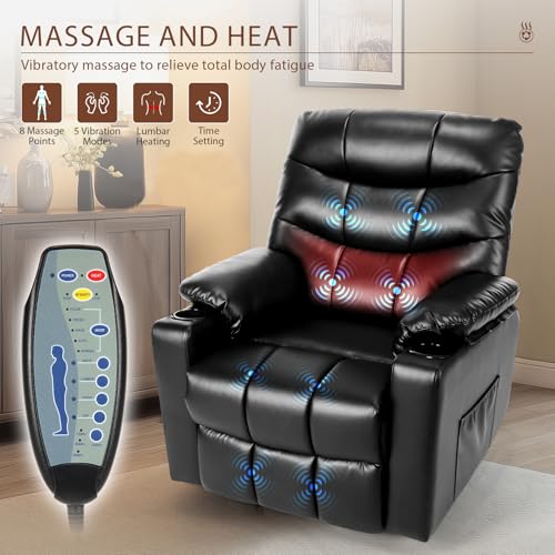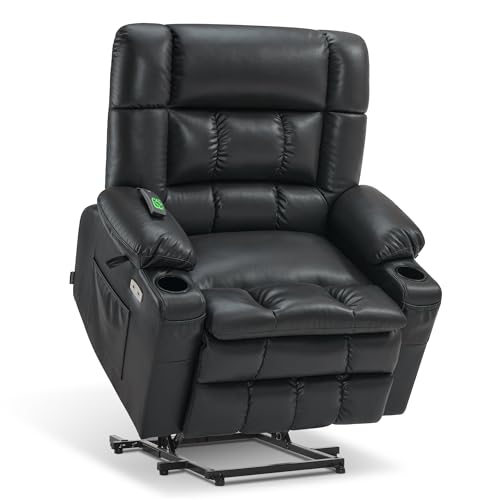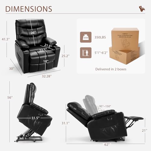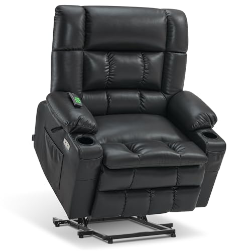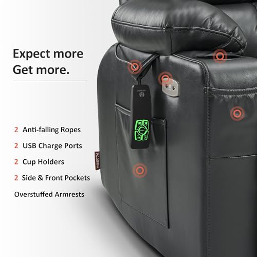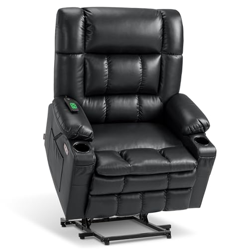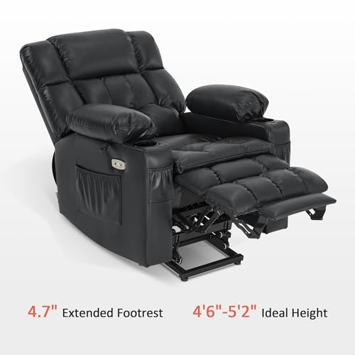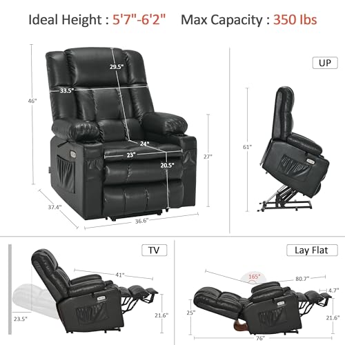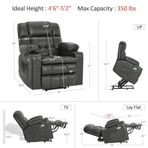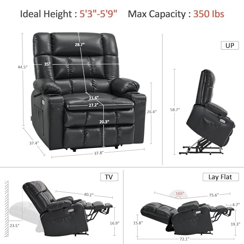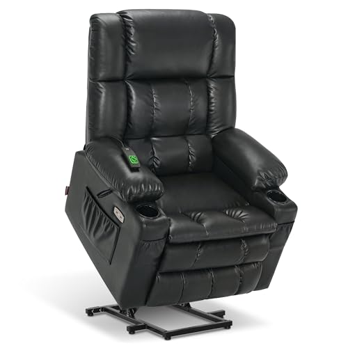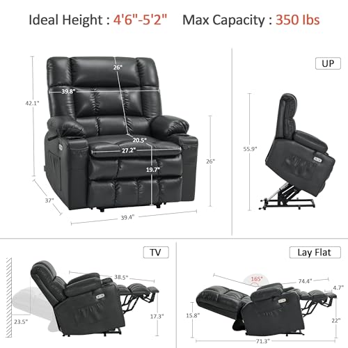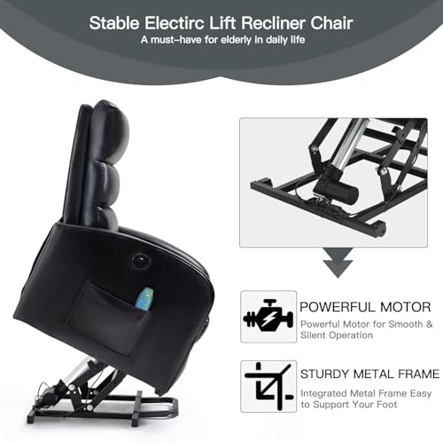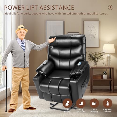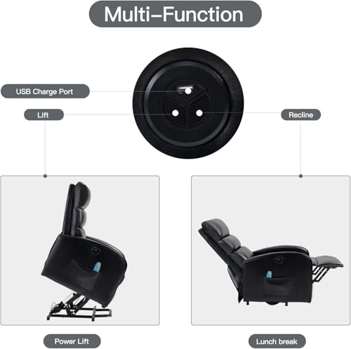 Himimi PU Leather Electric Power Lift Chair Recliners Massage with Heat and Massage, Adjustable Back Leg, USB Ports, Cupholders, Lift Chairs for The Elderly (Black)