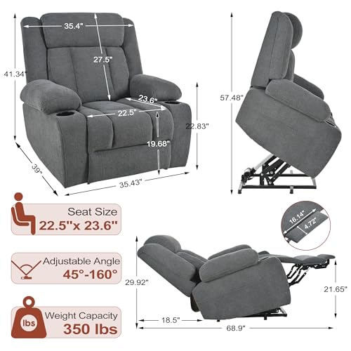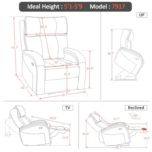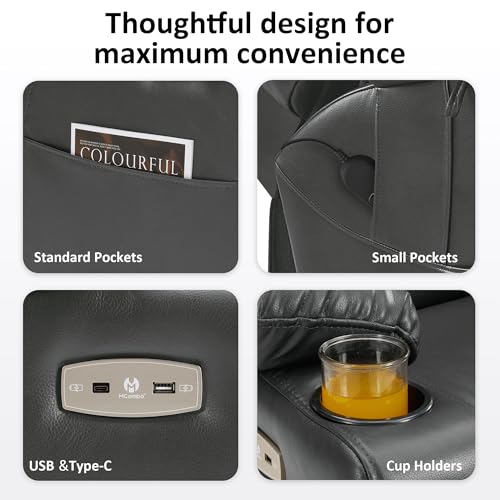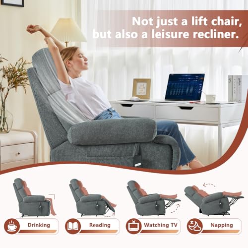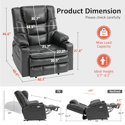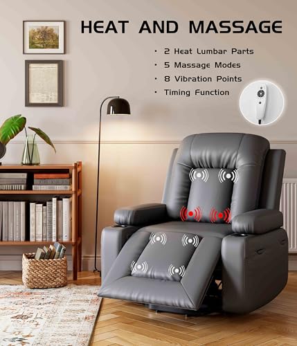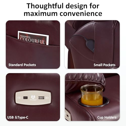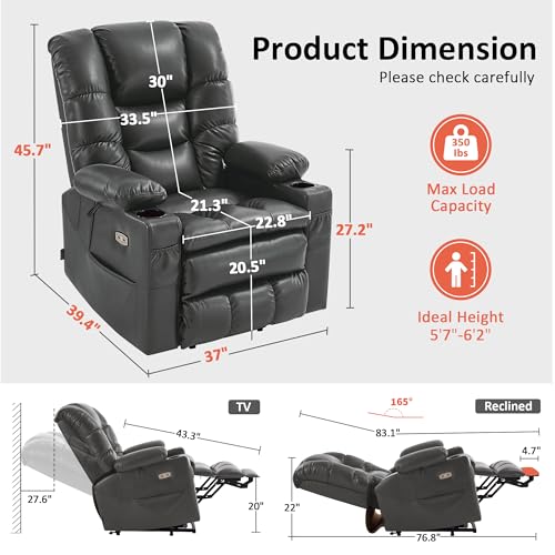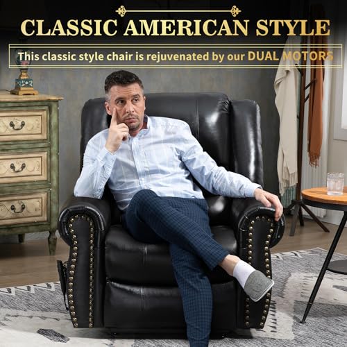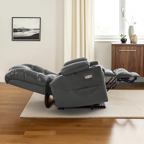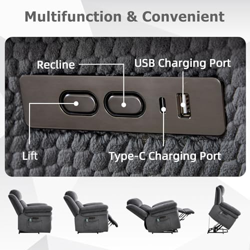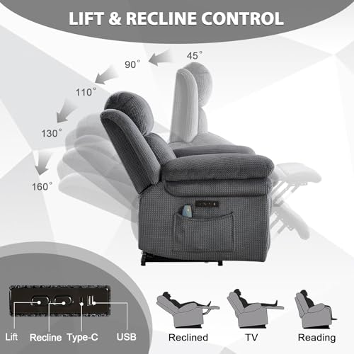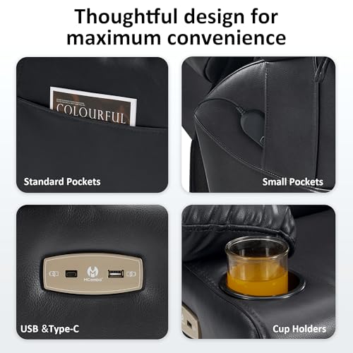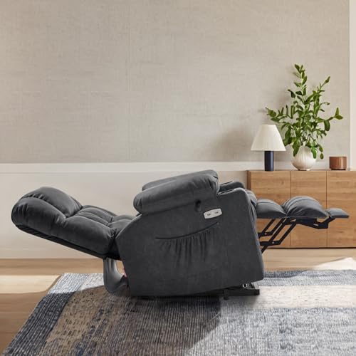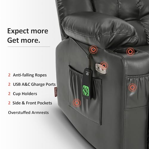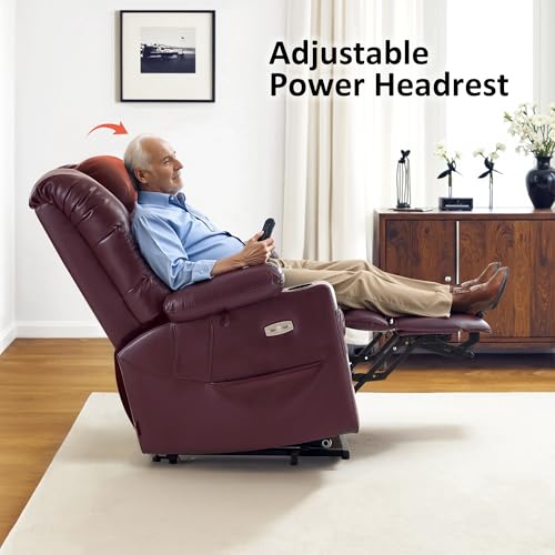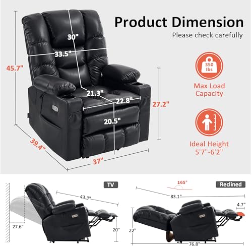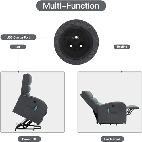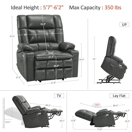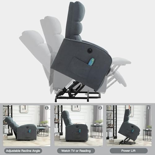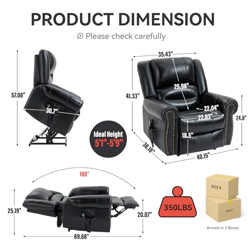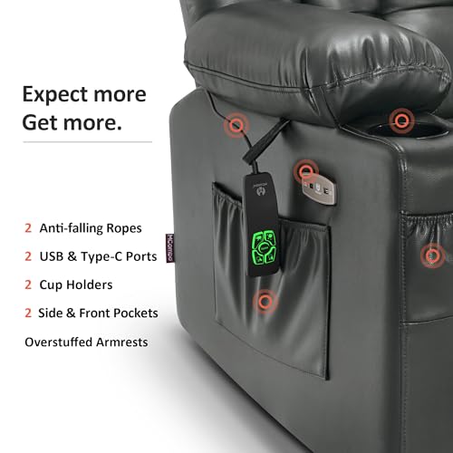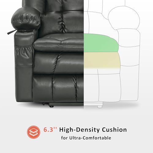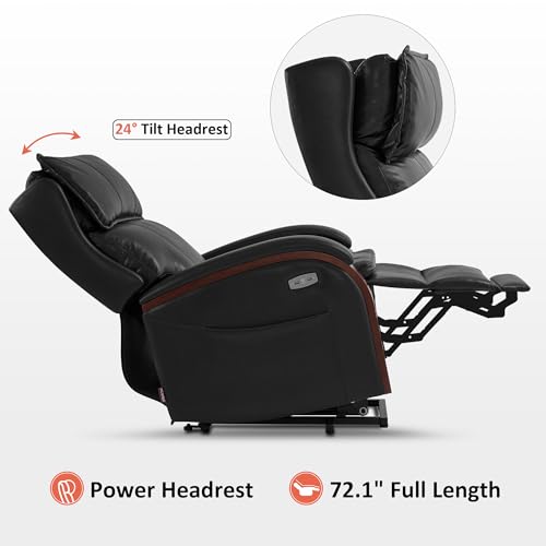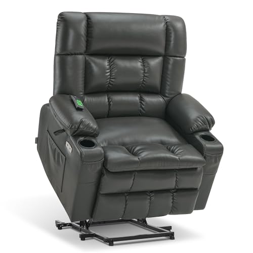Himimi PU Leather Electric Power Lift Chair Recliners Massage with Heat and Massage, Adjustable Back Leg, USB Ports, Cupholders, Lift Chairs for The Elderly (Black)
