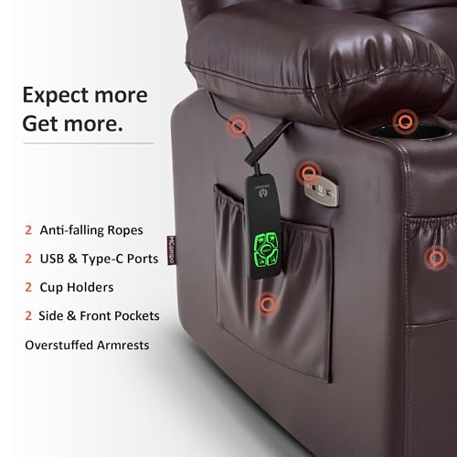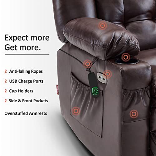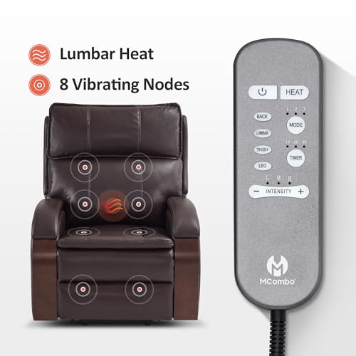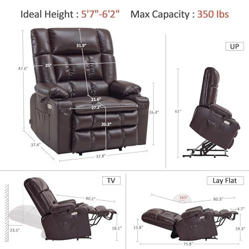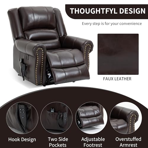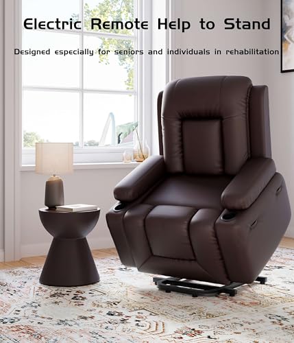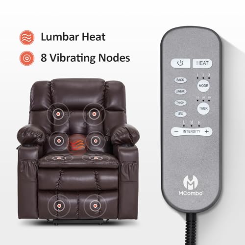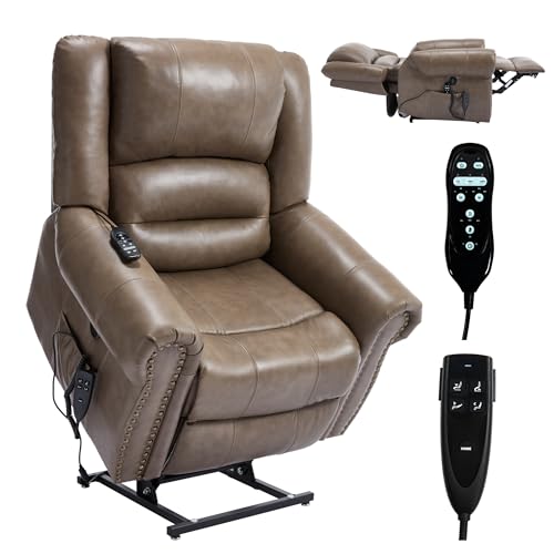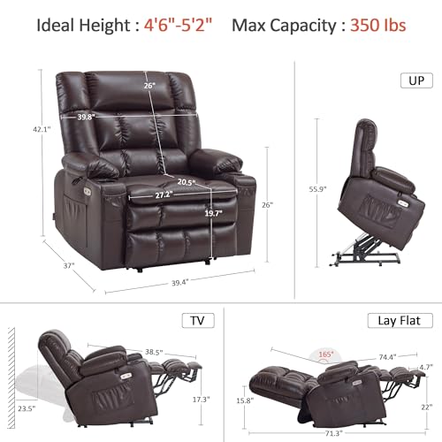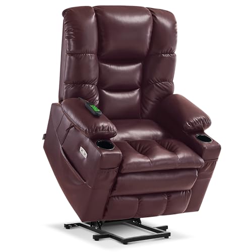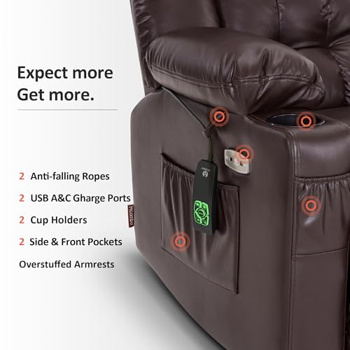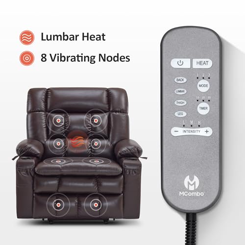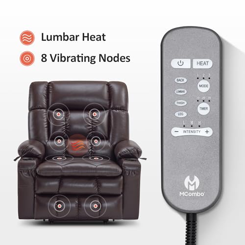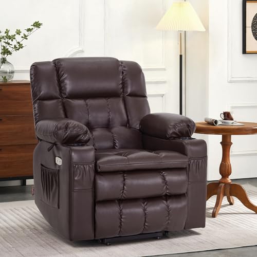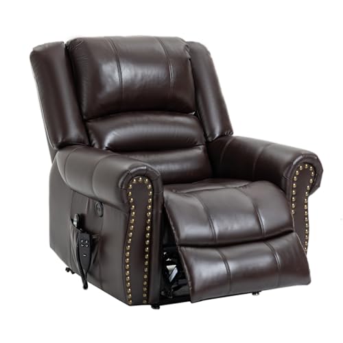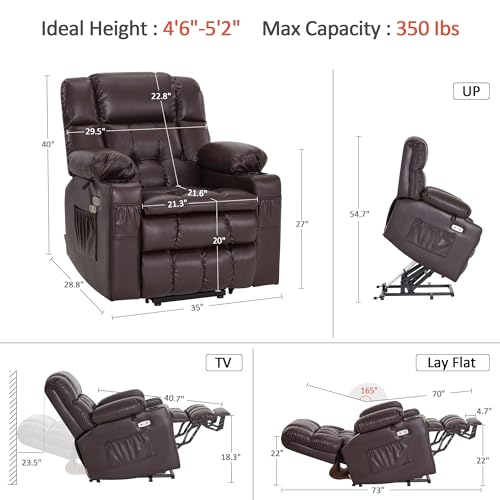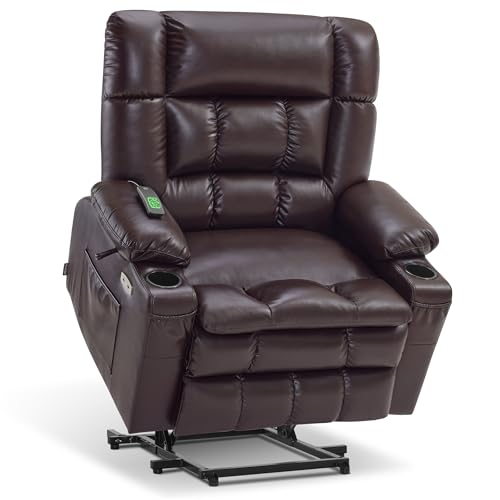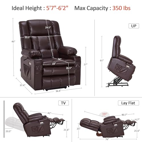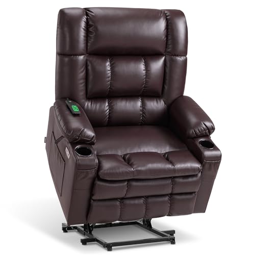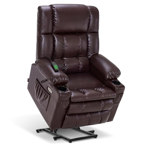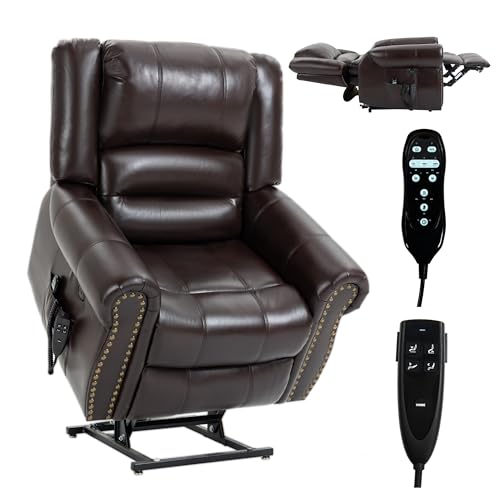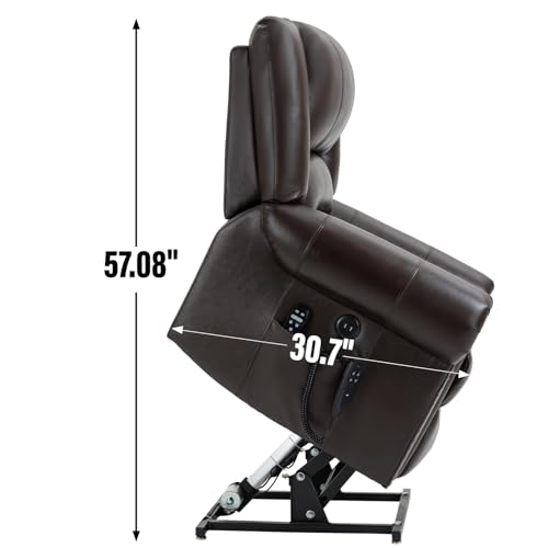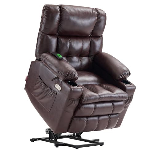 MCombo Large Triple Motor Power Lift Recliner Chair with Massage and Dual Heating, Adjustable Headrest for Tall Elderly People, Faux Leather 7634 (Dark Brown, Large)