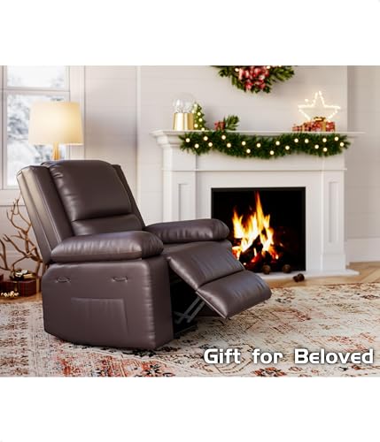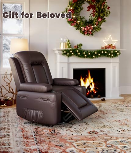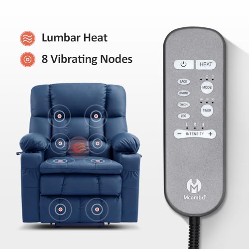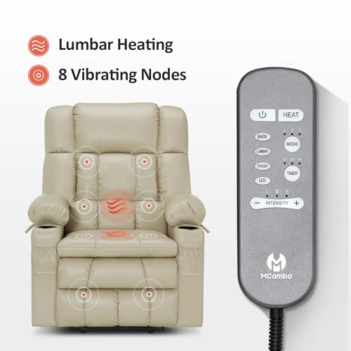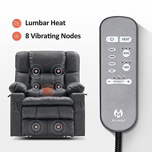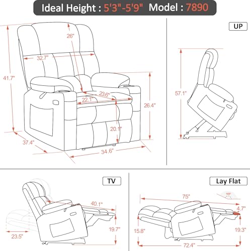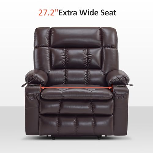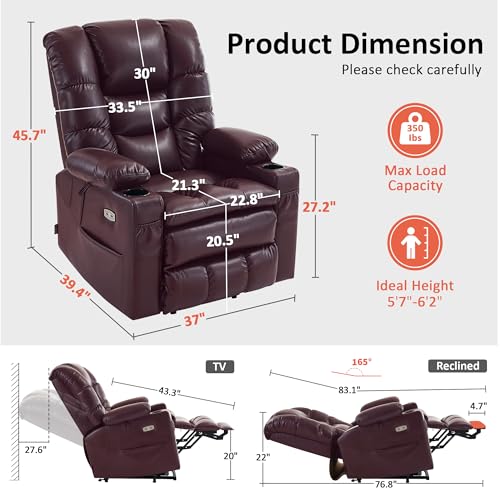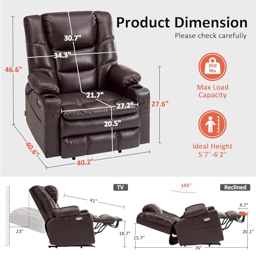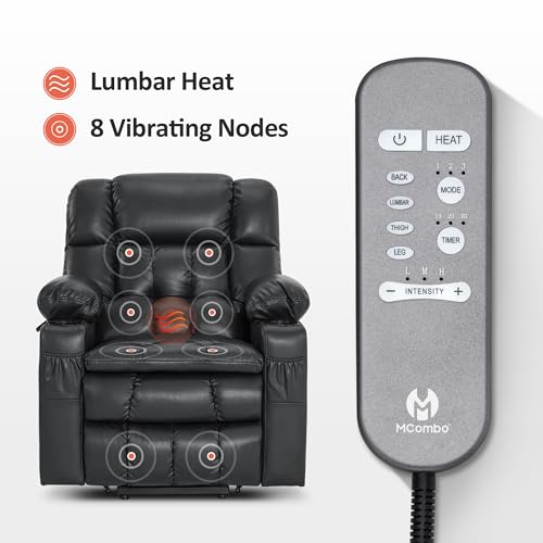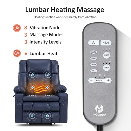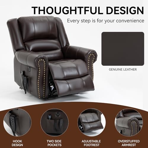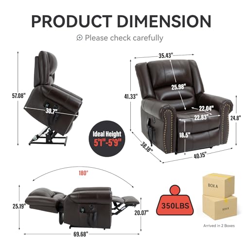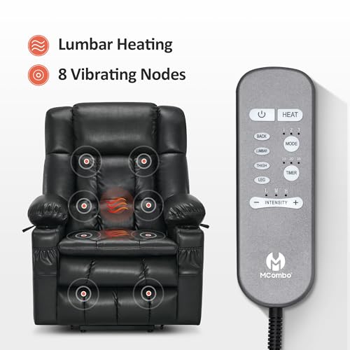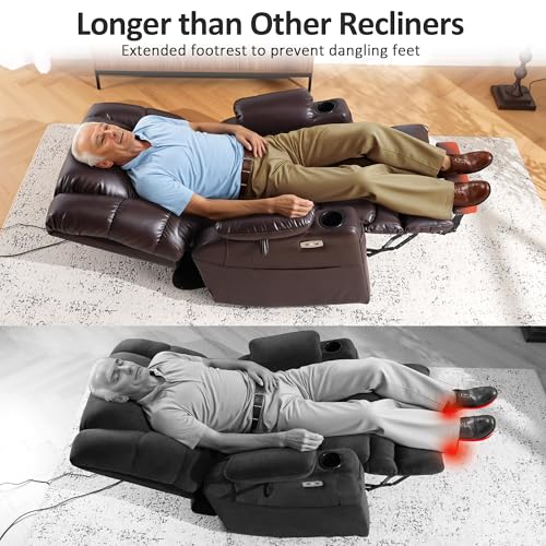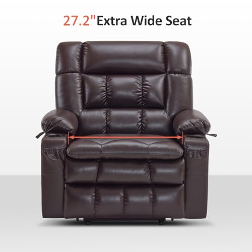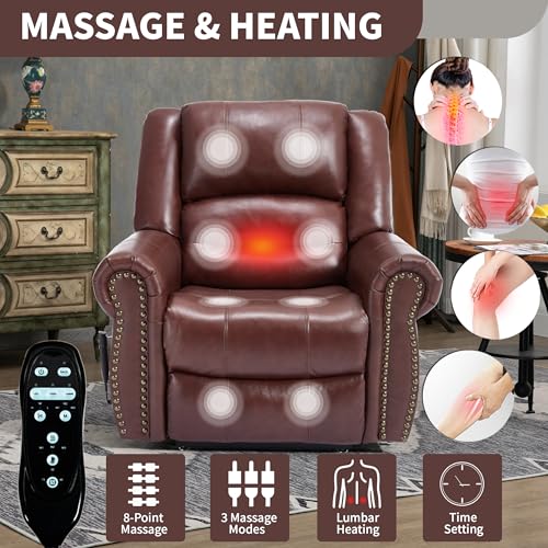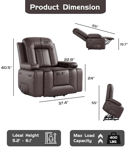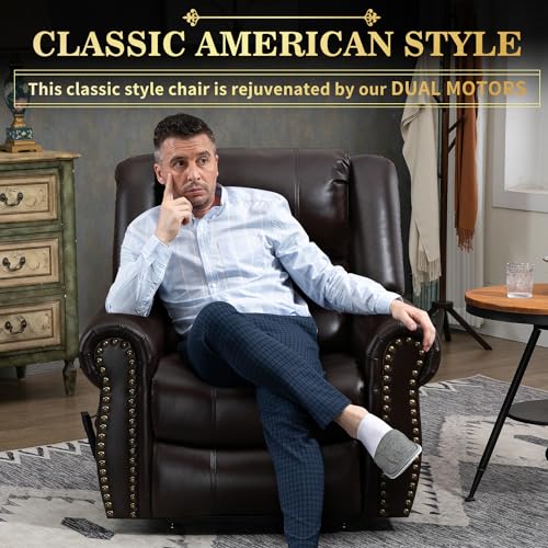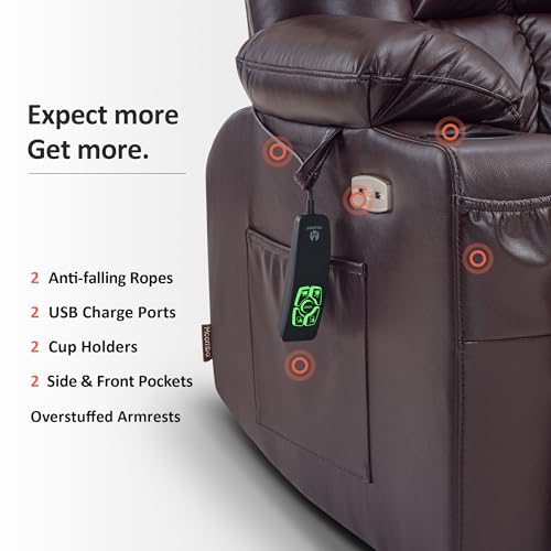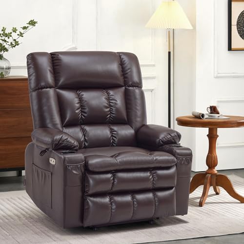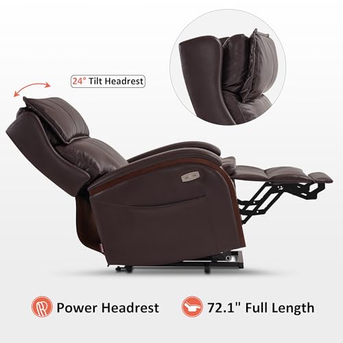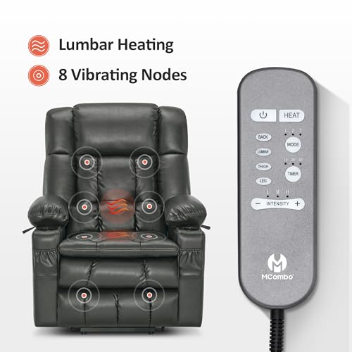 MCombo Large Triple Motor Power Lift Recliner Chair with Massage and Dual Heating, Adjustable Headrest for Tall Elderly People, Faux Leather 7634 (Dark Brown, Large)