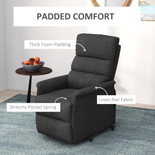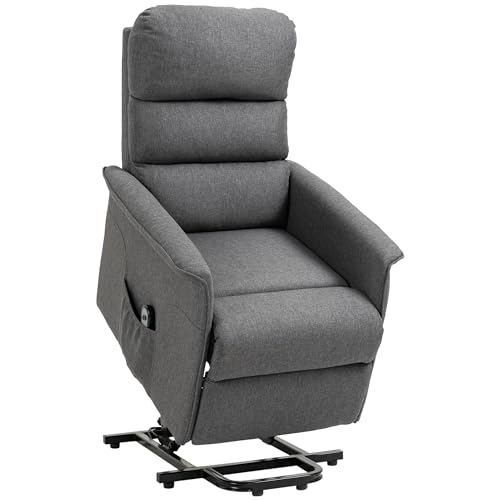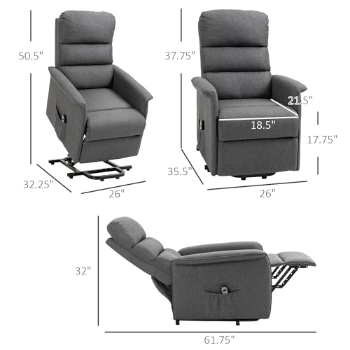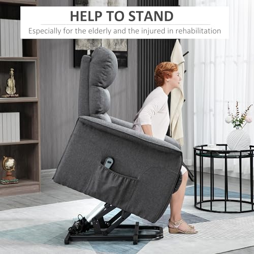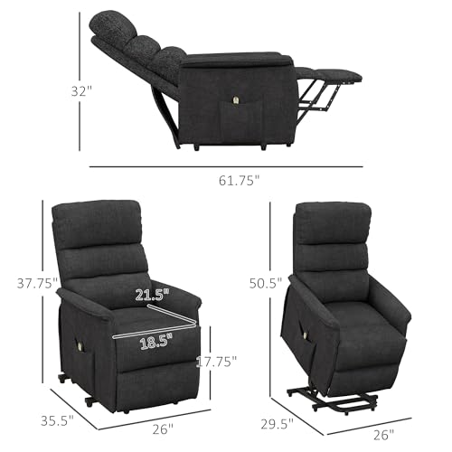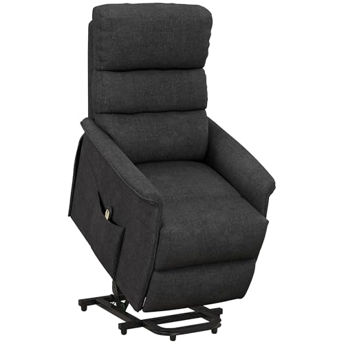 HOMCOM Power Lift Recliner Chair for Elderly, Easy Assembly, Fabric Lift Chair for Adults, Recliner Sofa with Remote Control, Side Pockets for Living Room, Black
