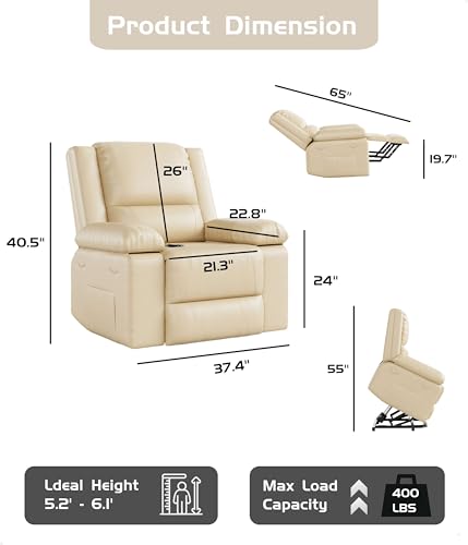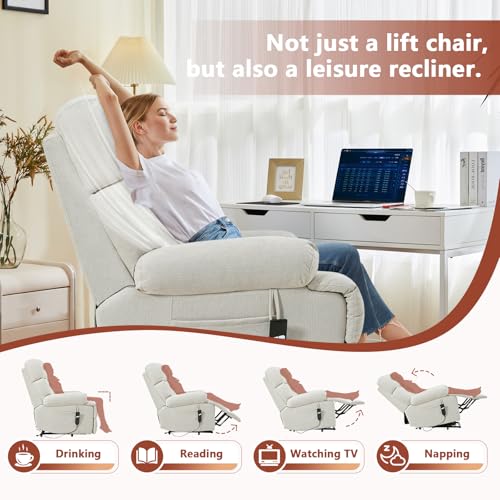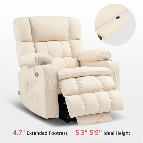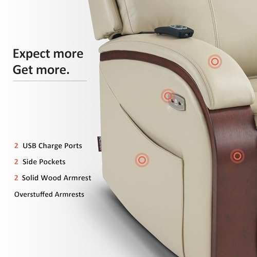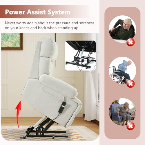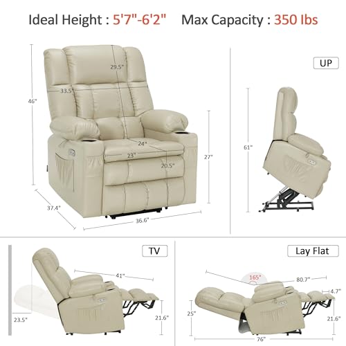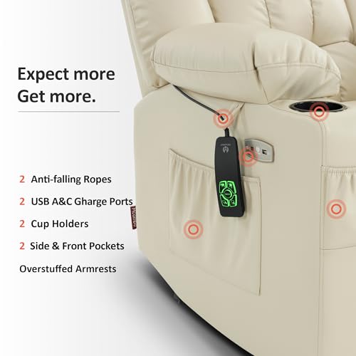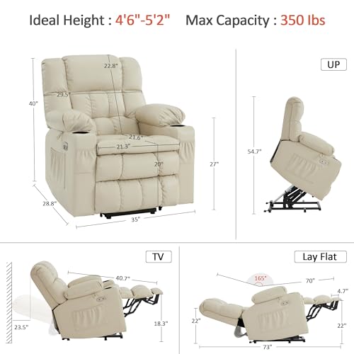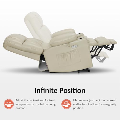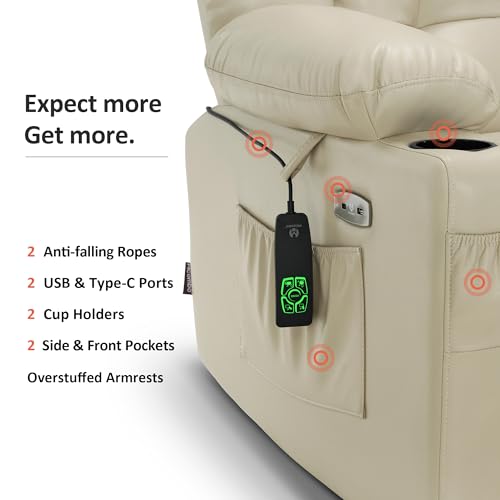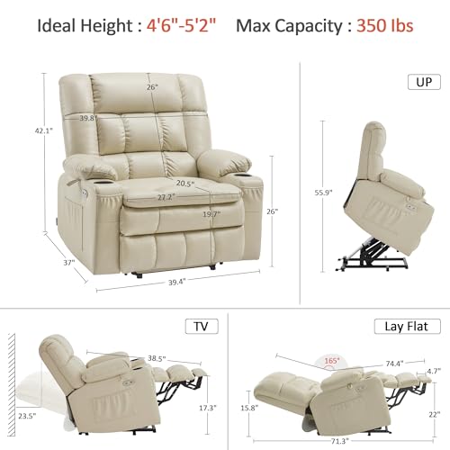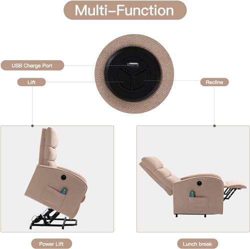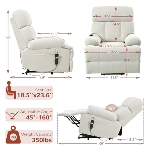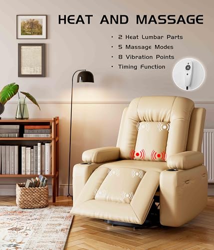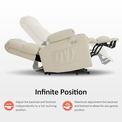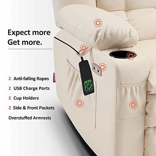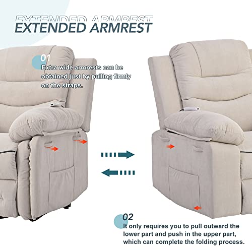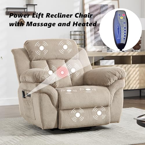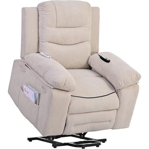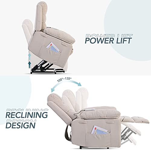 Massage Recliner,Power Lift Chair for Elderly with Adjustable Massage and Heating Function,Recliner Chair with Infinite Position and Side Pocket for Living Room,Beige