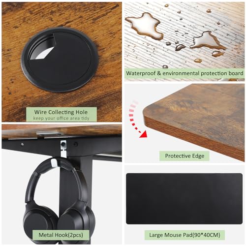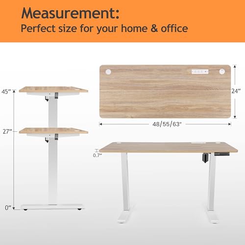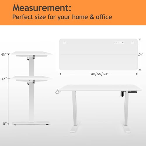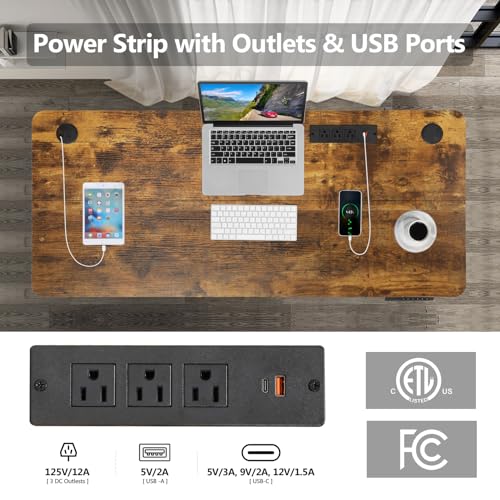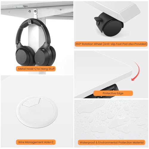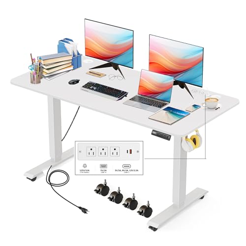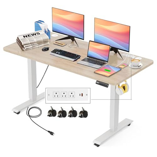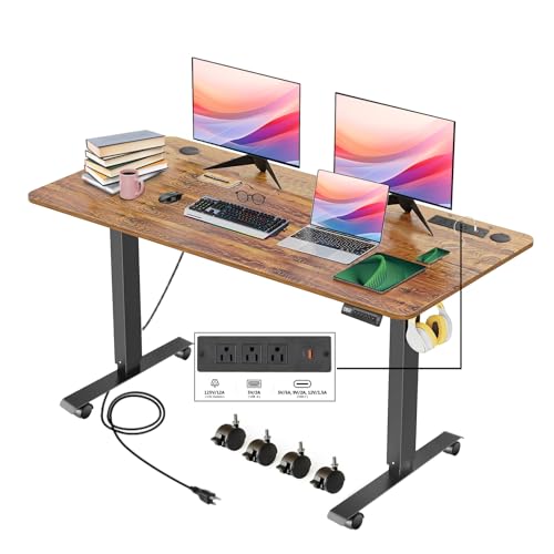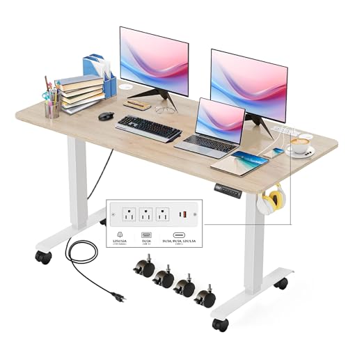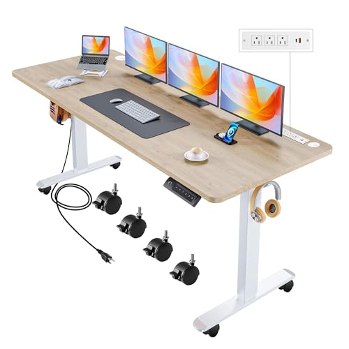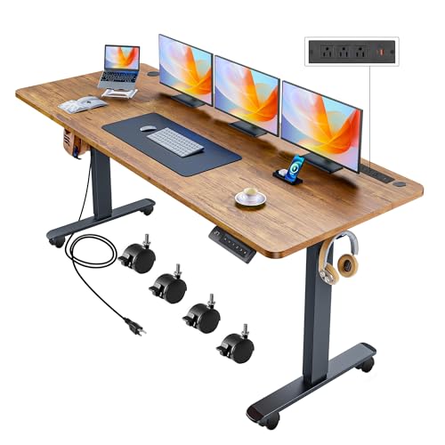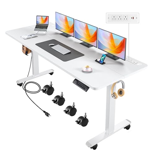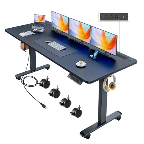 Electric Standing Desk with Wheels, 63'' x 24'' Standing Desk Adjustable Height with Charging Station, 2 USB Ports, 3 Power Outlets, 4 Caster, 27''-46'' Lifting Range Stand up Desk(Black)