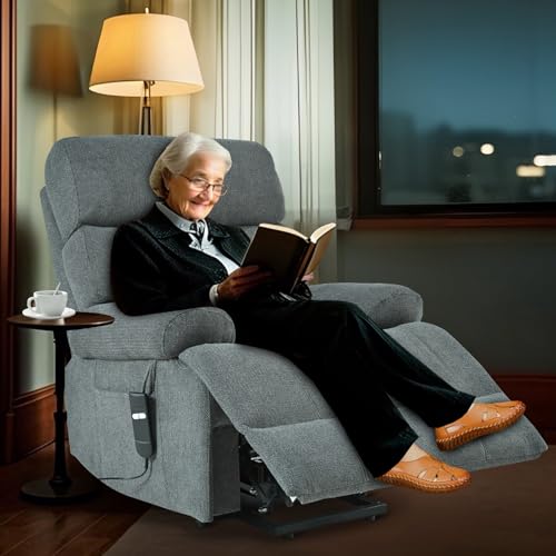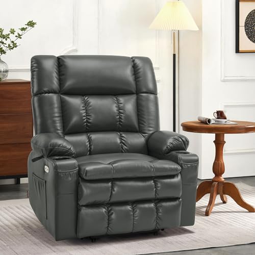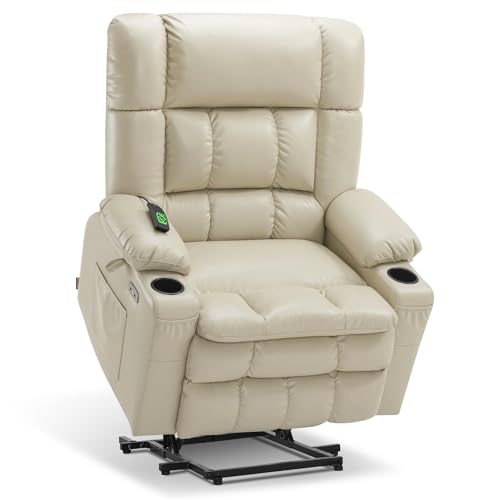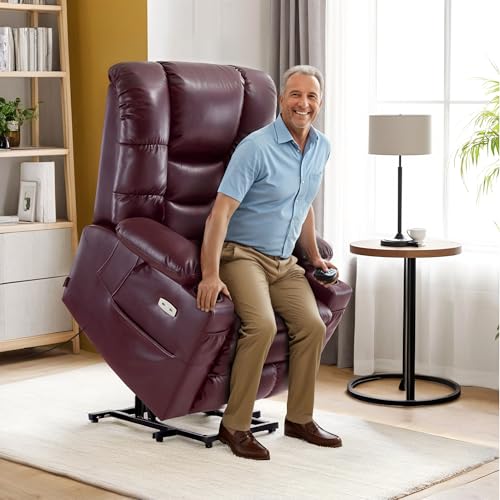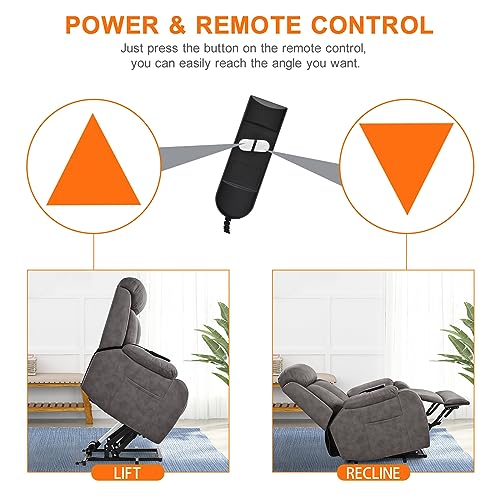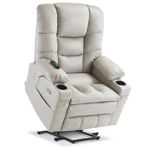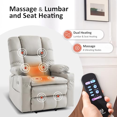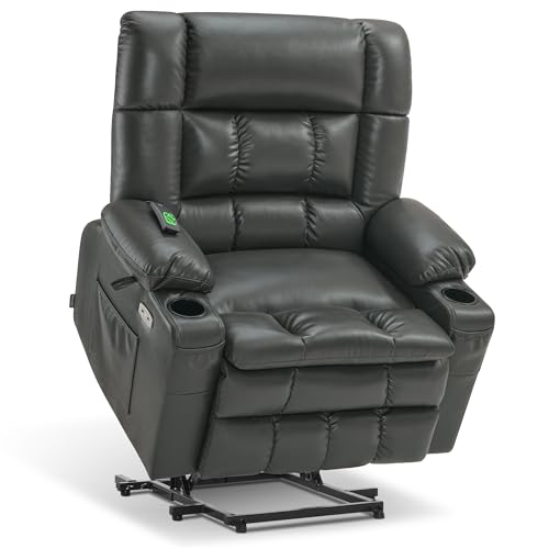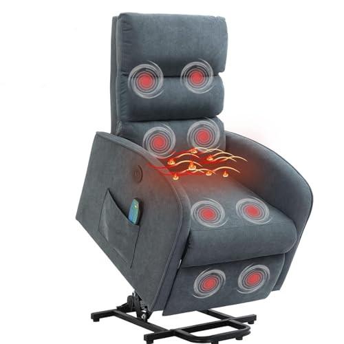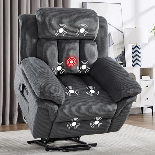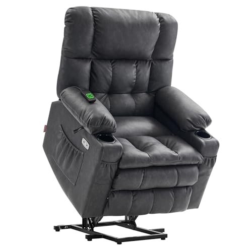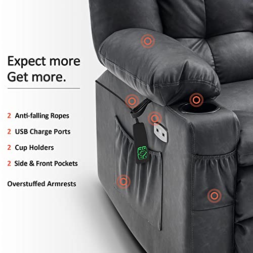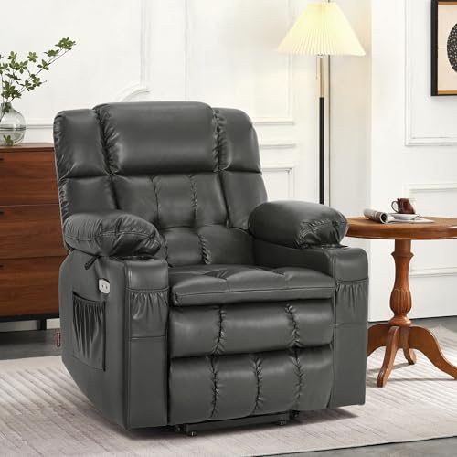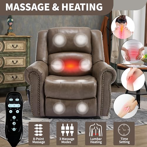 GarveeHome Power Lift Recliner Chair - Heat and Massage, Faux PU Electric Lift Recliner for Elderly & Mobility Impaired, Adjustable Back and Legs, Heavy Duty Lift Chair for Seniors