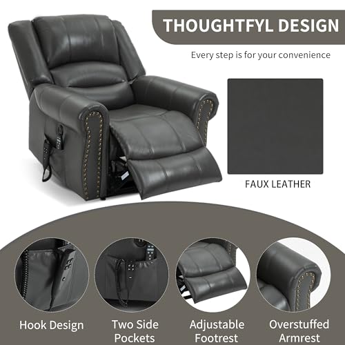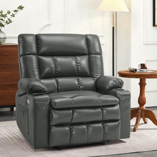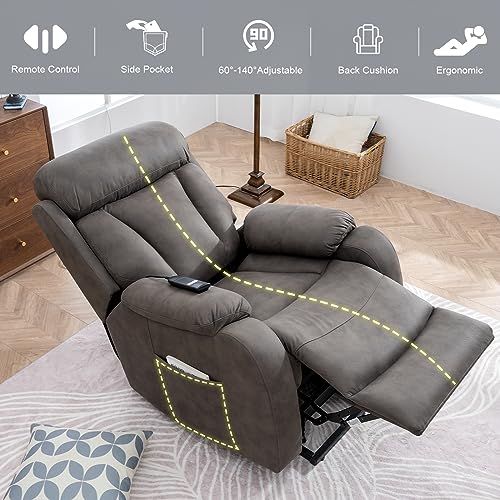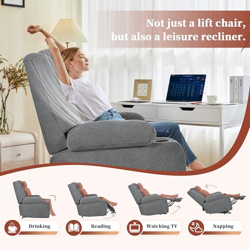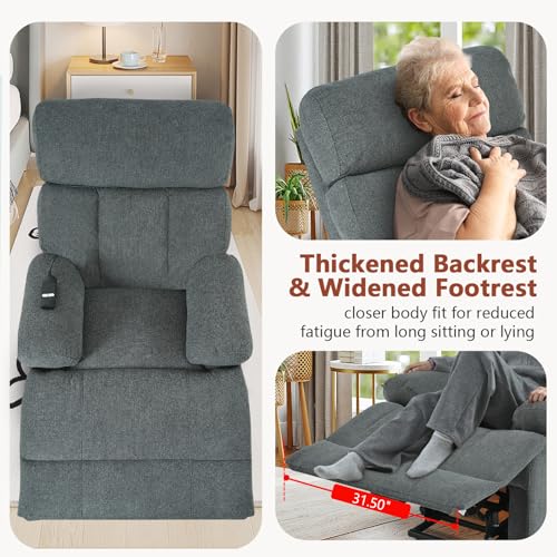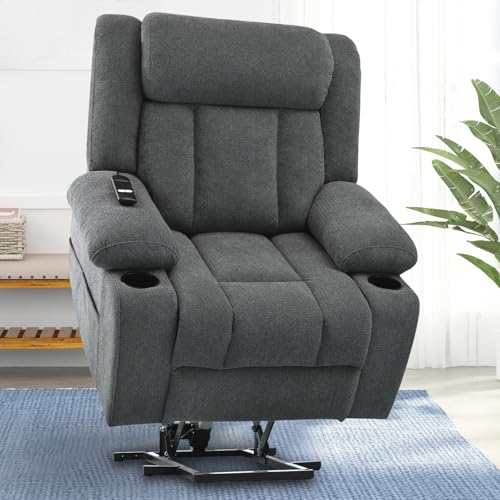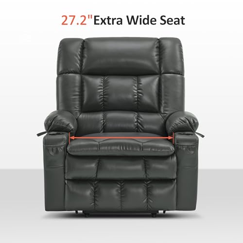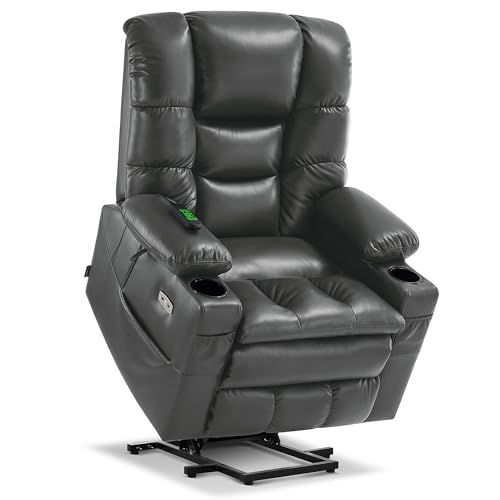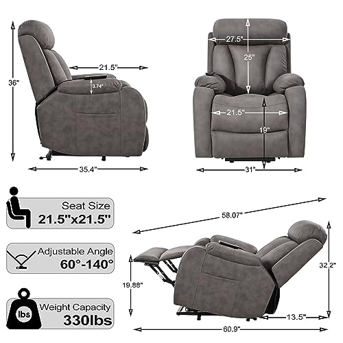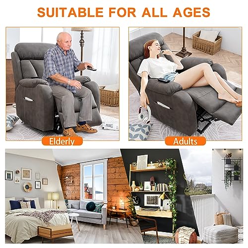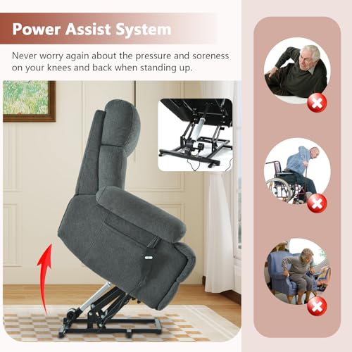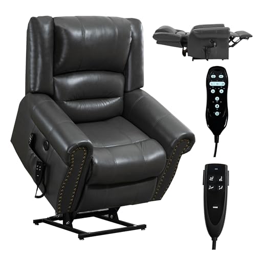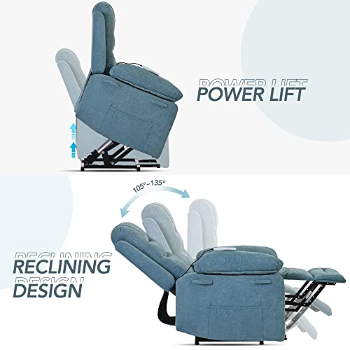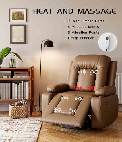 GarveeHome Power Lift Recliner Chair - Heat and Massage, Faux PU Electric Lift Recliner for Elderly & Mobility Impaired, Adjustable Back and Legs, Heavy Duty Lift Chair for Seniors