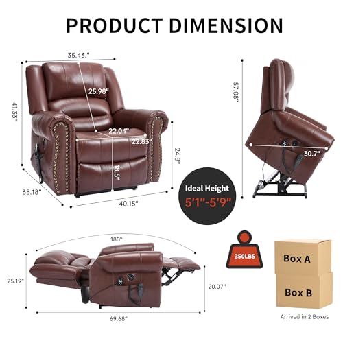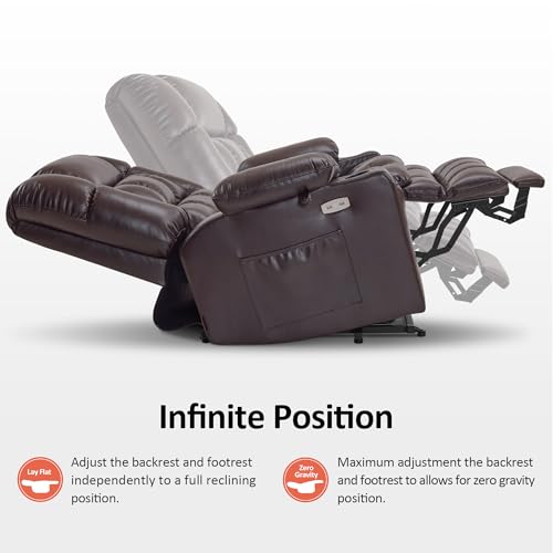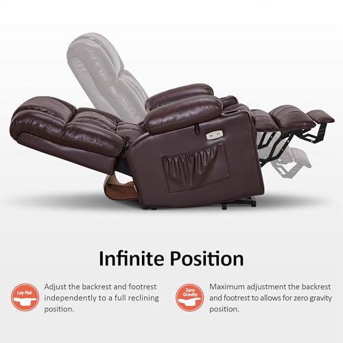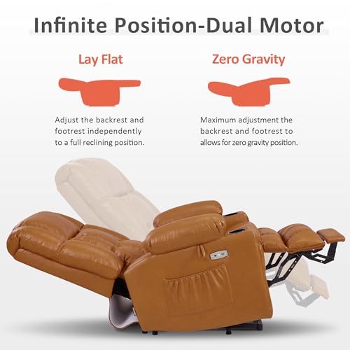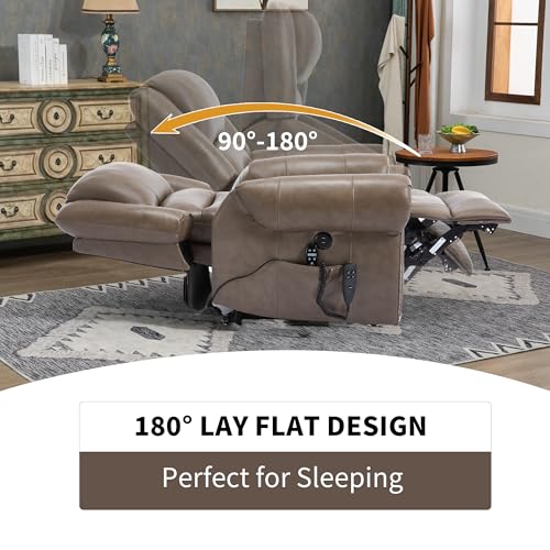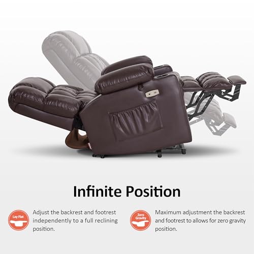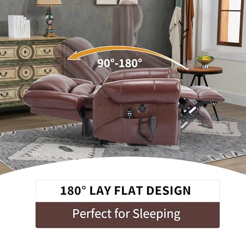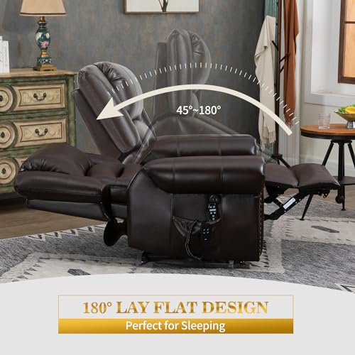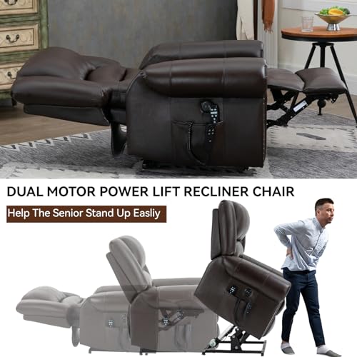 Dual Motor Power Lift Chair, Lay Flat Recliner Chair, Electric Recliner with Massage and Heat for Elderly, Remote Control, Infinite Position, Standing Assistance, USB Ports, Faux Leather, Brown