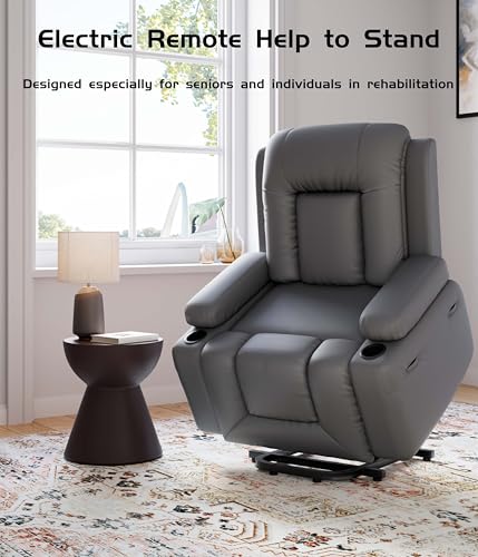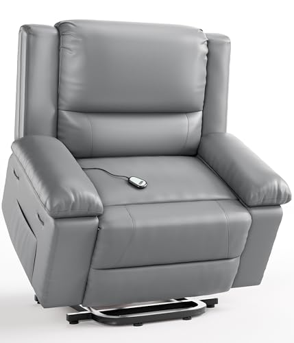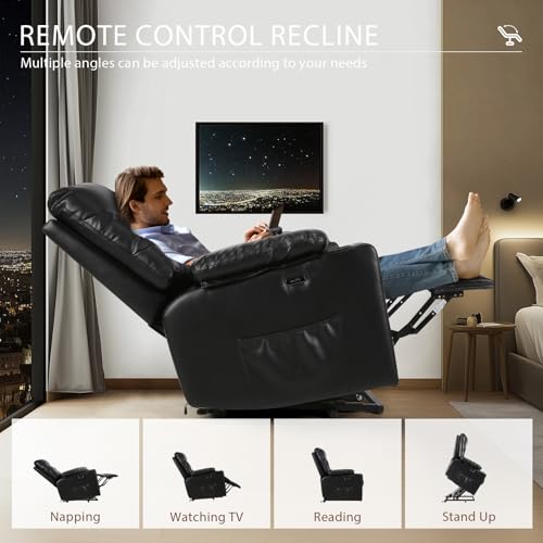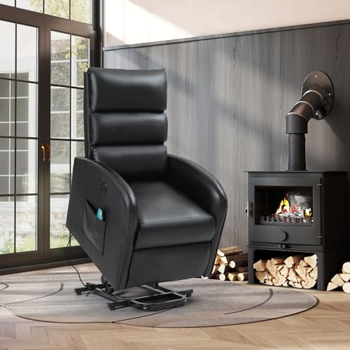 AVAWING Power Lift Recliner Chair for Elderly, PU Leather Electric Inclining Chair with Remote Control, Side Pocket and USB Port for Living Room & Bedroom, Black