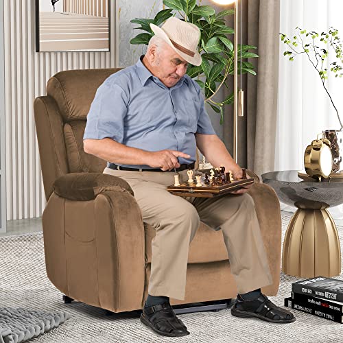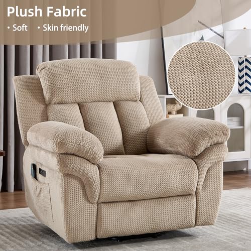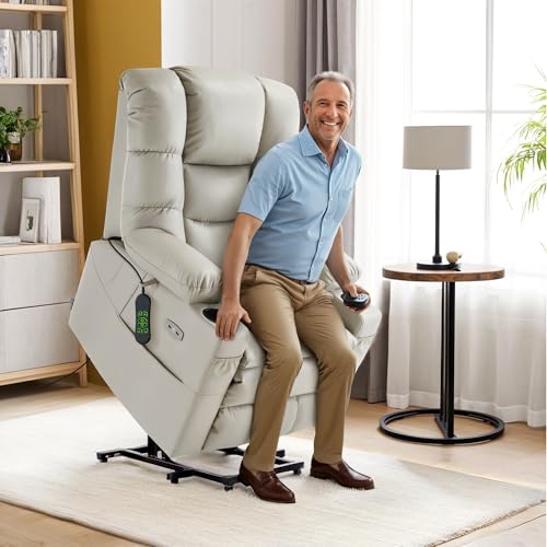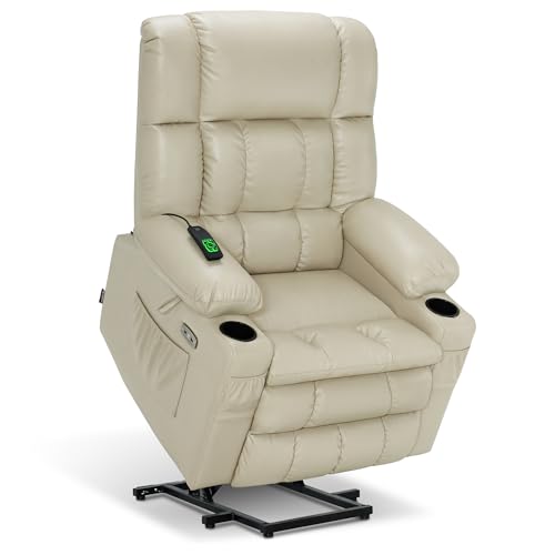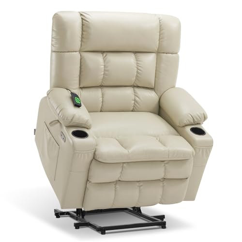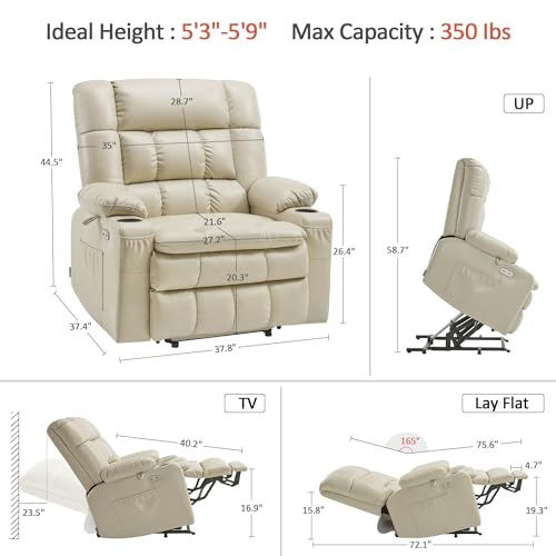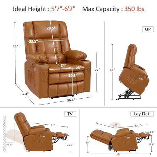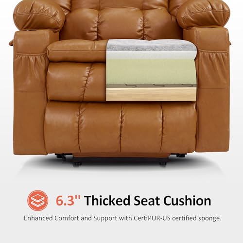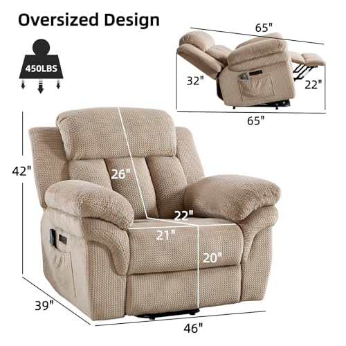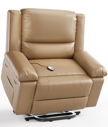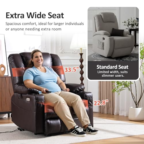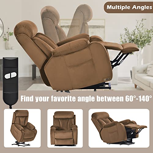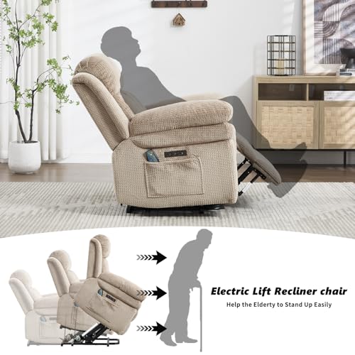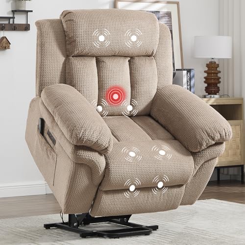 CANMOV 46" Wide Oversize Power Lift Recliner Chair, Extra Large Electric Lift Recliners for Elderly Big, Stand Up Recliner Chair with Massage and Heat, USB and Type-C Ports, Light Brown