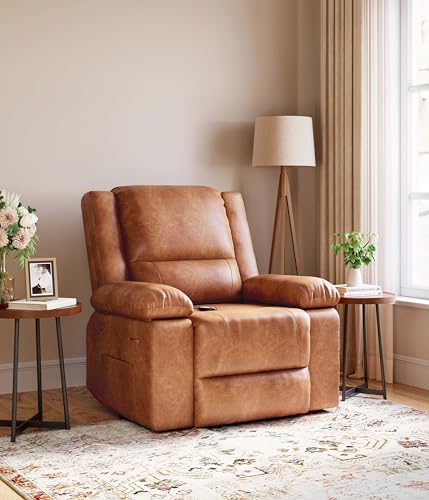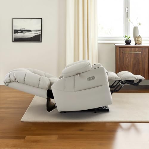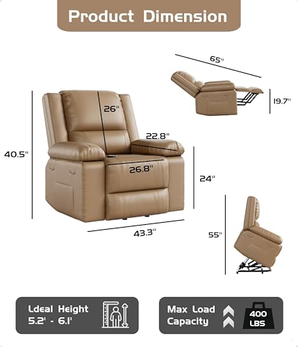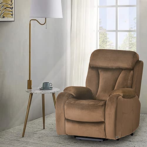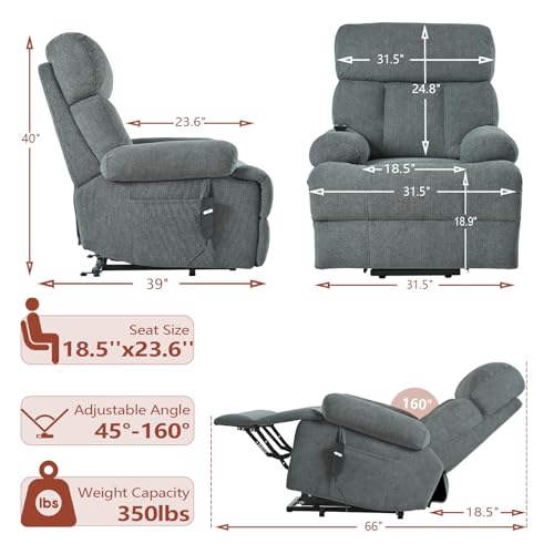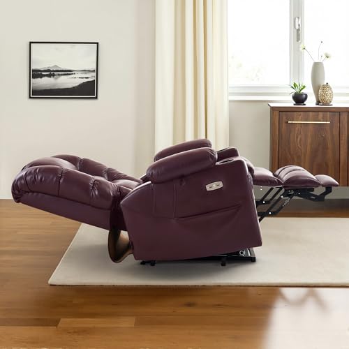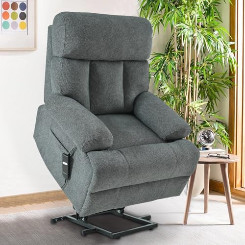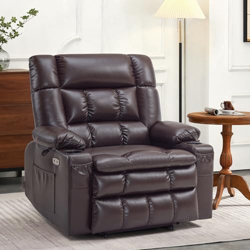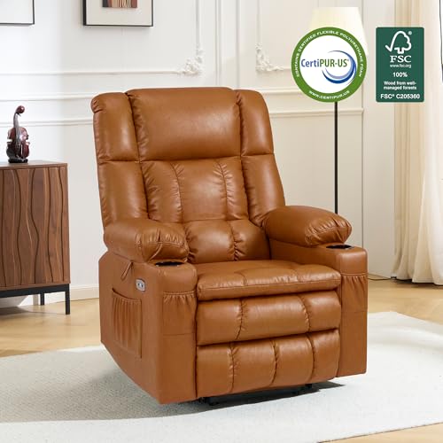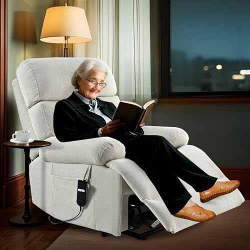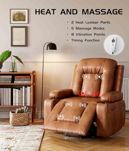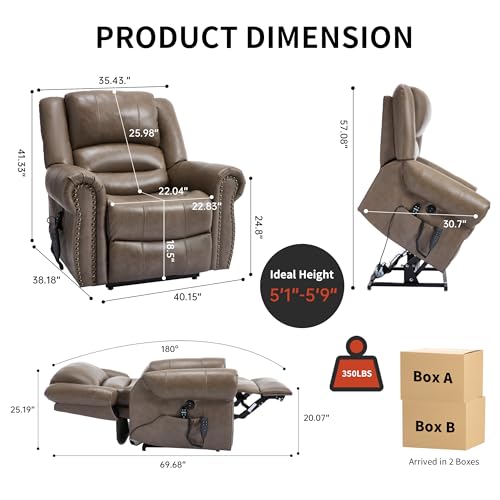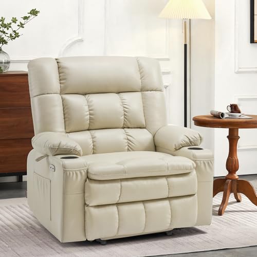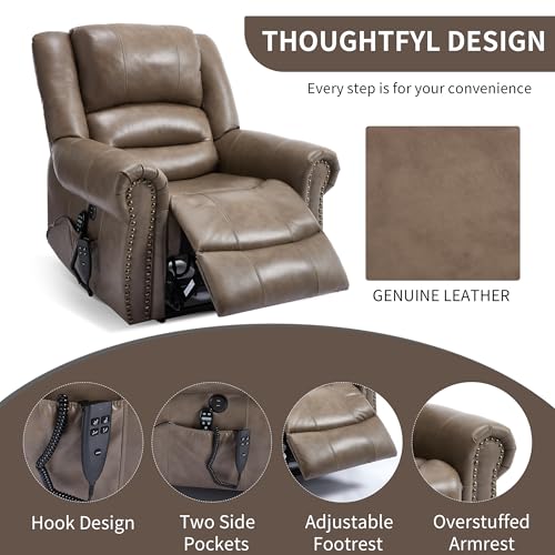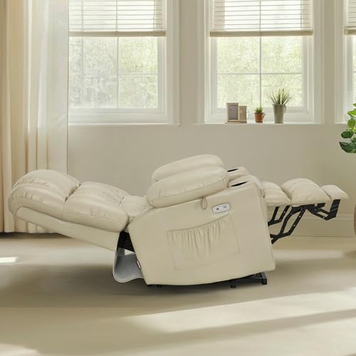 CANMOV 46" Wide Oversize Power Lift Recliner Chair, Extra Large Electric Lift Recliners for Elderly Big, Stand Up Recliner Chair with Massage and Heat, USB and Type-C Ports, Light Brown