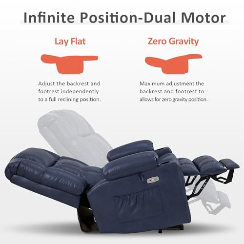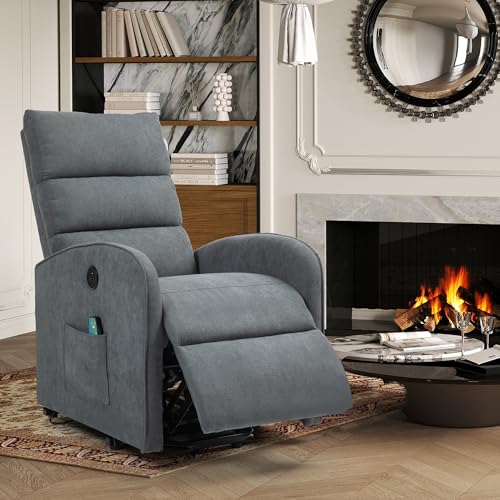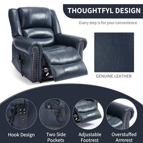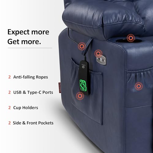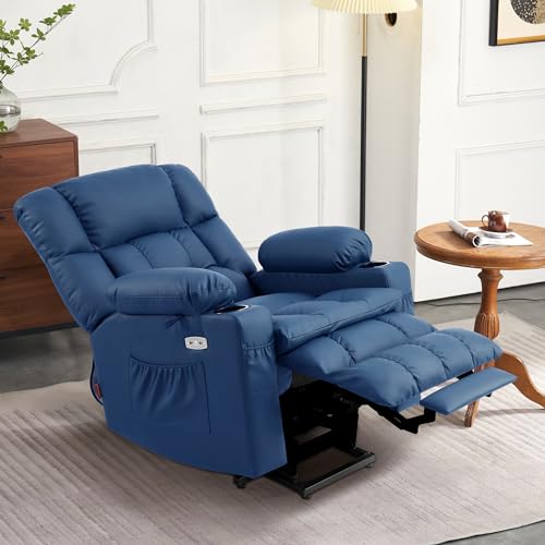 Small Power Lift Recliner for Elderly, Lift Chair Recliners, Electric Recliner Chairs for Seniors, Remote Control, Adjustable, Side Pocket (Navy Blue)