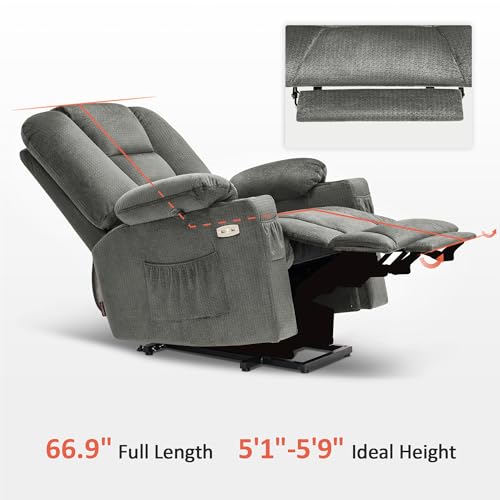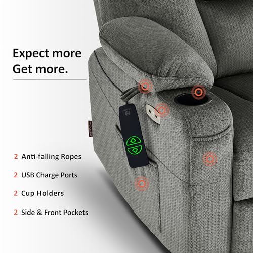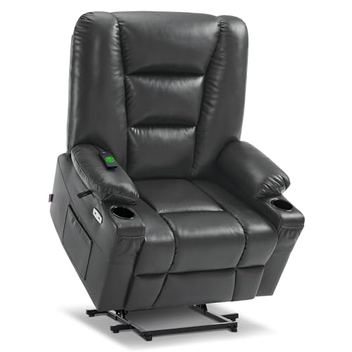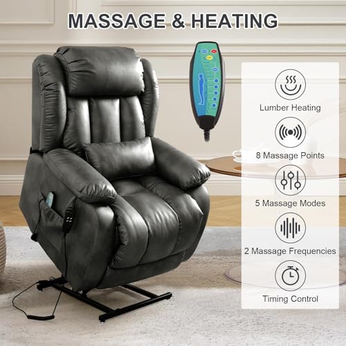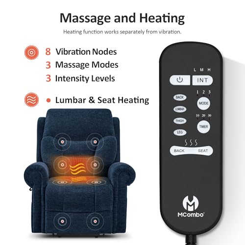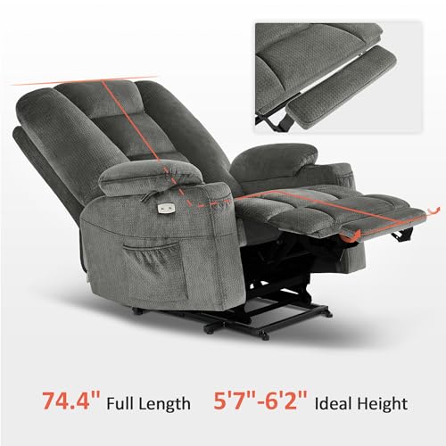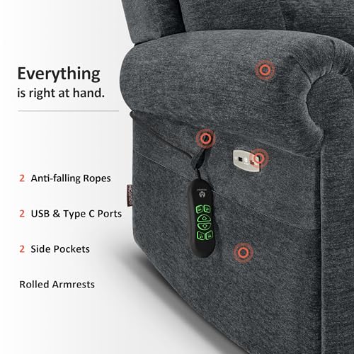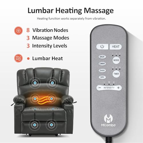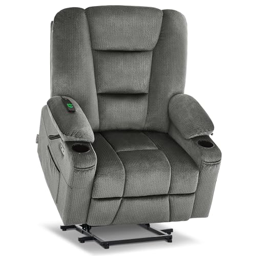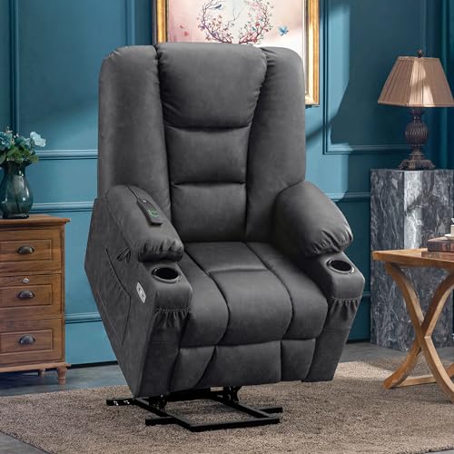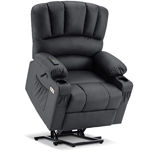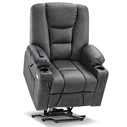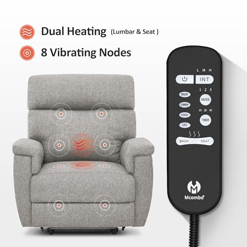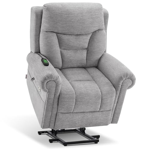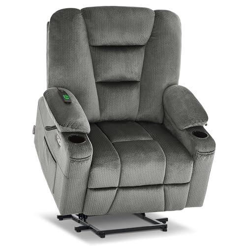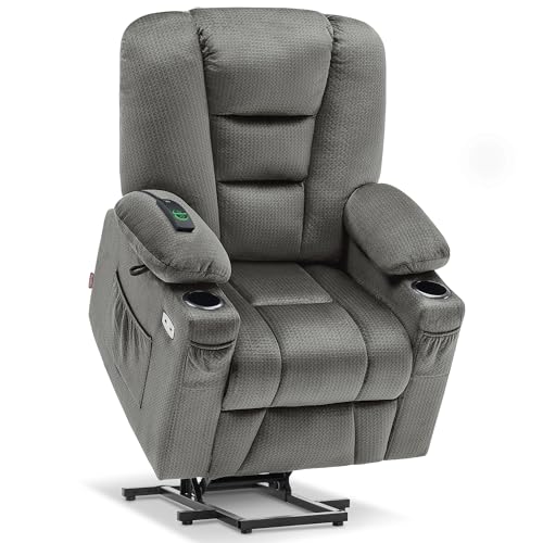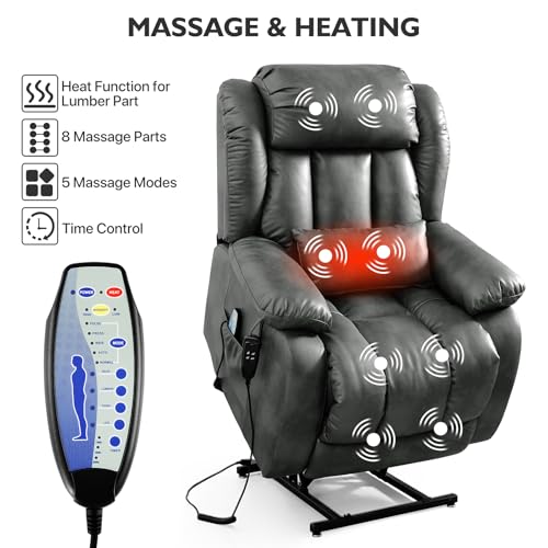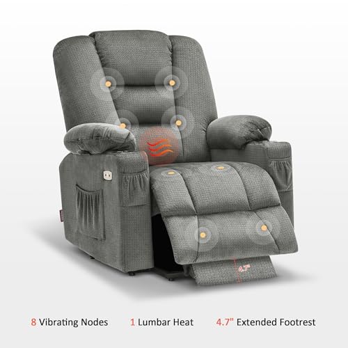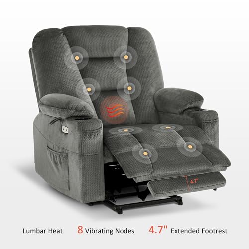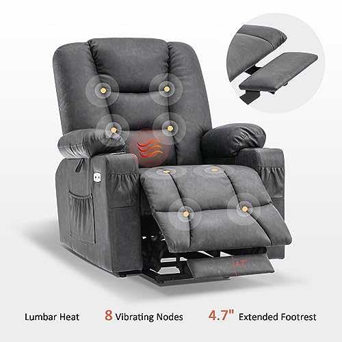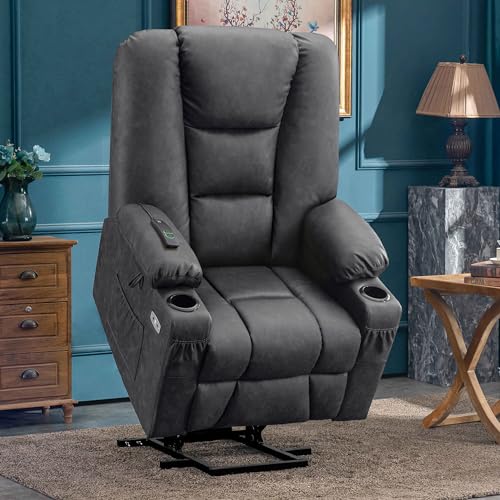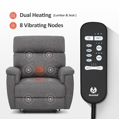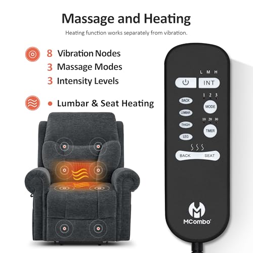 MCombo Power Lift Recliner Chair with Massage and Dual Heating, Adjustable Headrest, Extended Footrest for Elderly People, Fabric R7605 (Dark Grey)