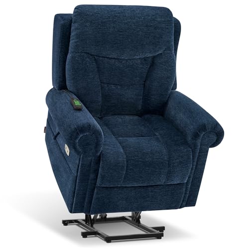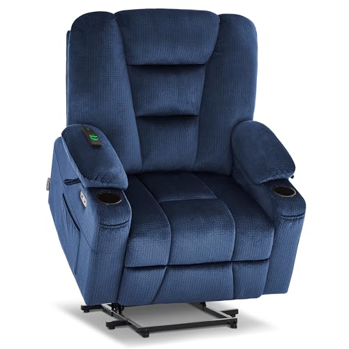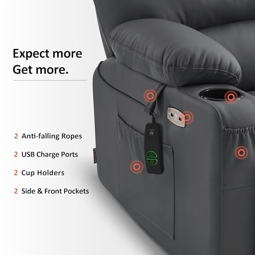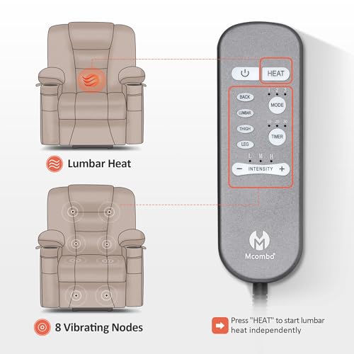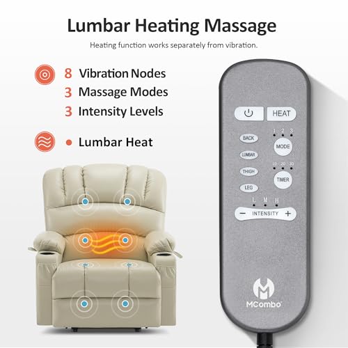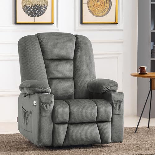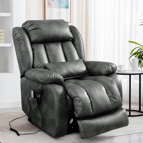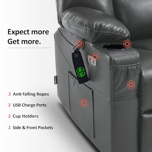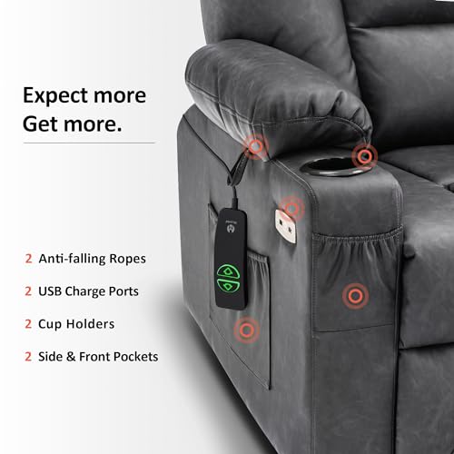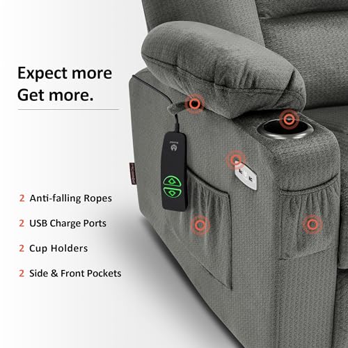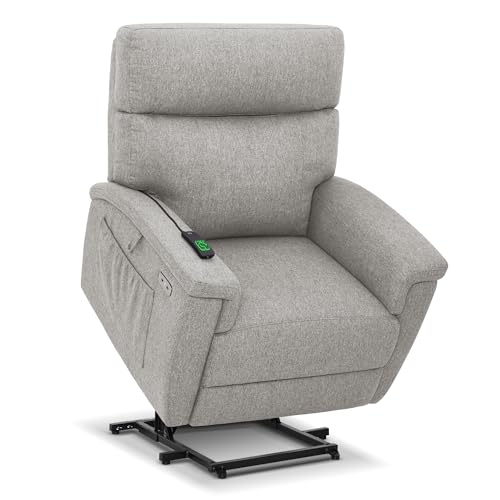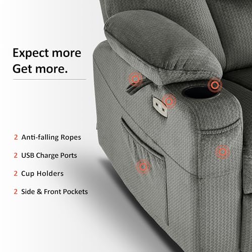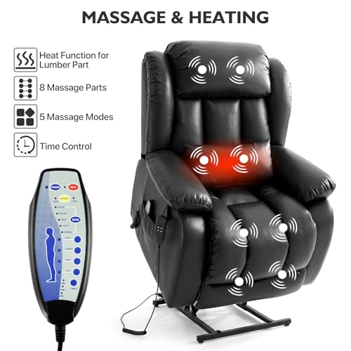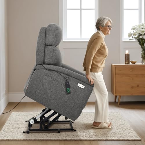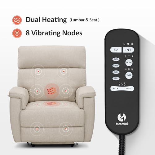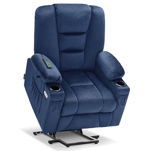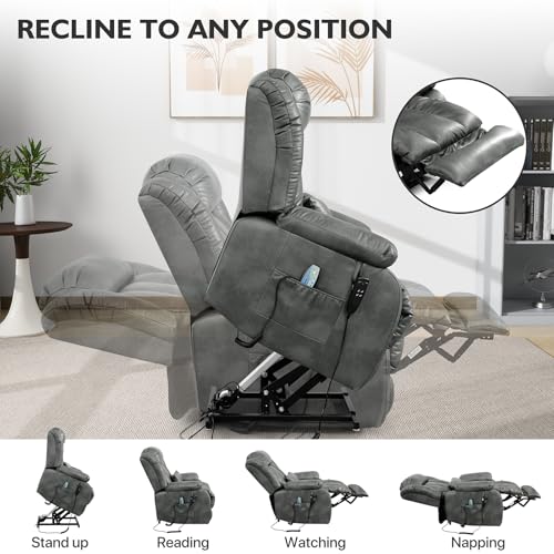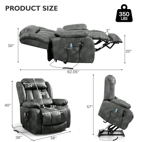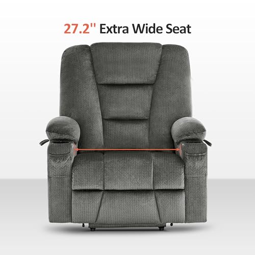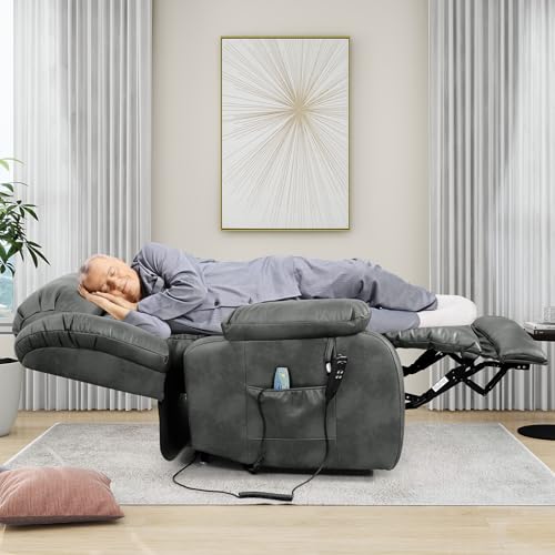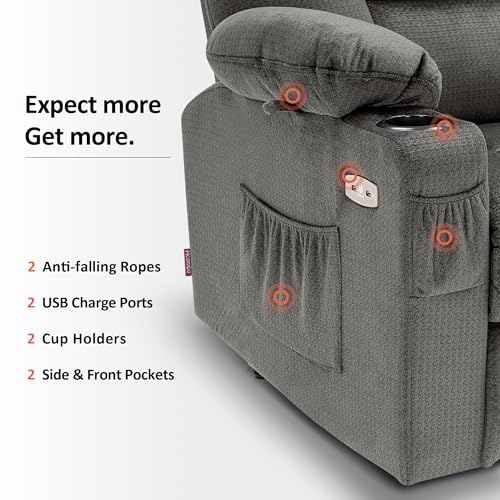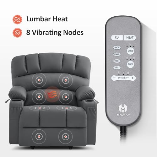 MCombo Power Lift Recliner Chair with Massage and Dual Heating, Adjustable Headrest, Extended Footrest for Elderly People, Fabric R7605 (Dark Grey)