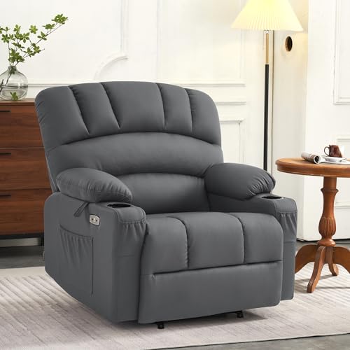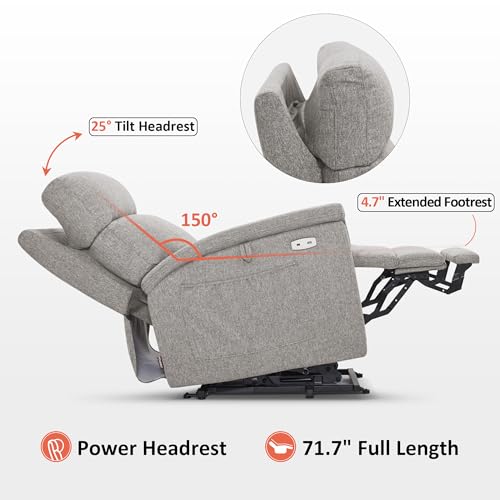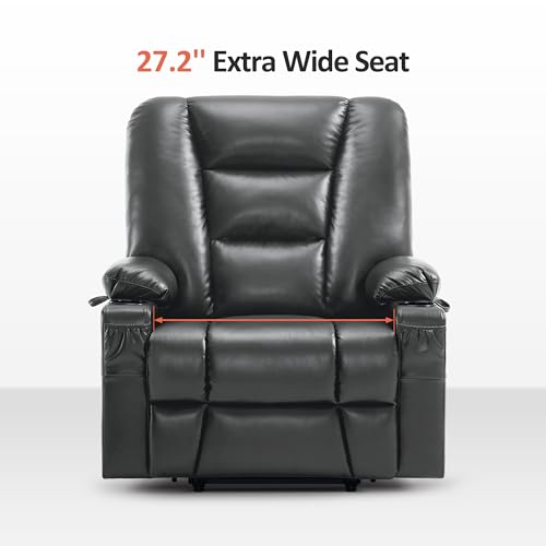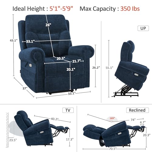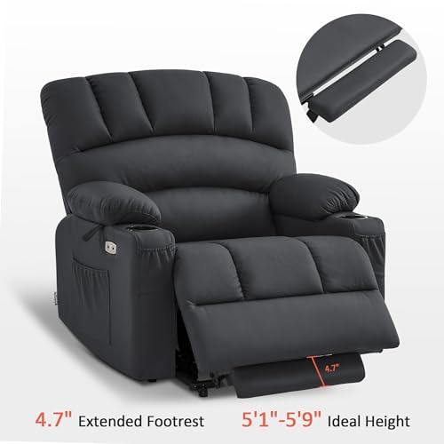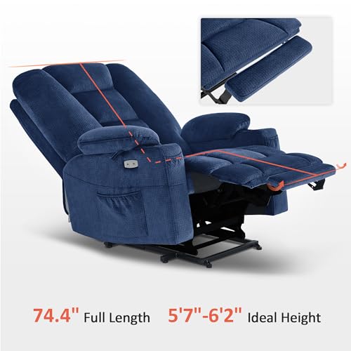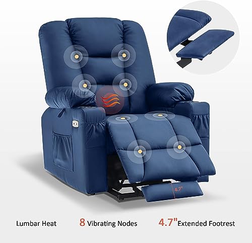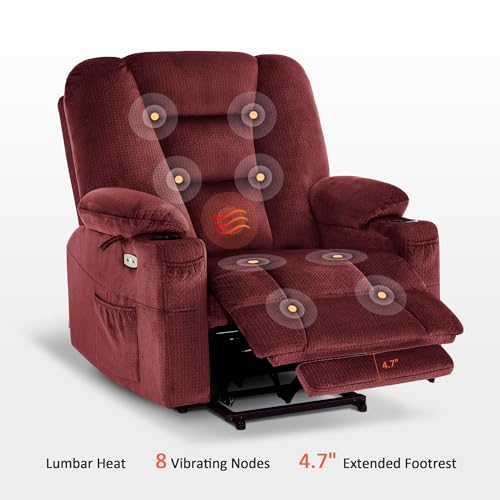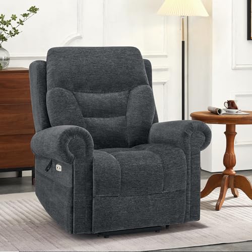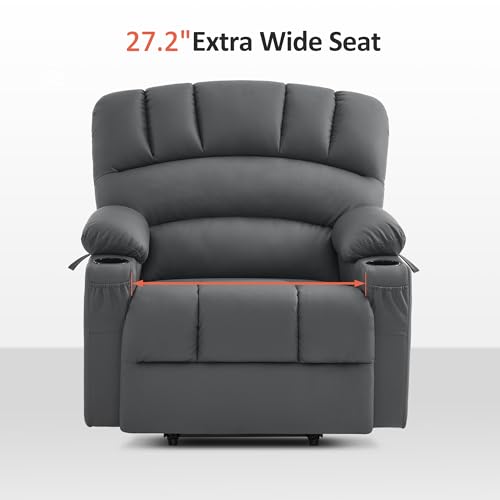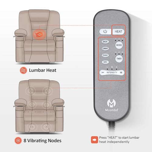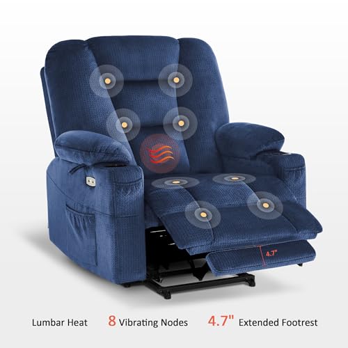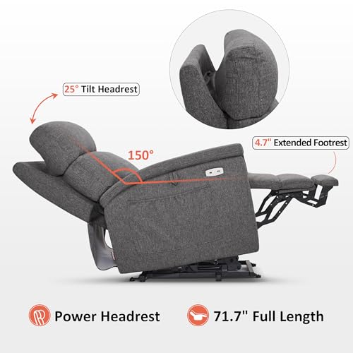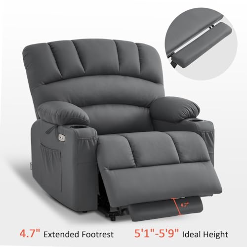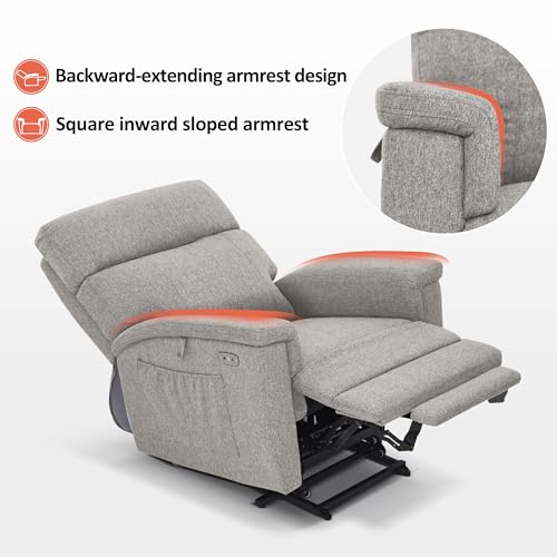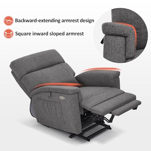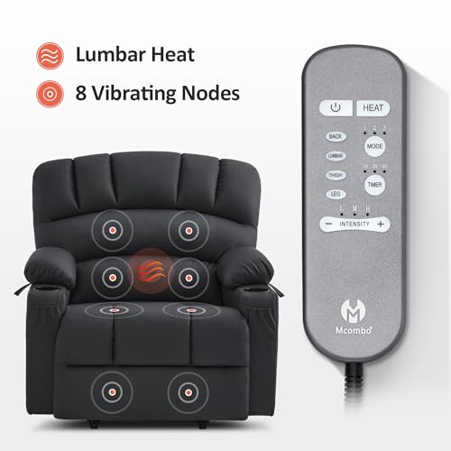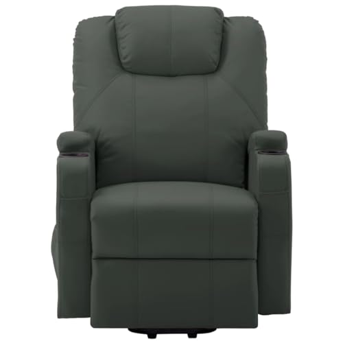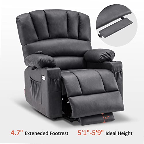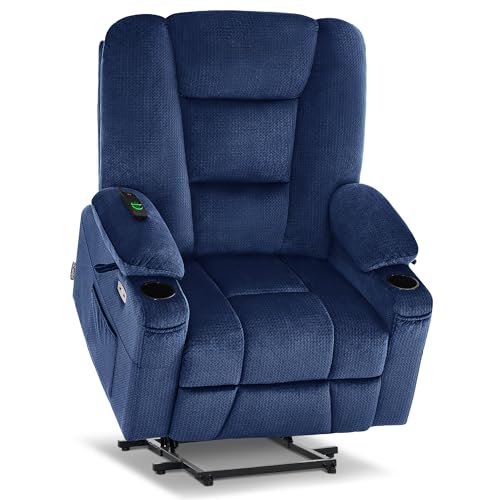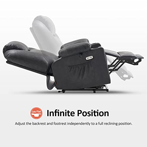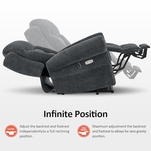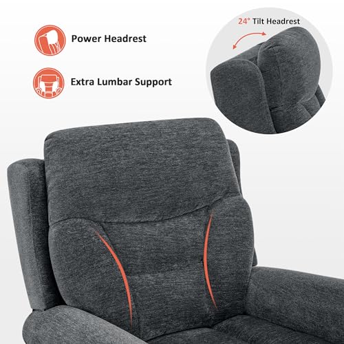 MCombo Power Lift Recliner Chair with Massage and Dual Heating, Adjustable Headrest, Extended Footrest for Elderly People, Fabric R7605 (Dark Grey)
