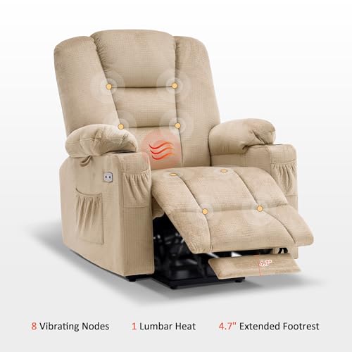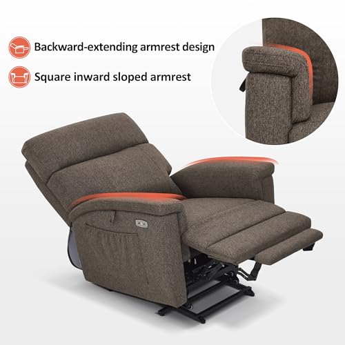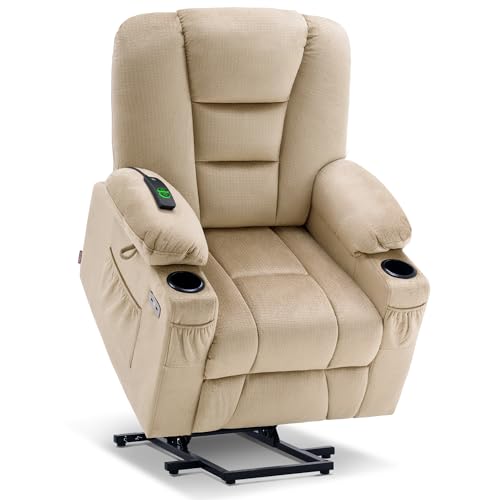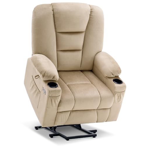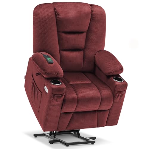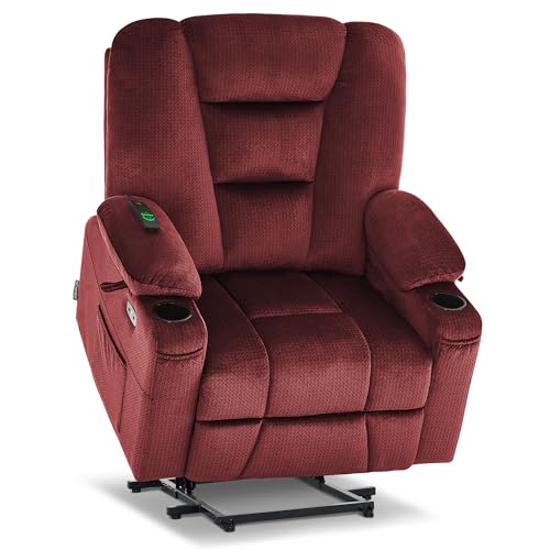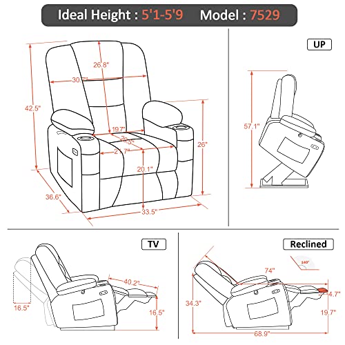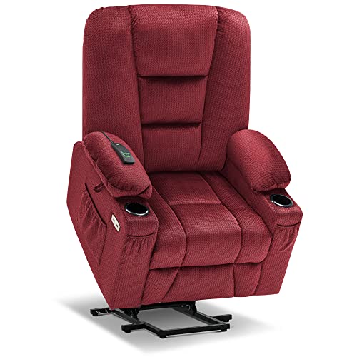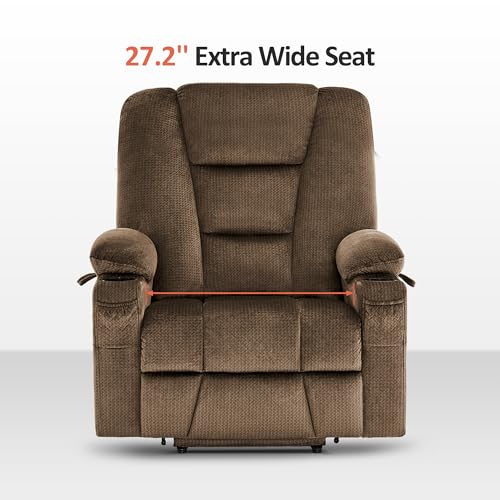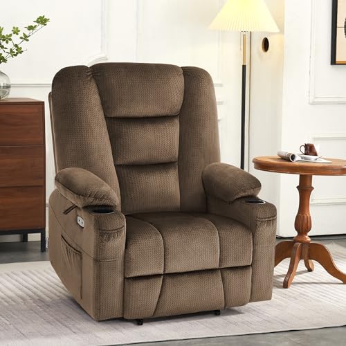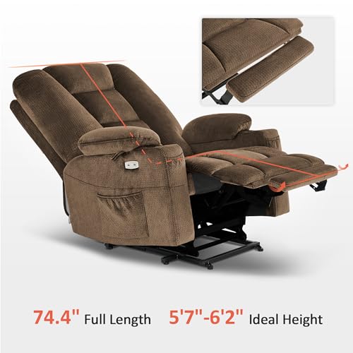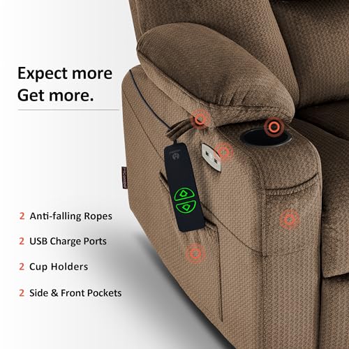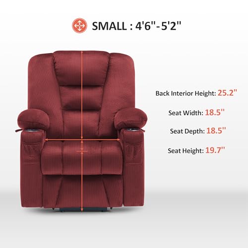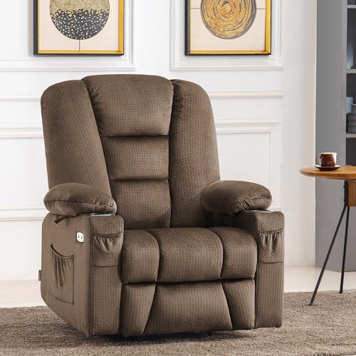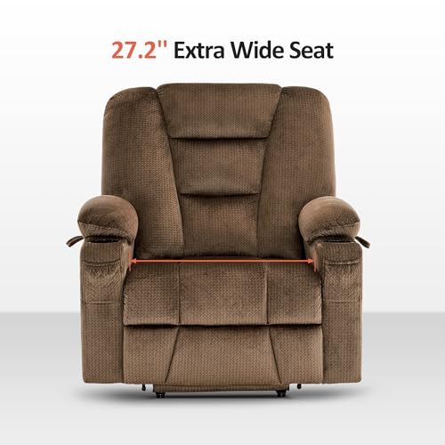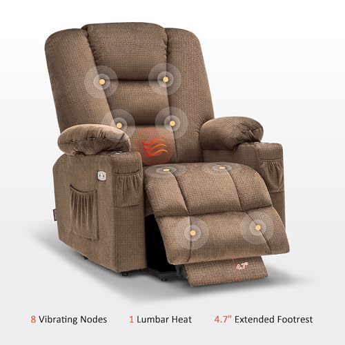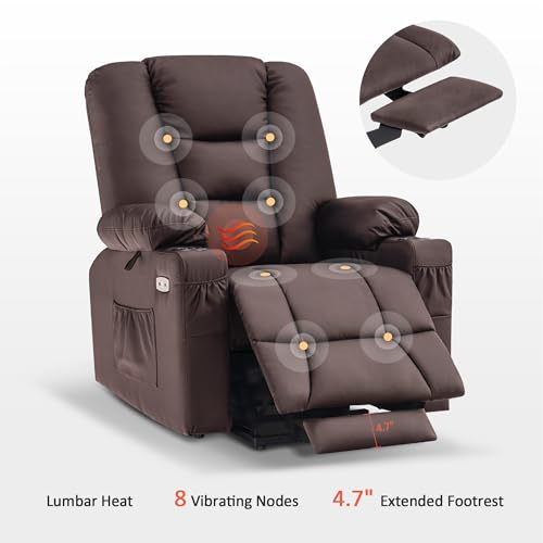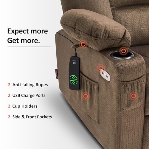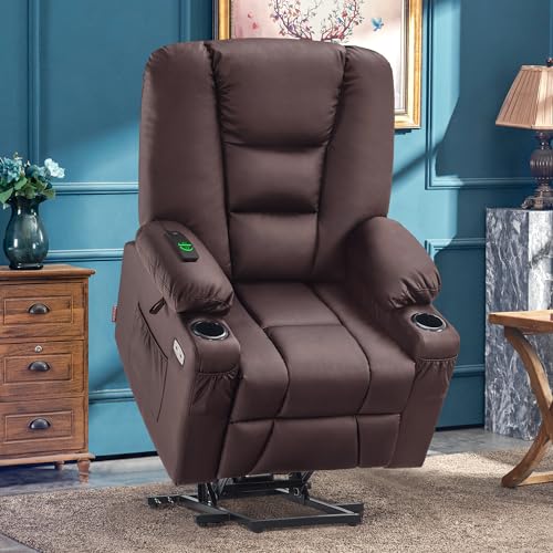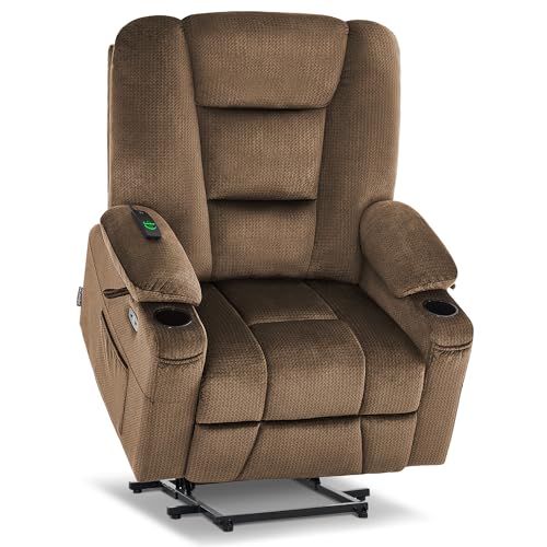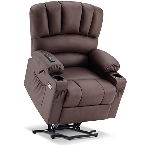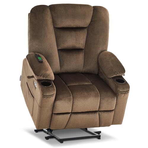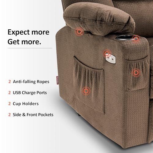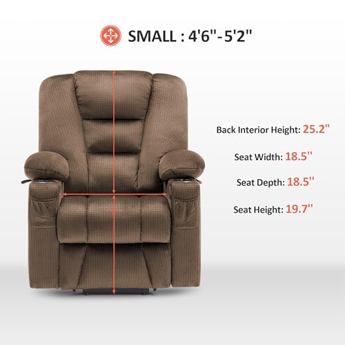 MCombo Small Power Lift Recliner Chair with Massage and Heat for Petite People, Cup Holders, USB Ports, Side Pockets, Fabric 7569 (Small-Regular, Brown)