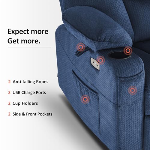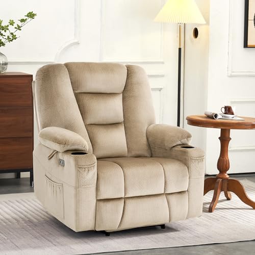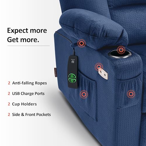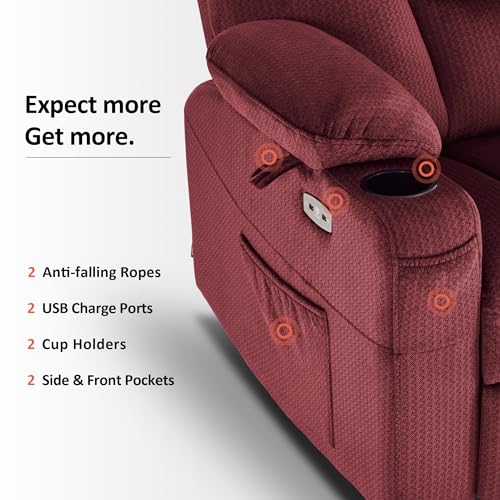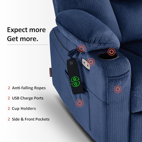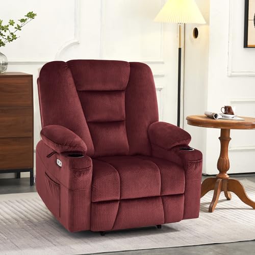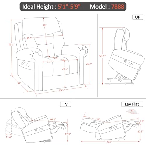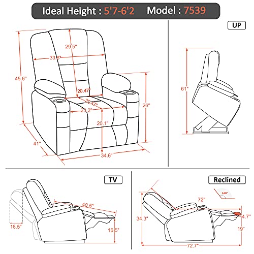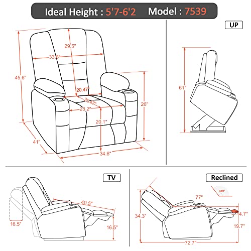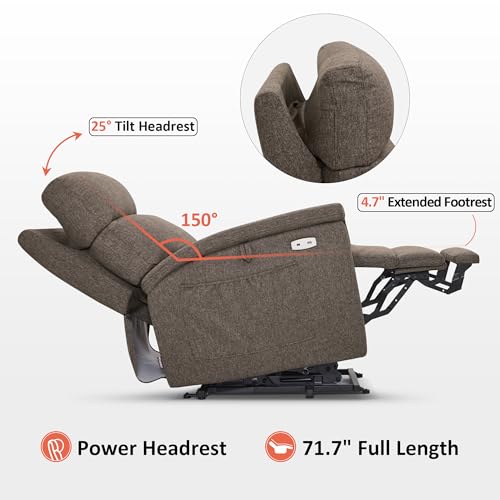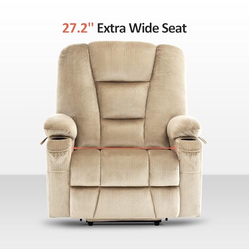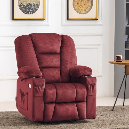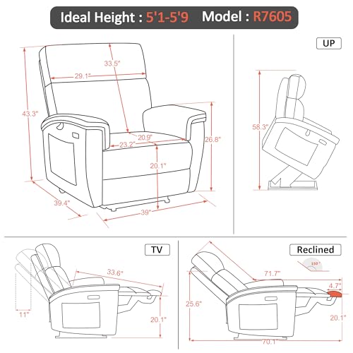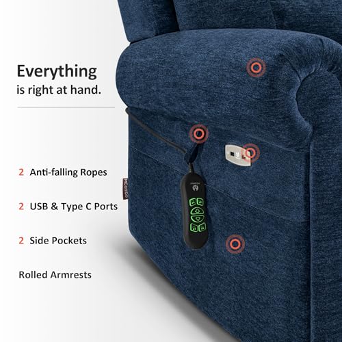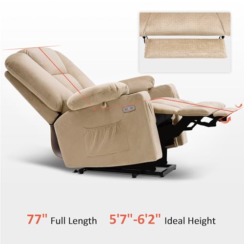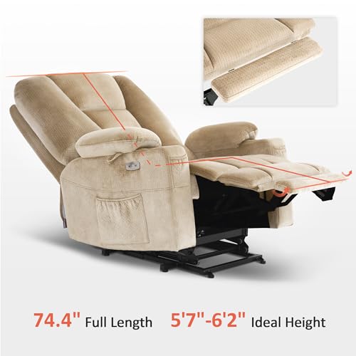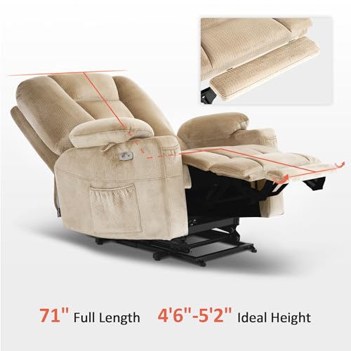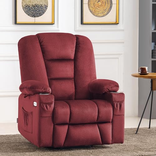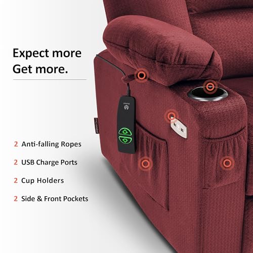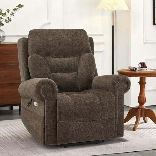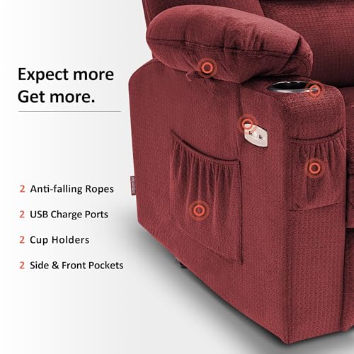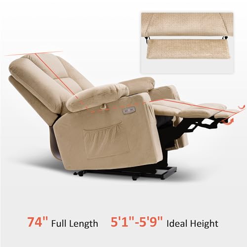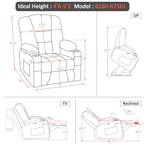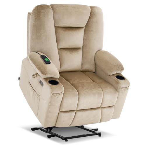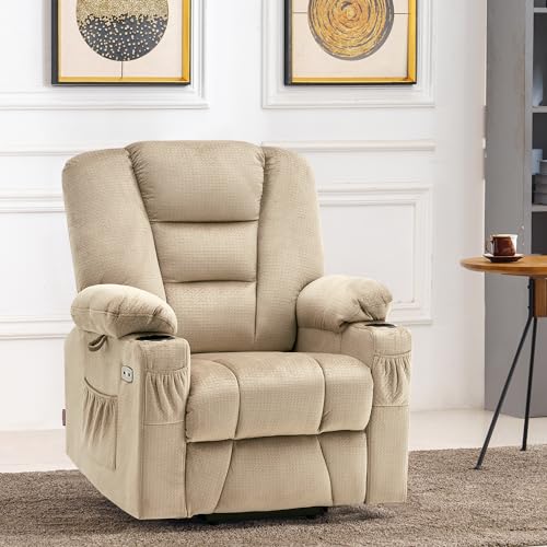 MCombo Small Power Lift Recliner Chair with Massage and Heat for Petite People, Cup Holders, USB Ports, Side Pockets, Fabric 7569 (Small-Regular, Brown)