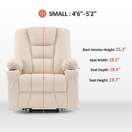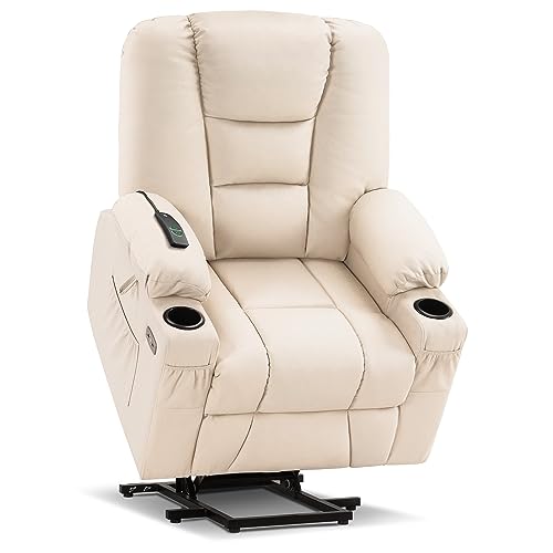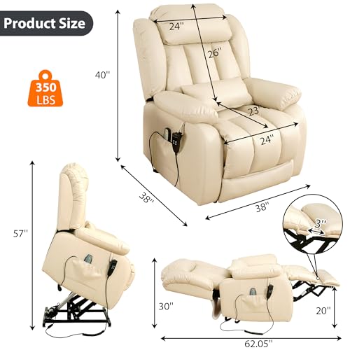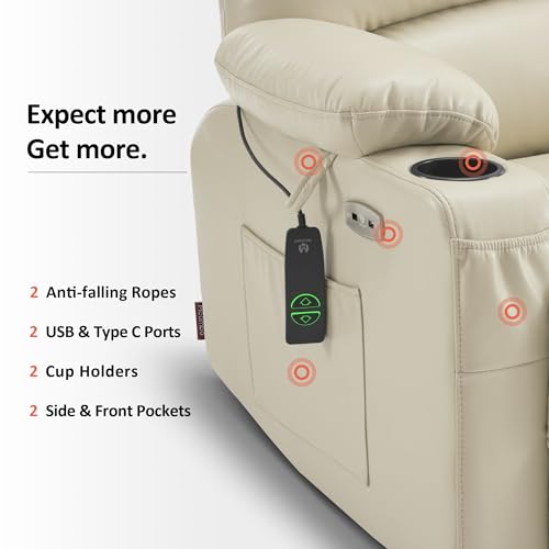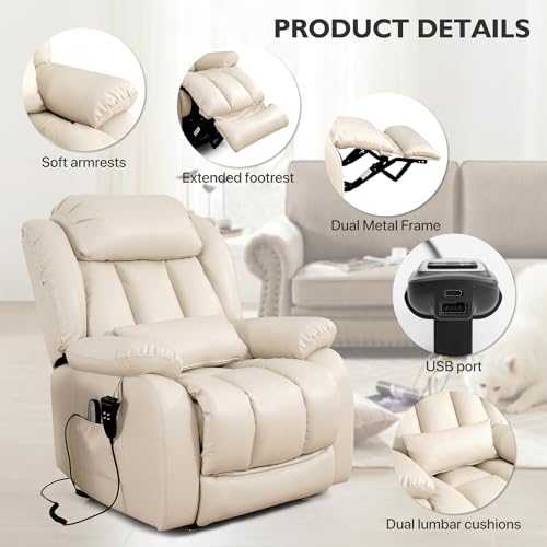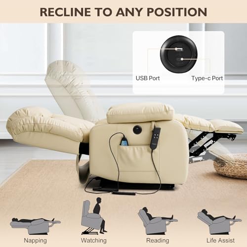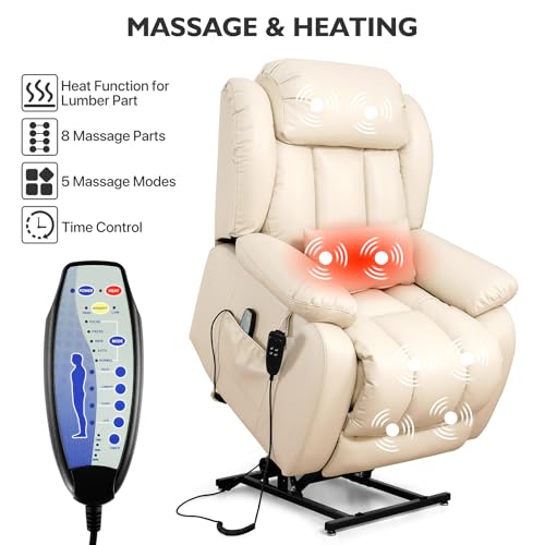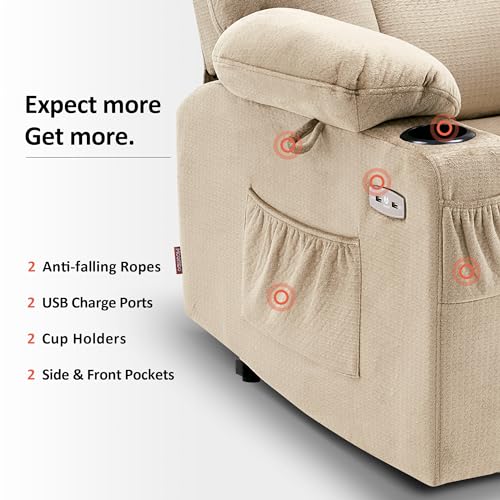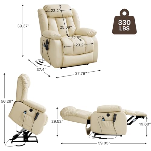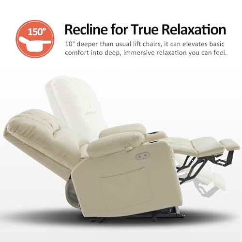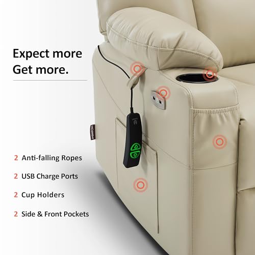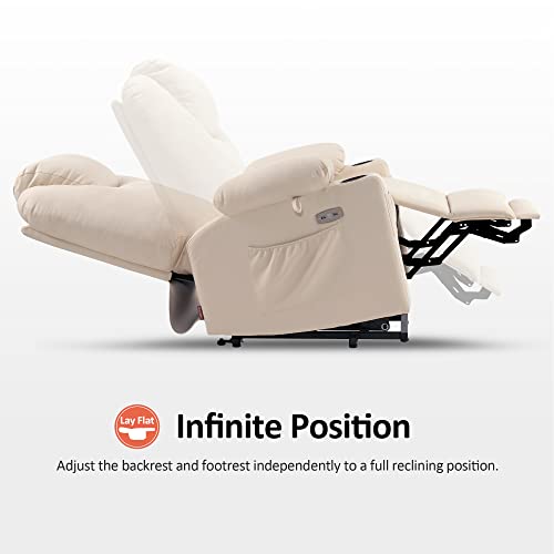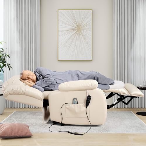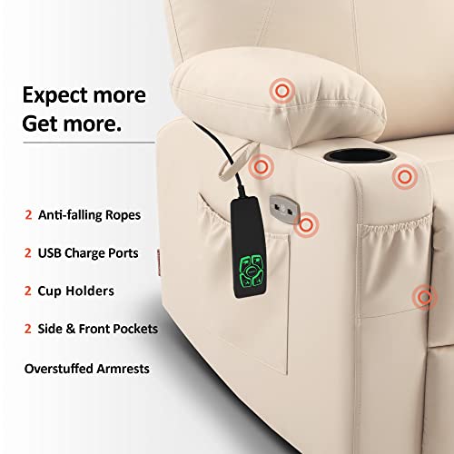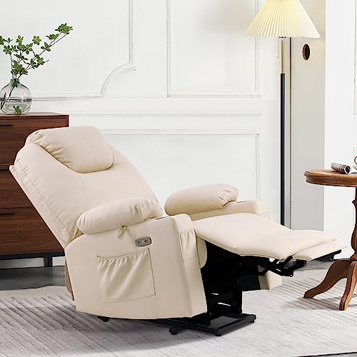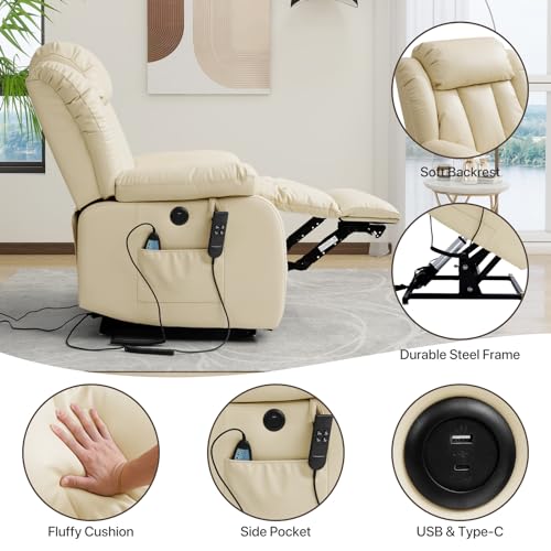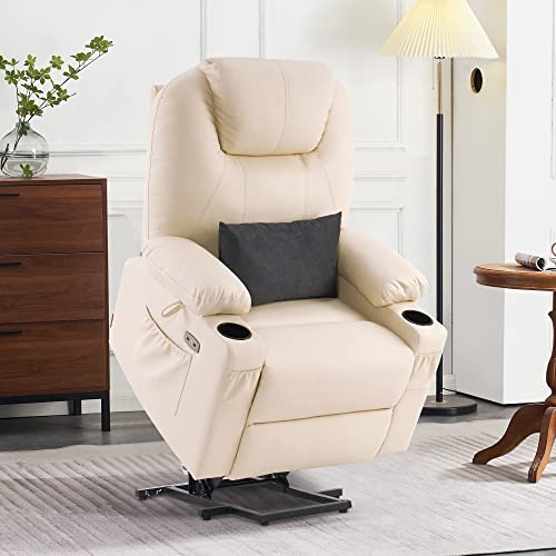 Power Lift Recliner Chair with Heat and Massage Electric Fabric Recliner Chair for Elderly with Side Pocket, USB Charge Port, Remote Control for Living Room (Cream)
