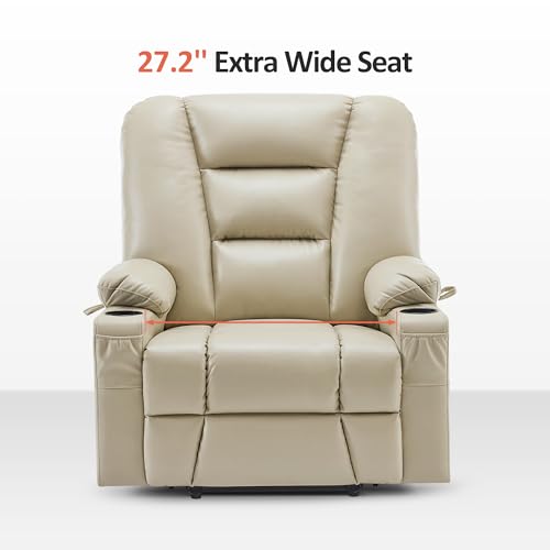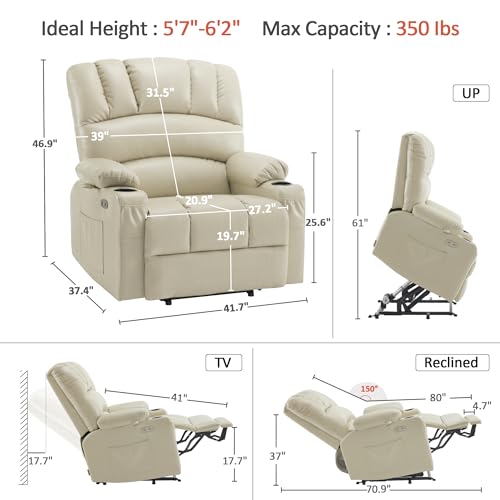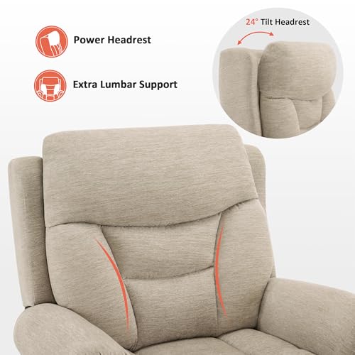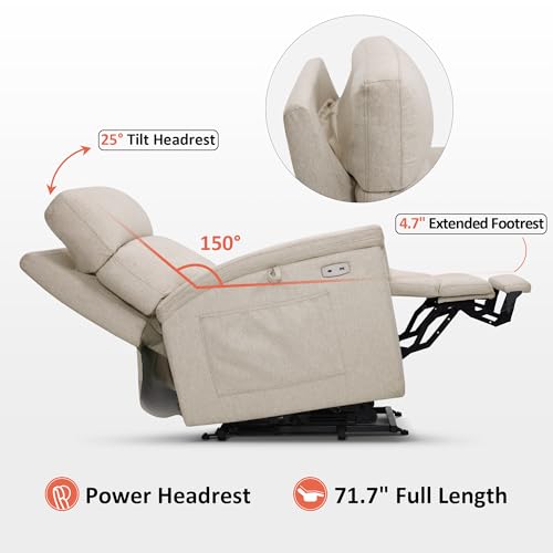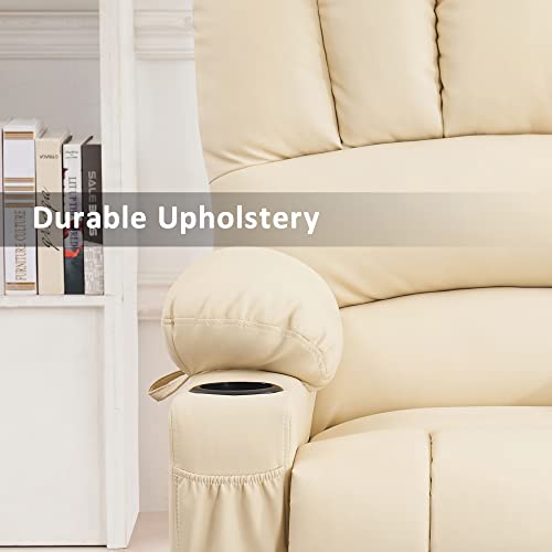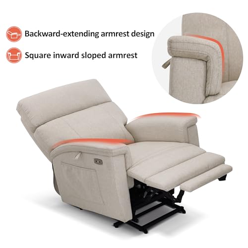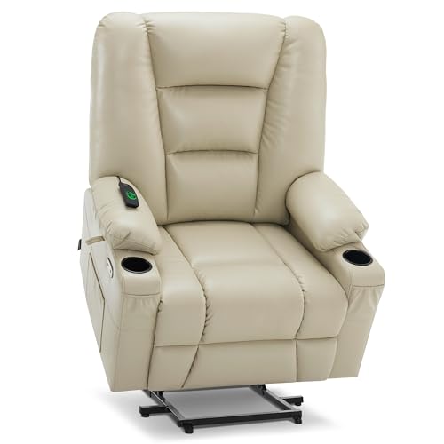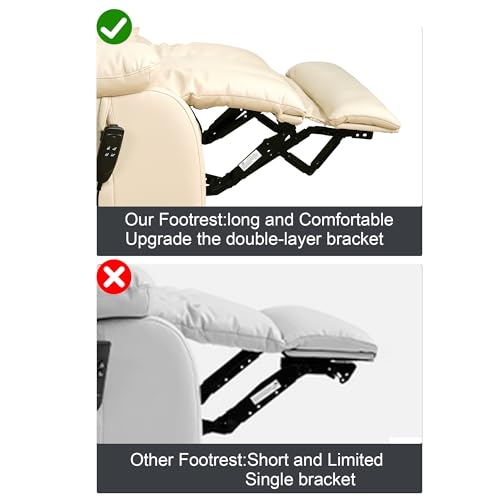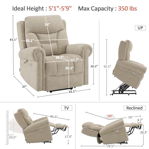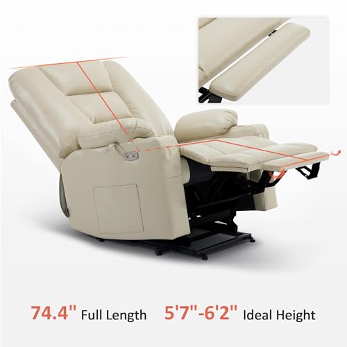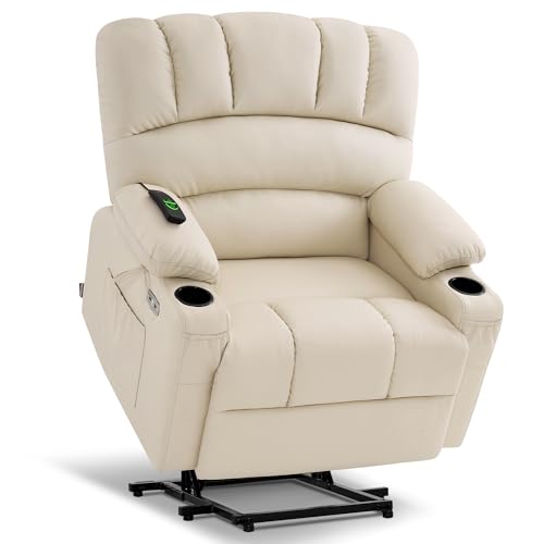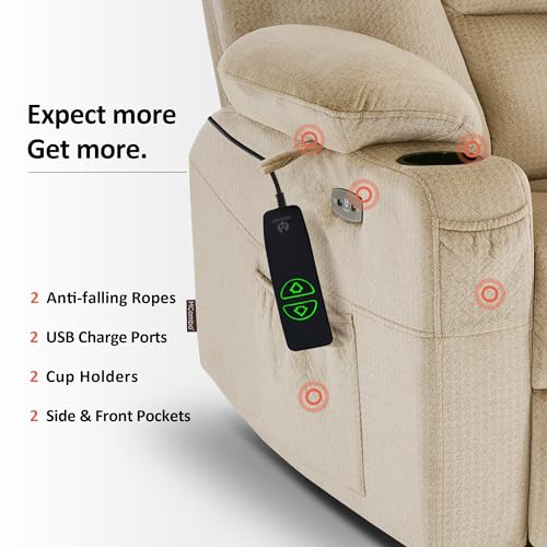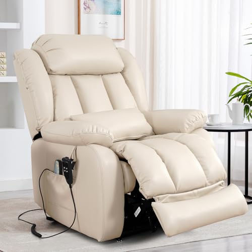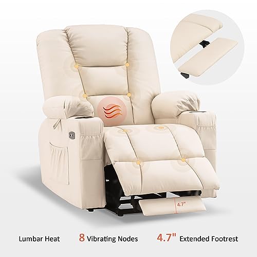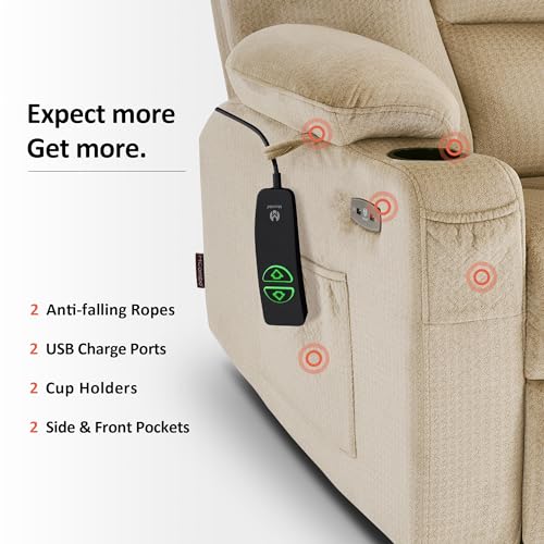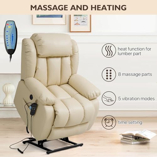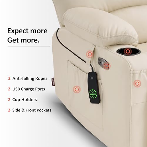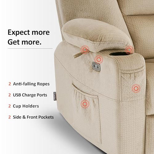 Power Lift Recliner Chair with Heat and Massage Electric Fabric Recliner Chair for Elderly with Side Pocket, USB Charge Port, Remote Control for Living Room (Cream)