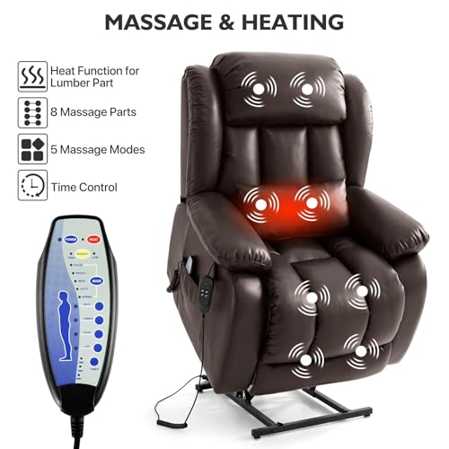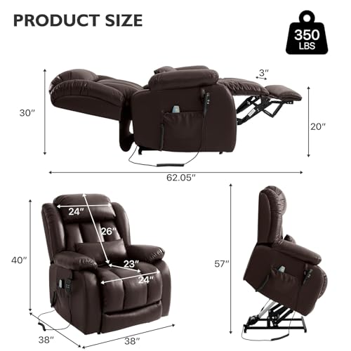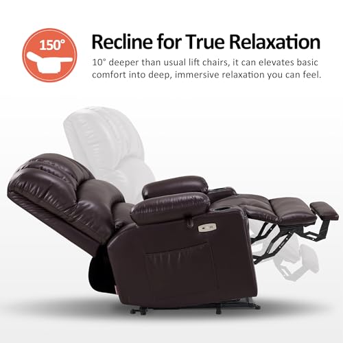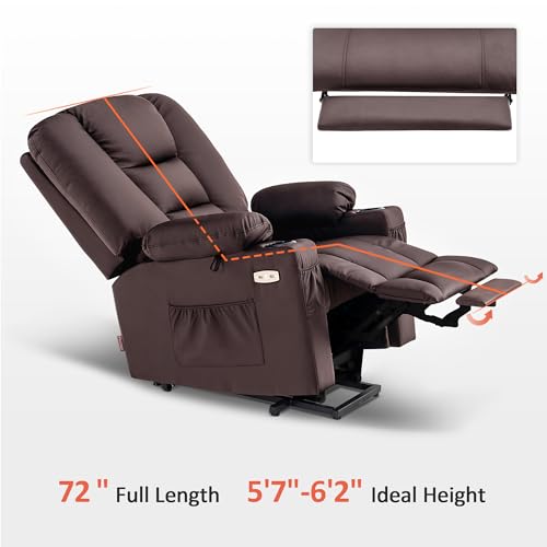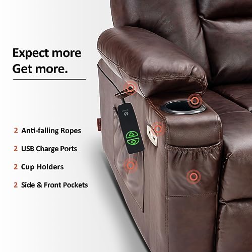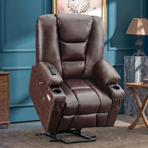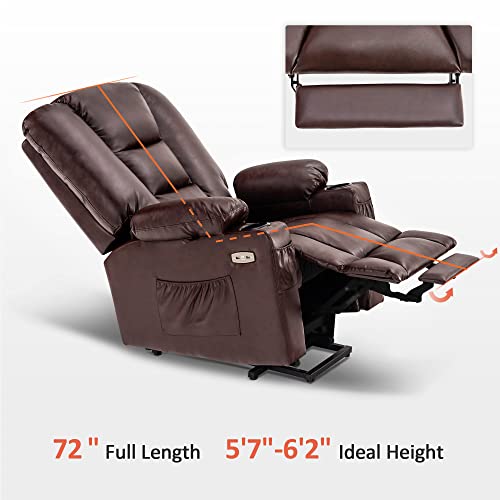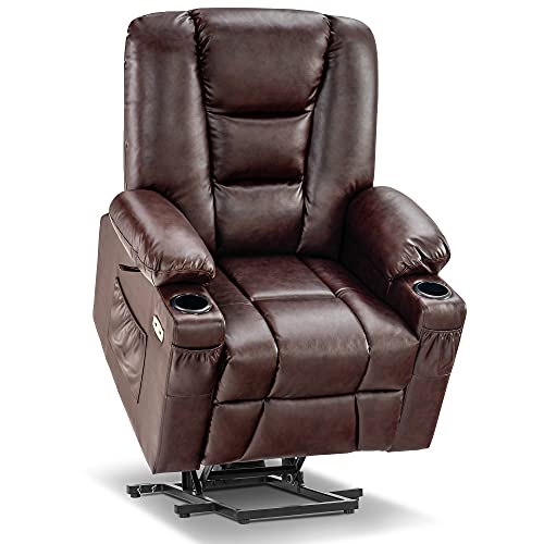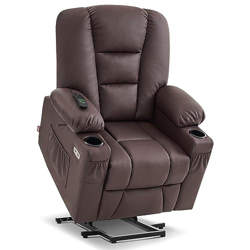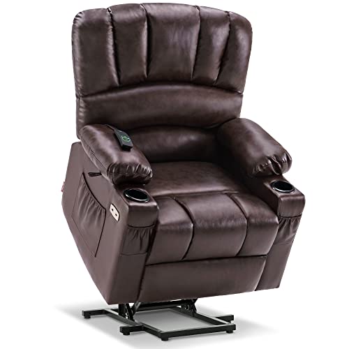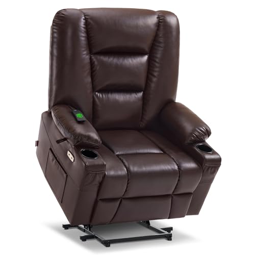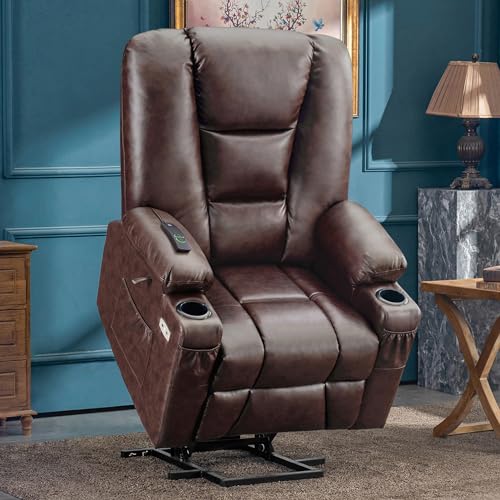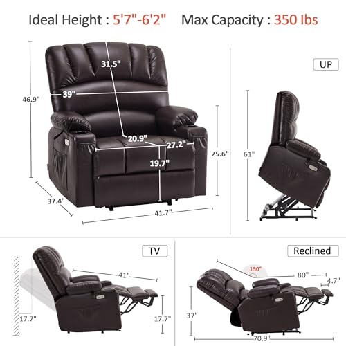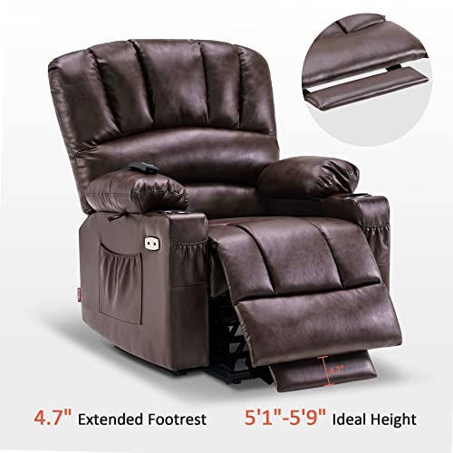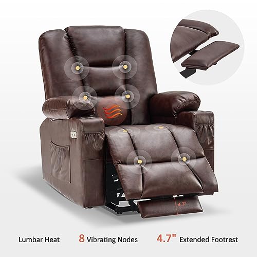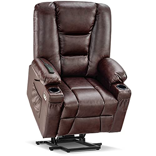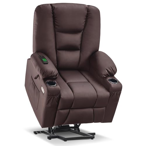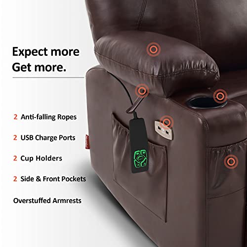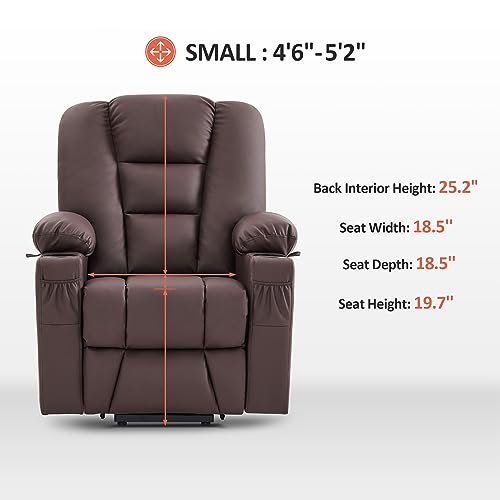 MCombo Small Power Lift Recliner Chair with Massage and Heat for Petite People, Cup Holders, USB Ports, Side Pockets, Faux Leather 7569 (Small, Dark Brown)
