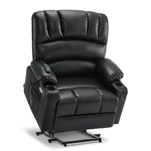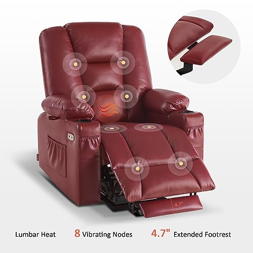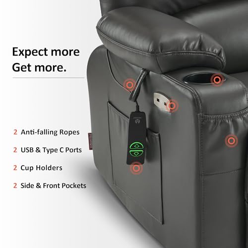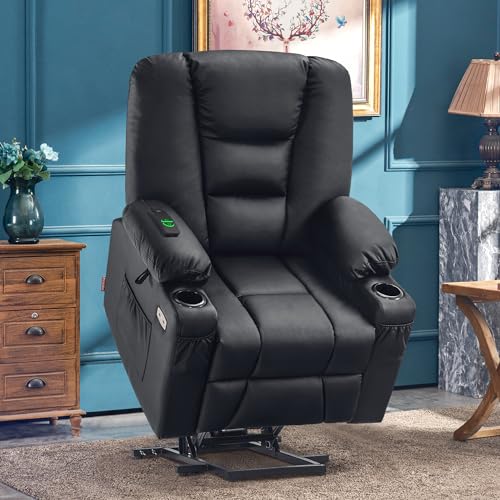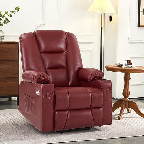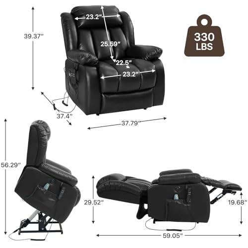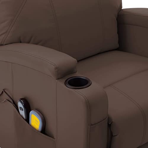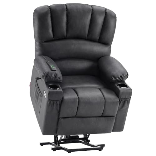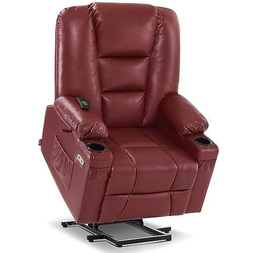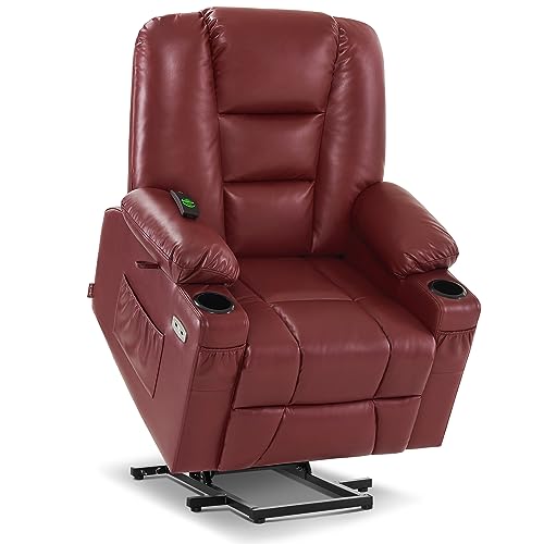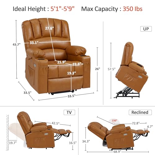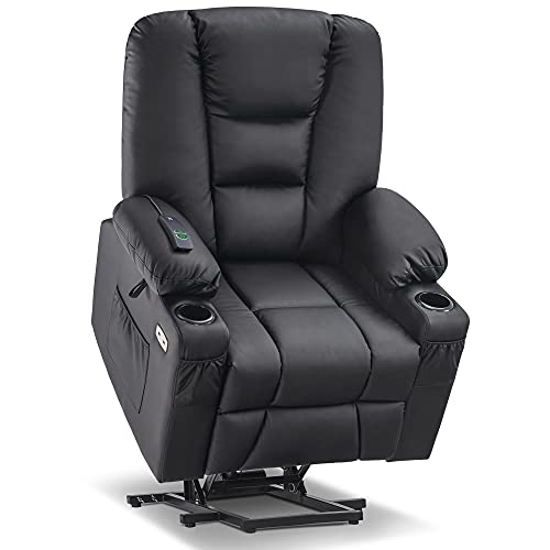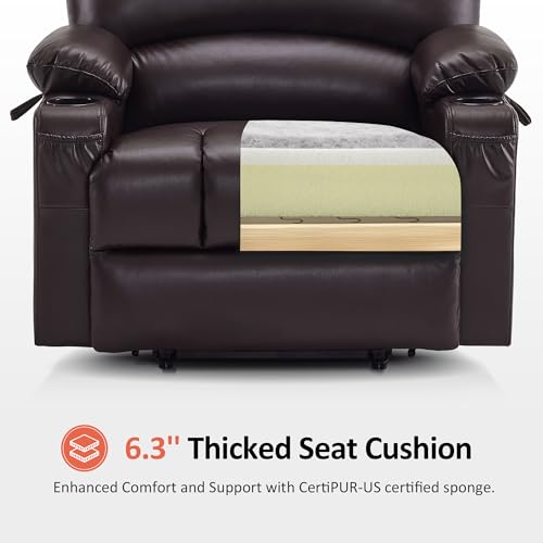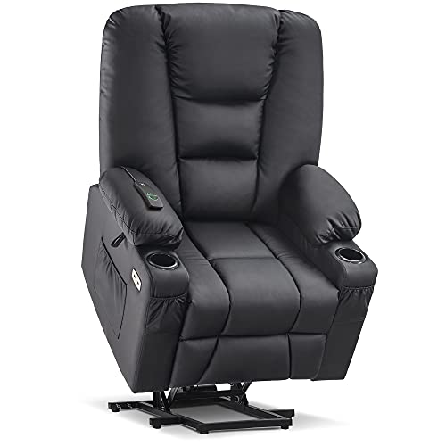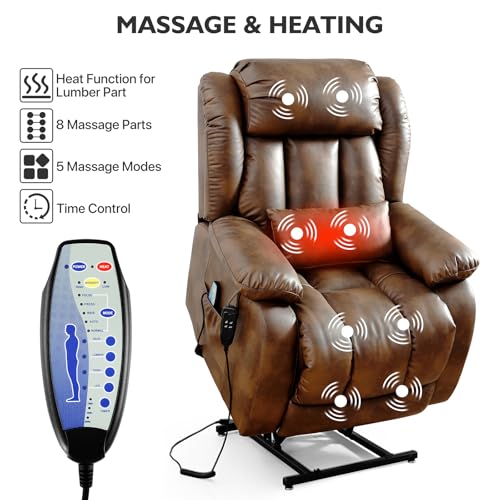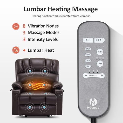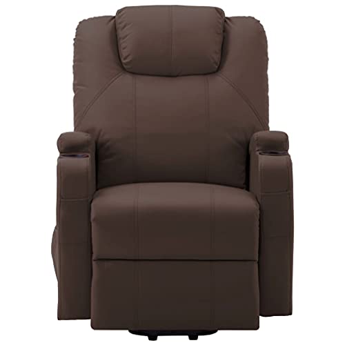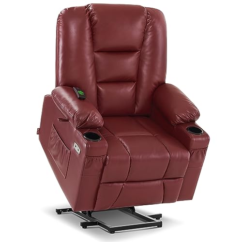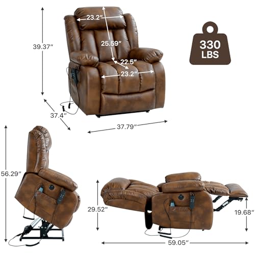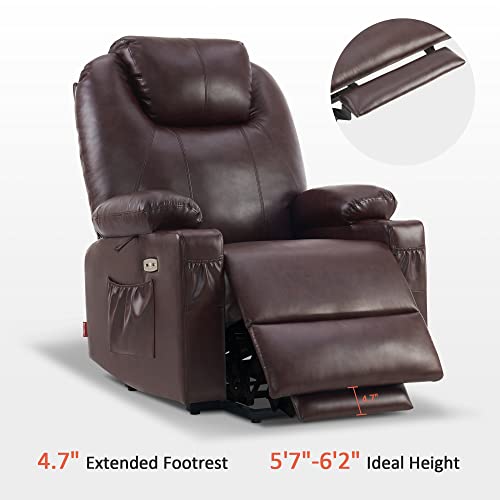 MCombo Small Power Lift Recliner Chair with Massage and Heat for Petite People, Cup Holders, USB Ports, Side Pockets, Faux Leather 7569 (Small, Dark Brown)