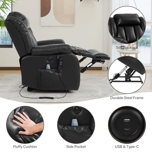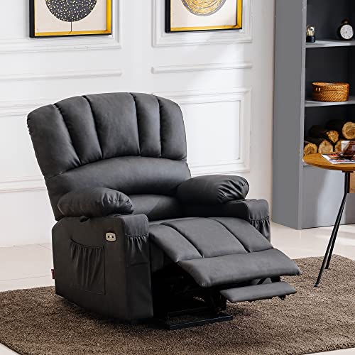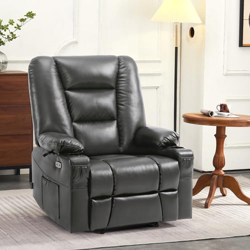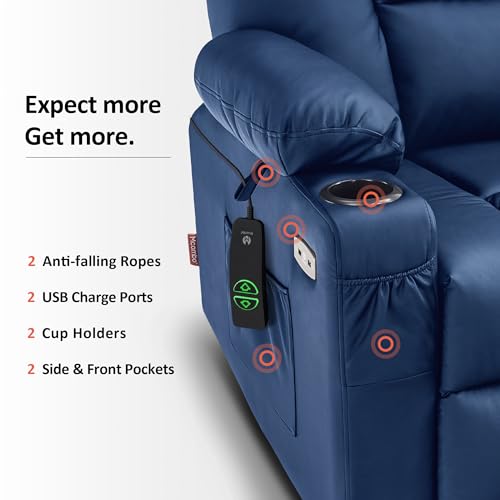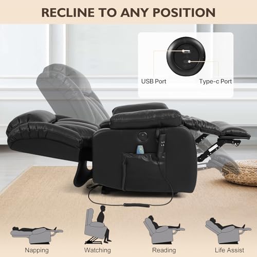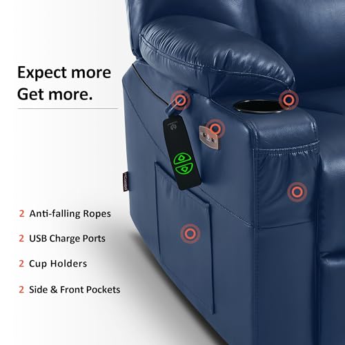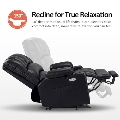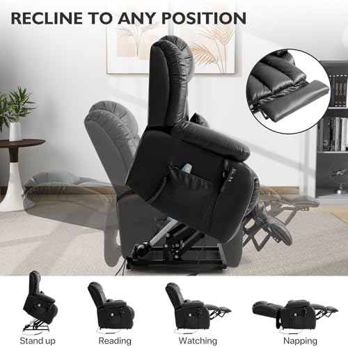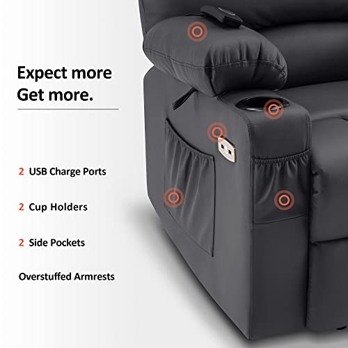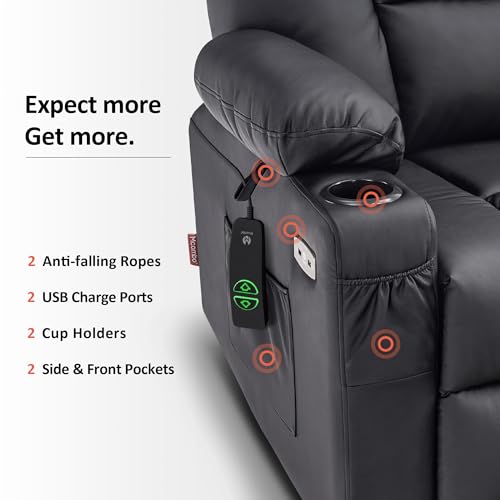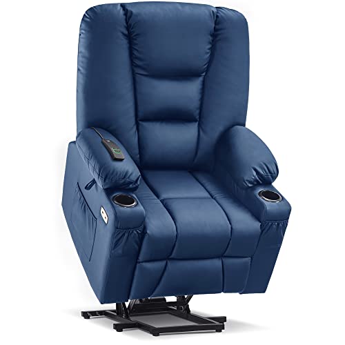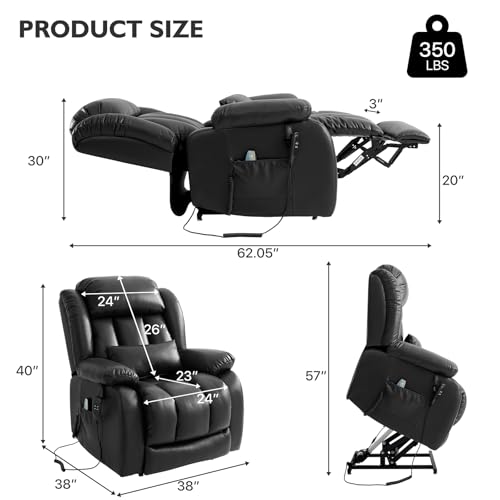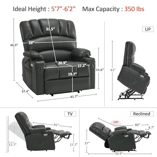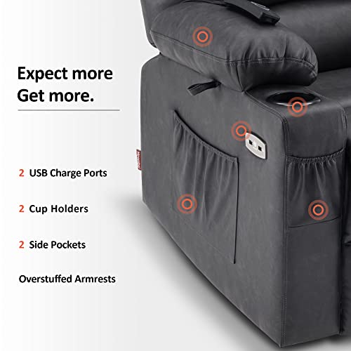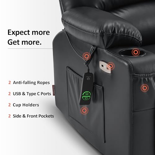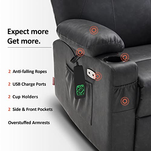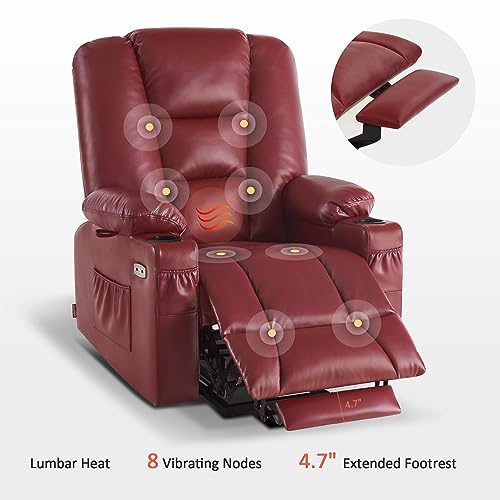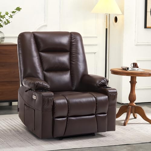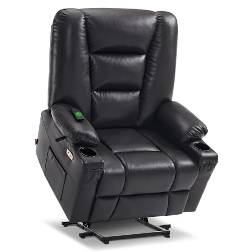 MCombo Small Power Lift Recliner Chair with Massage and Heat for Petite People, Cup Holders, USB Ports, Side Pockets, Faux Leather 7569 (Small, Dark Brown)