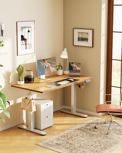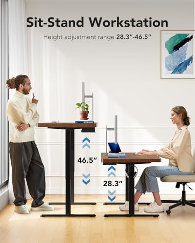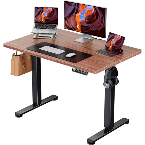 ErGear Height Adjustable Electric Standing Desk, 48 x 24 Inches Sit Stand up Desk, Memory Computer Home Office Desk with Two-Piece Desktop (Walnut)