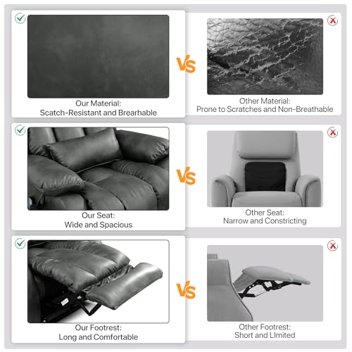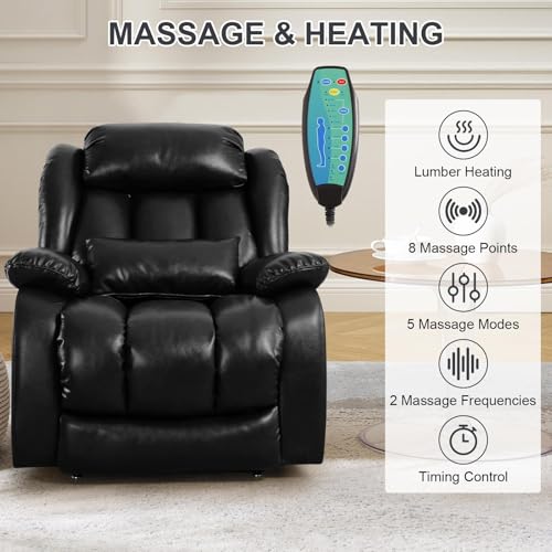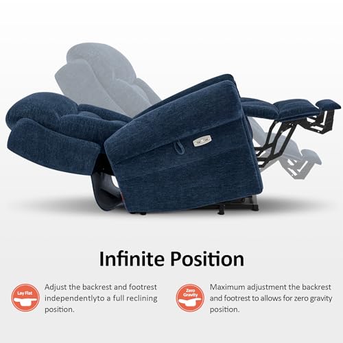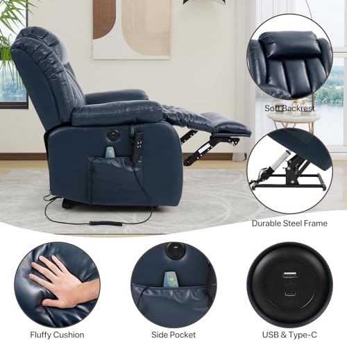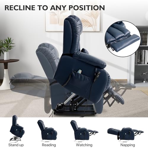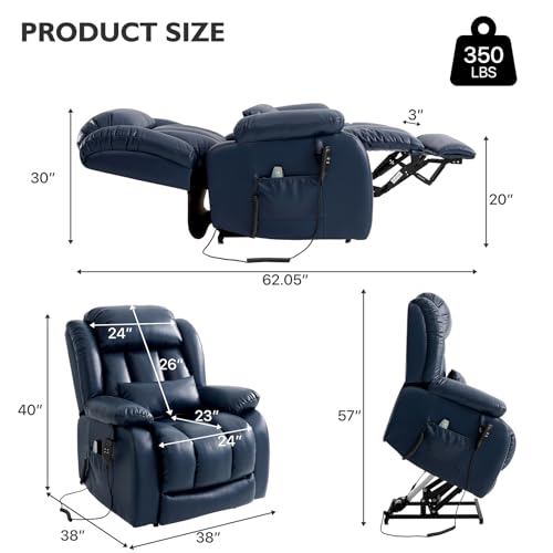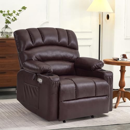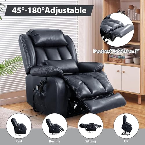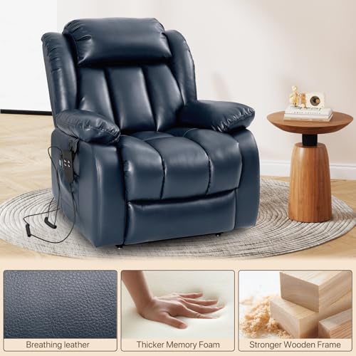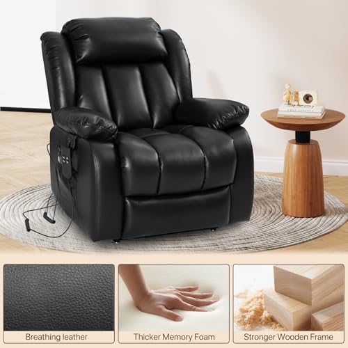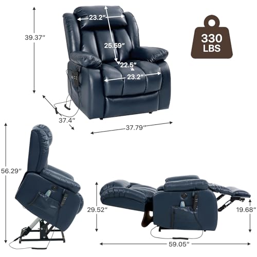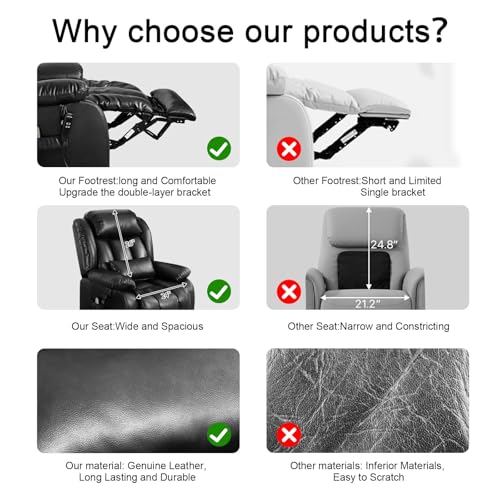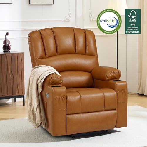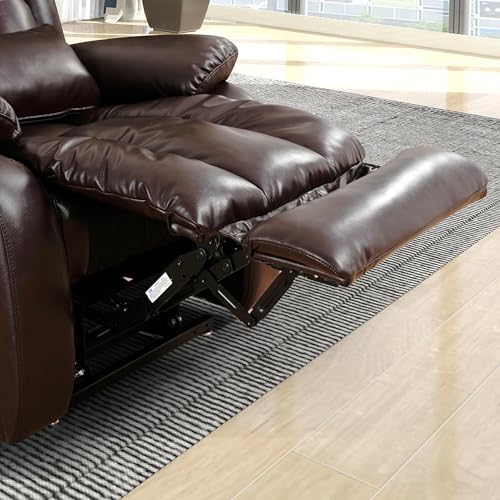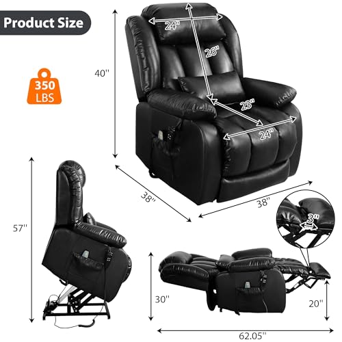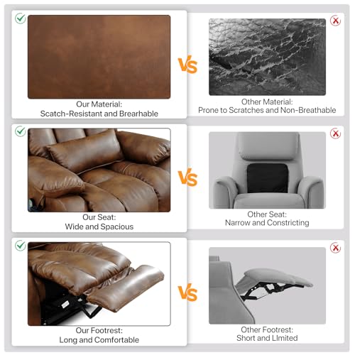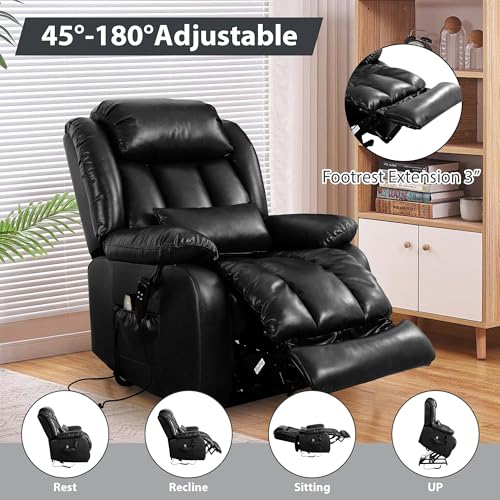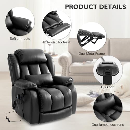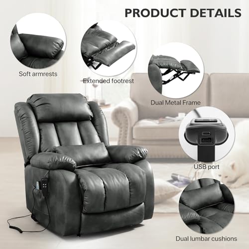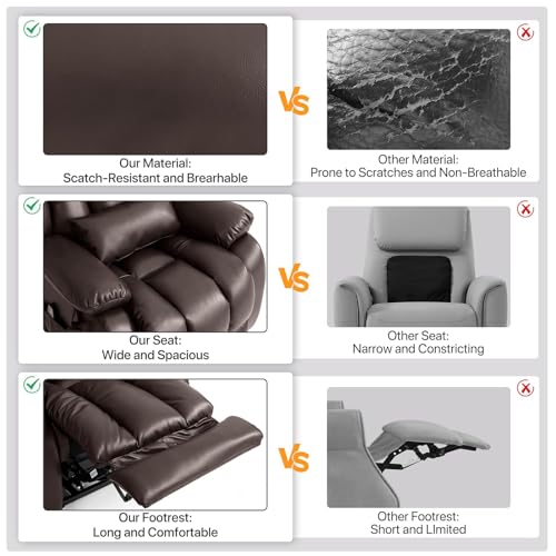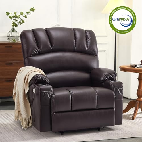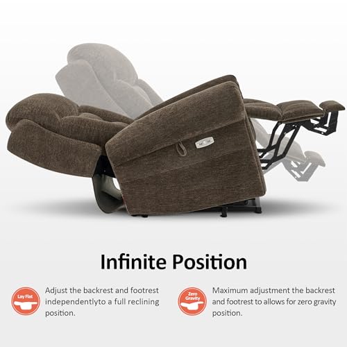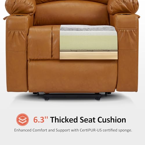 EDILLY Large Genuine Leather Power Lift Recliner Chairs for Elderly, Dual Motor with Massage and Heating,Double Lumbar Cushion and Extended Footrest,USB&Type-C Port and Remote(Brown)