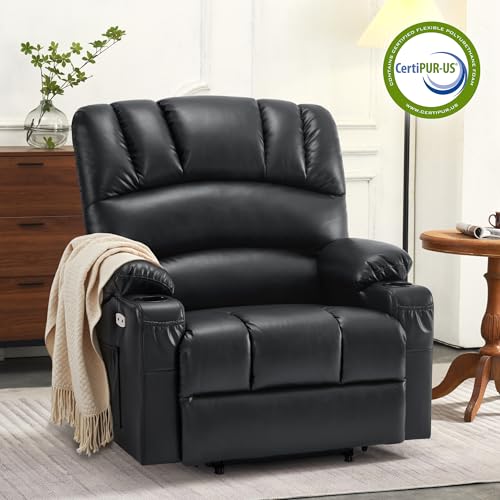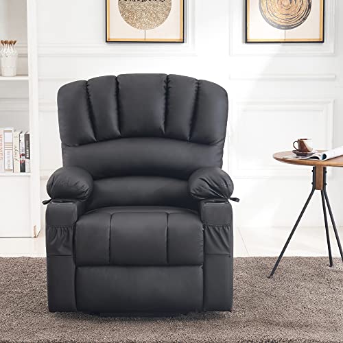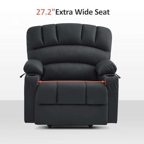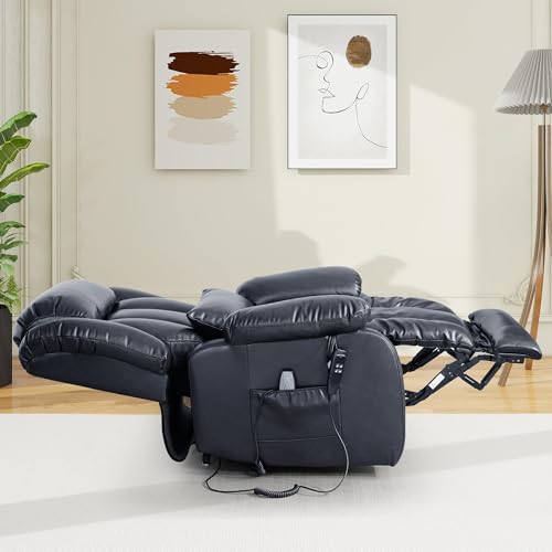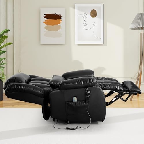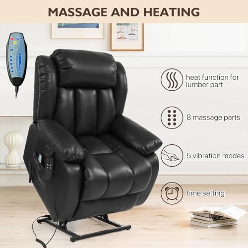 vidaXL Electric Power Lift Massage Chair with Manual Recline, 6-Point Vibration Massage, Cup Holders & Side Pocket – Black Faux Leather Comfortable Recliner