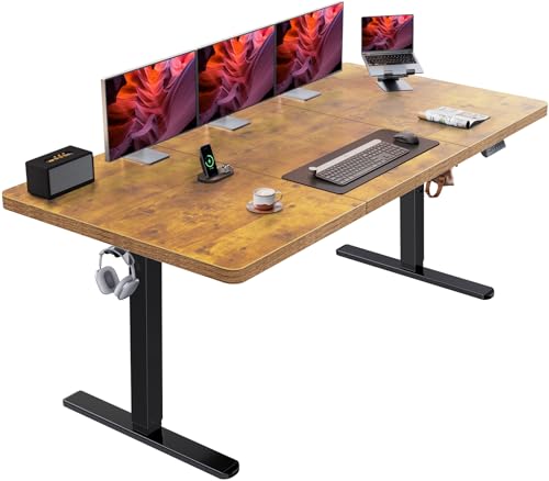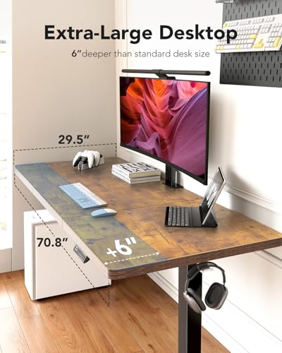 HUANUO Electric Standing Desk, 71 x 35 inch Large Height Adjustable Table, Powerful Brushless Motor, 4 Memory Preset, Sit Stand Up Desk, Home Office Computer Table with Thick T-Shaped Frame