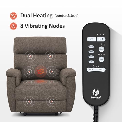 MCombo Triple Motor Power Lift Recliner Chair with Massage and Lumbar&seat Heating, Rolled Arms, Adjustable Headrest for Elderly People, Fabric 7888 (Coffee, Medium)