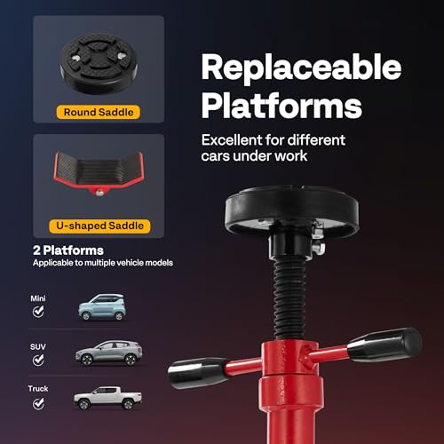 SPECSTAR Movable Underhoist Support Stand with Foot Pedal, 3/4 Ton 1650Lbs Capacity Jack Stand Lifting from 52 to 76 Inch with Replaceable Saddle and Steel Base