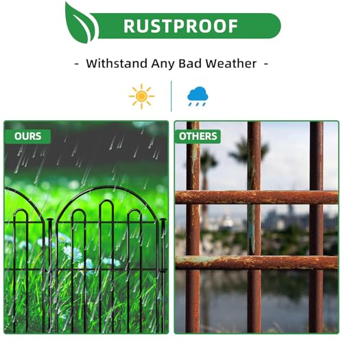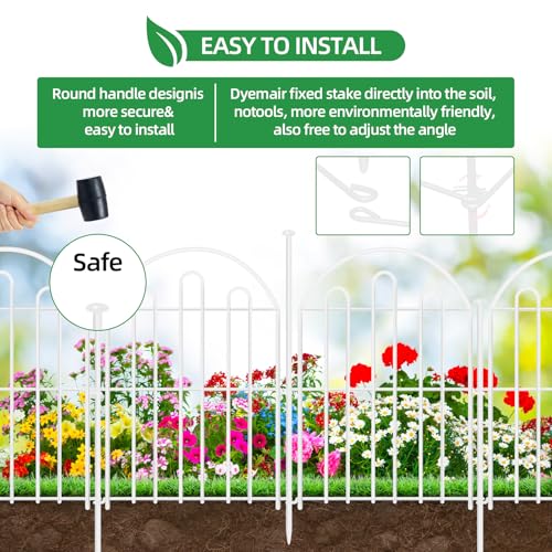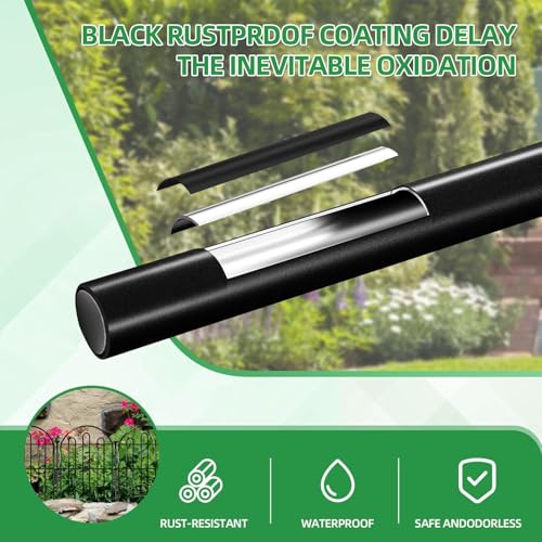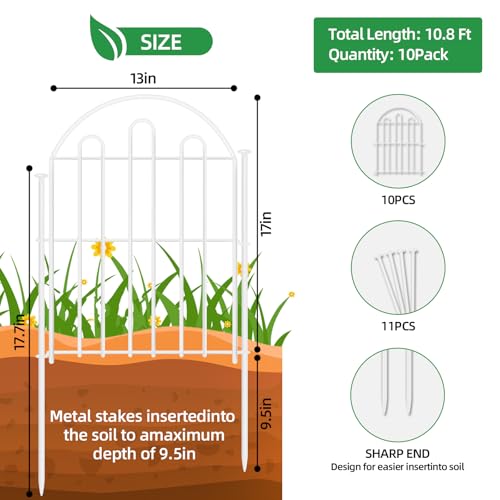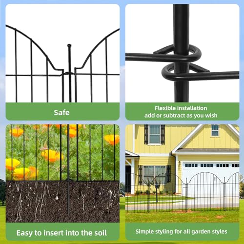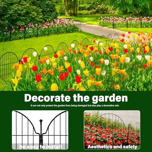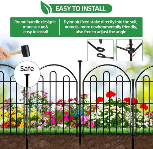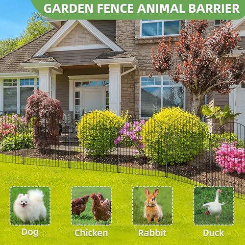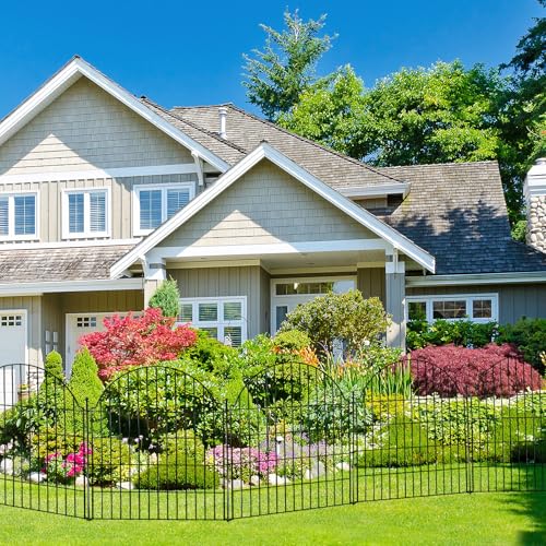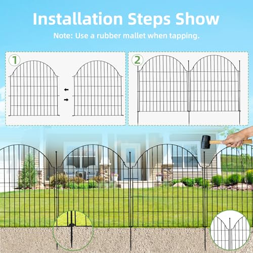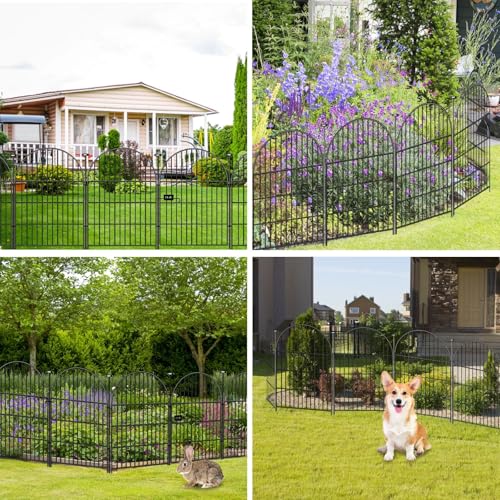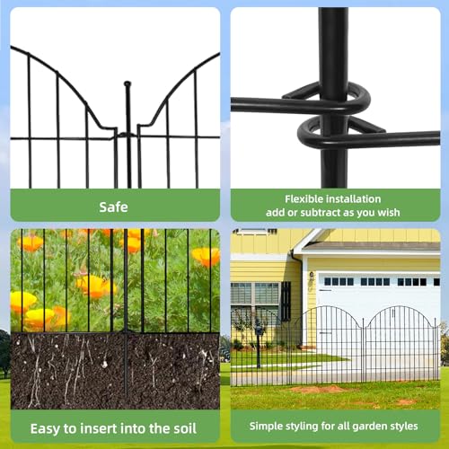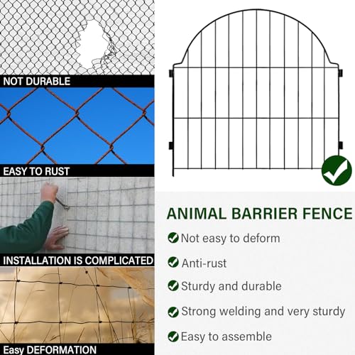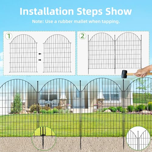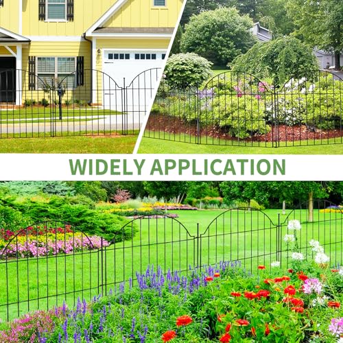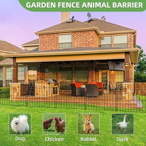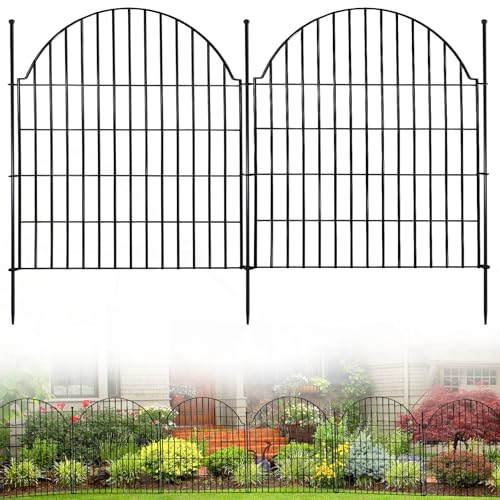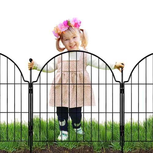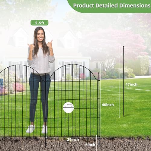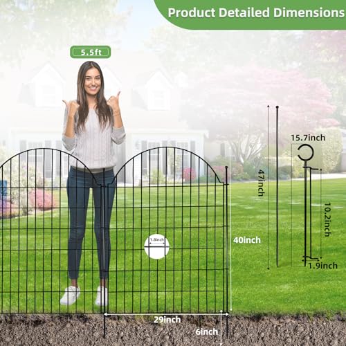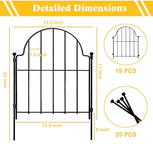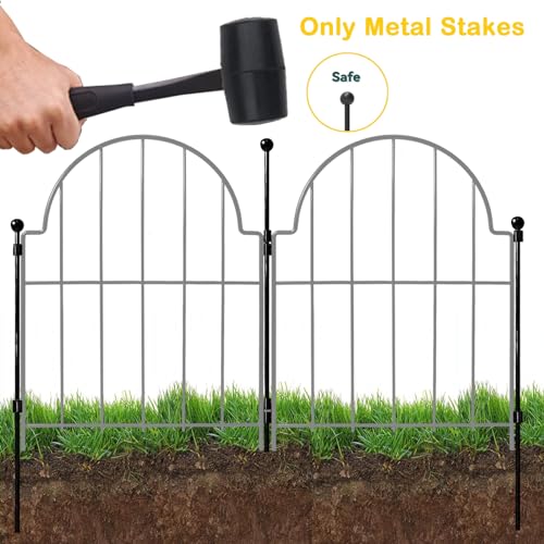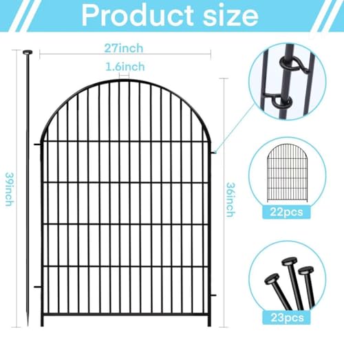 Garden Fence, 22 in(H) x 10.83 ft(L) Arched Rustproof Metal No Dig Fence Garden Fence Border, Ground Stake Animal Barrier Fence for Rabbit Dog, Outdoor Decor for Yard & Patio