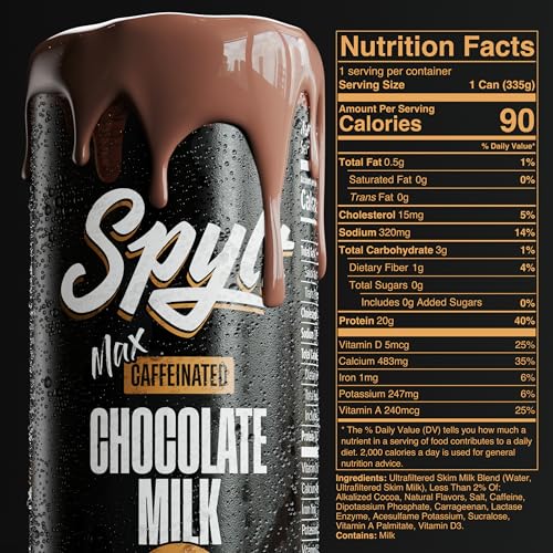 High Protein Max Chocolate Milk with 140mg Caffeine & 20g Protein - 90 Calories, Ready to Drink, Sugar Free, Lactose Free Milk, Perfect for Workout Recovery & Afternoon Pick Me Up - 12 Count
