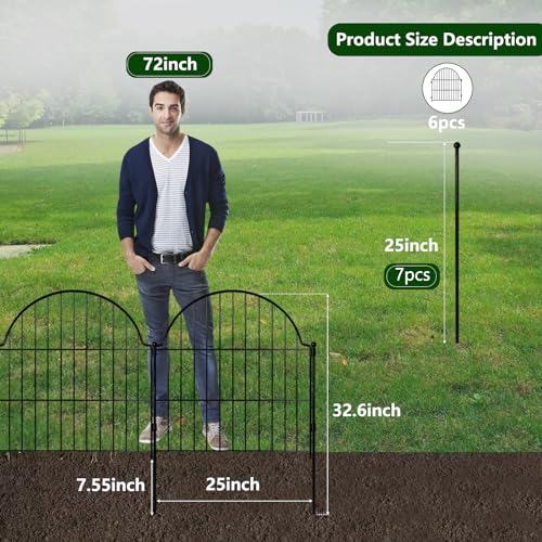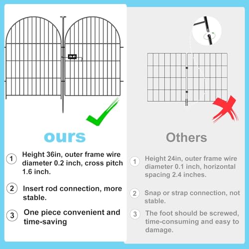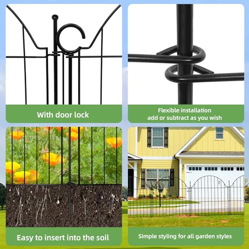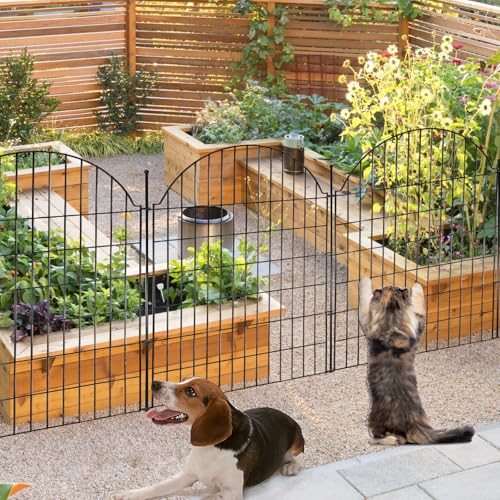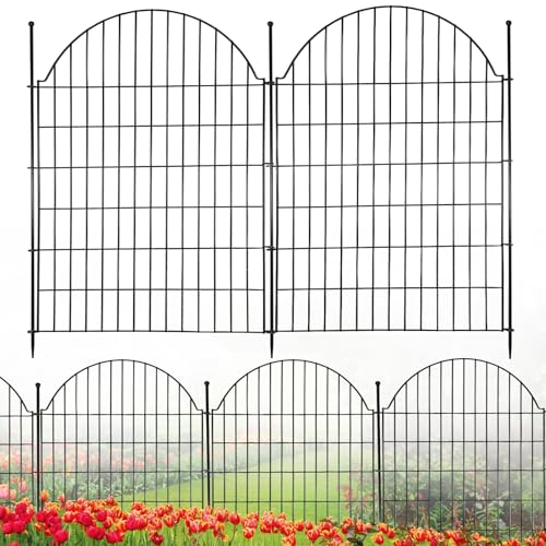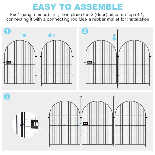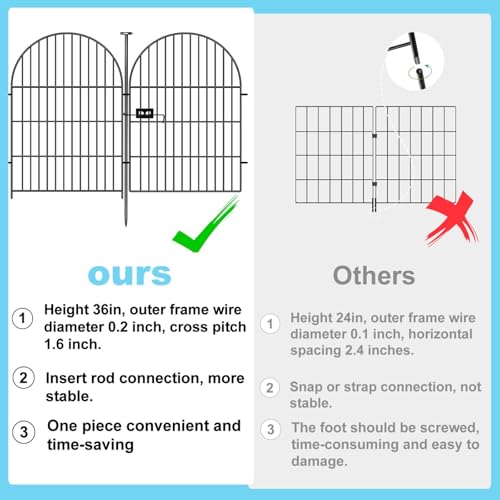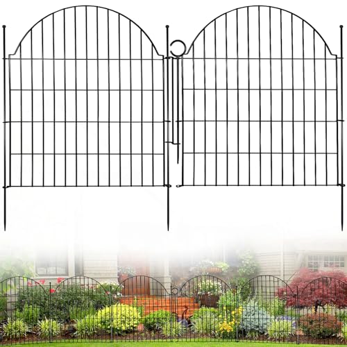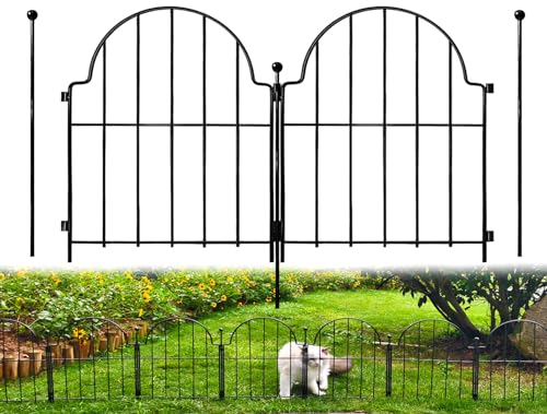 Garden Fence Border, 36 in(H) x17.5 Ft(L) 8 Panels, Tall Garden Animal Barrier Fence with Gate, Dog Fence Outdoor for Yard, Arched Rustproof Metal No Dig Fence, Flower Bed Fencing