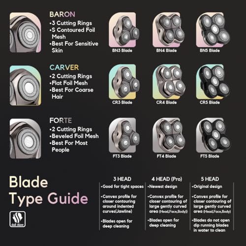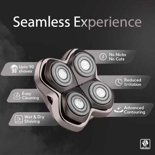 Skull Shaver Forte PRO 4 Head Replacement Blade - Shaver Blade for Wet & Dry Shaving - Rotary Heads Design - Japanese Stainless Steel - Compatible with Pitbull, Palm & Butterfly Kiss Shavers