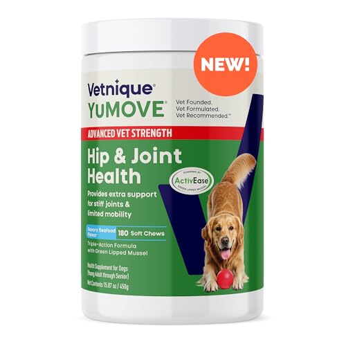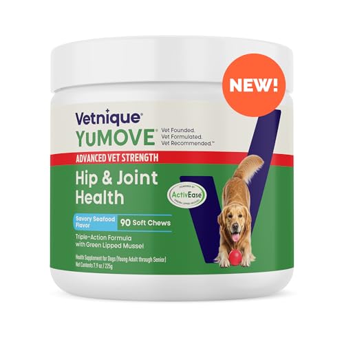 YuMOVE Hip & Joint Supplement for Dogs with Glucosamine, Hyaluronic Acid, Green Lipped Mussel & Omega 3 Joint Supplement - Regular or Advanced Strength (45ct, Advanced Vet Strength Soft Chews)