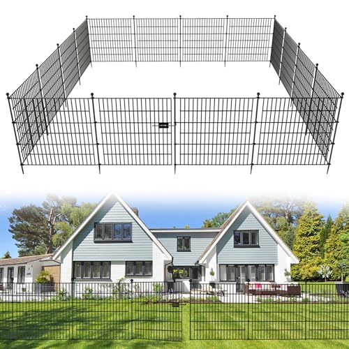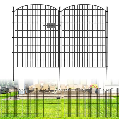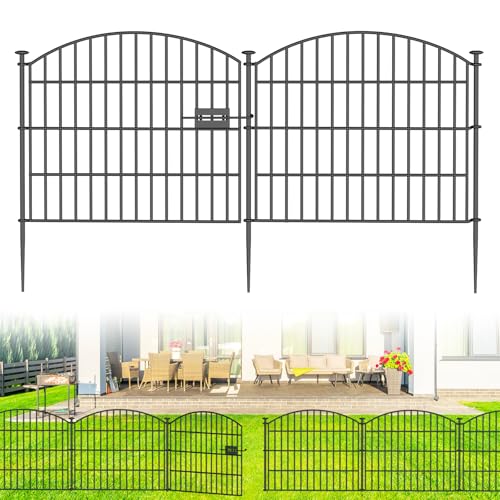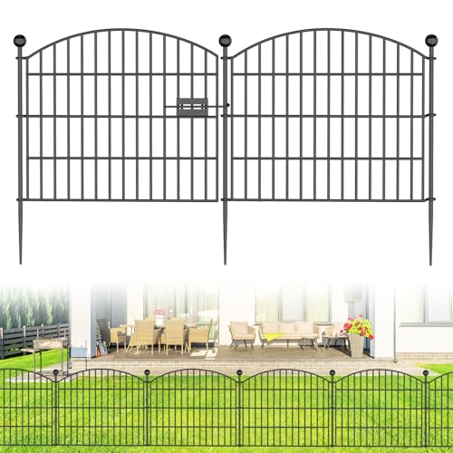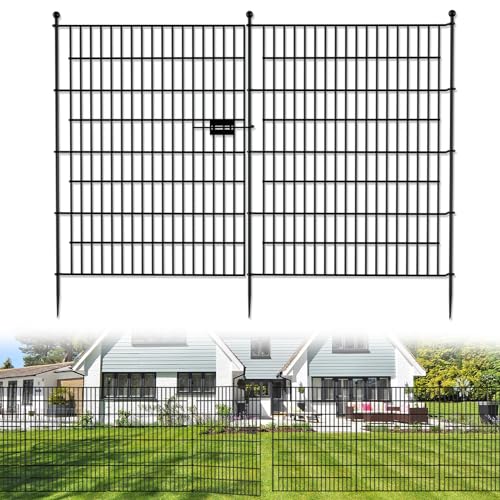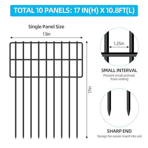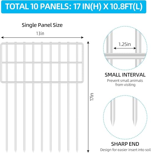 10 Panels No Dig Decorative Outdoor Garden Fence with Gate for Yard, 40 in(H) X 23.6 ft(L) Animal Barrier Fencing Rustproof Metal Wire Panel Border for Dog, Rabbits, and Patio Temporary Ground Stakes