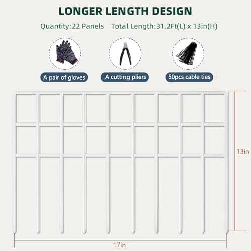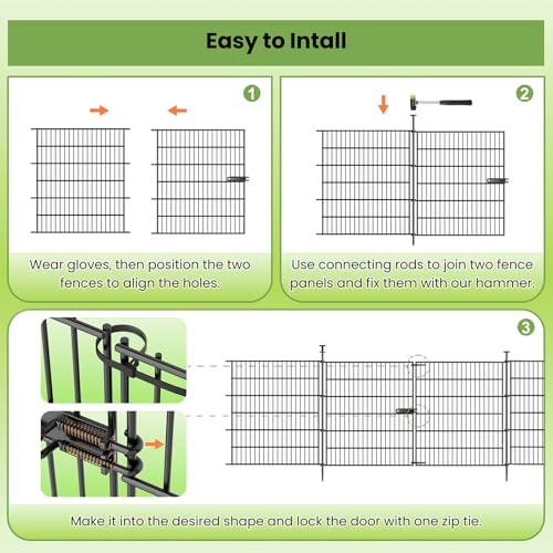 Garden Fence Panels with Gate 14.5ft(L) X 40in(H), Garden Fencing for Yard Includes Gloves, Hammer&Zip Ties, Rustproof Metal Wire Temporary No Dig Dog Fence Outdoor for Yard