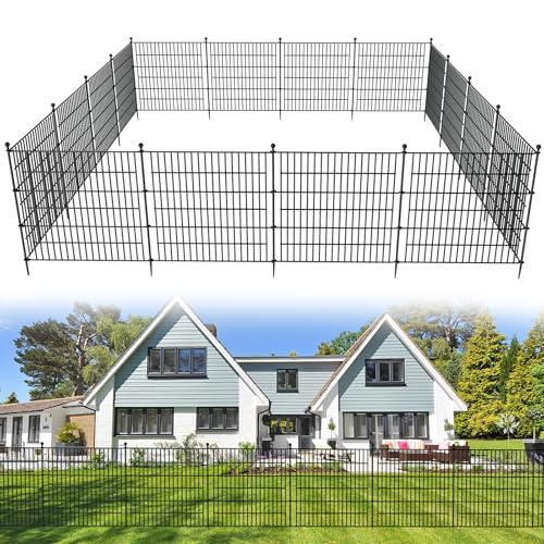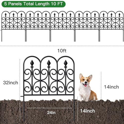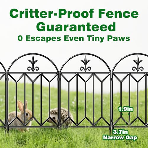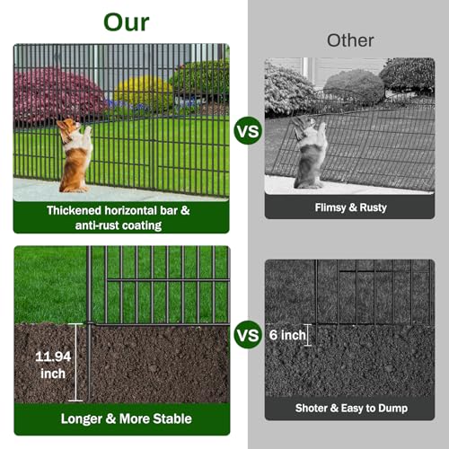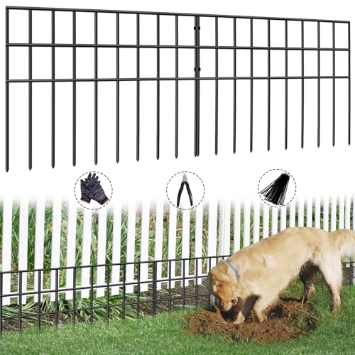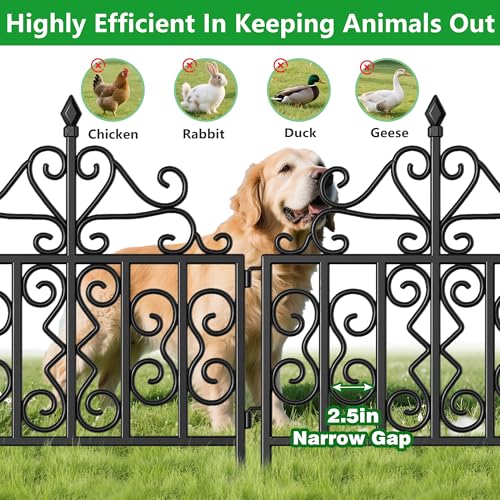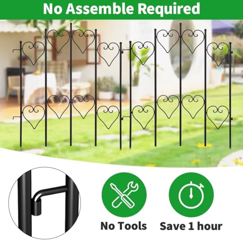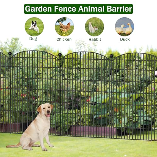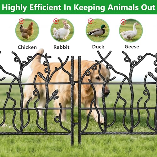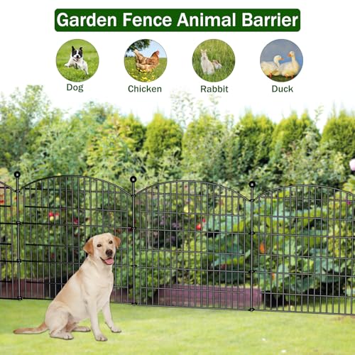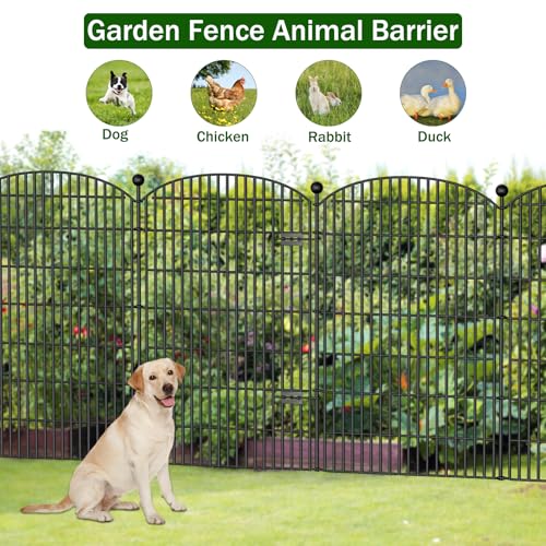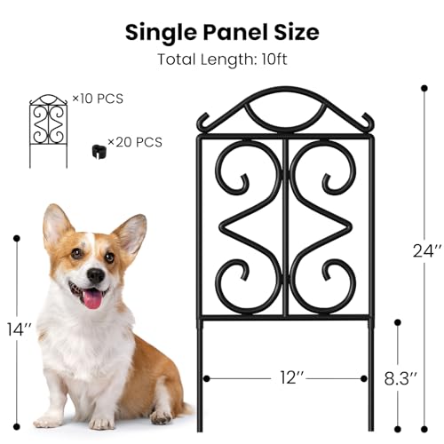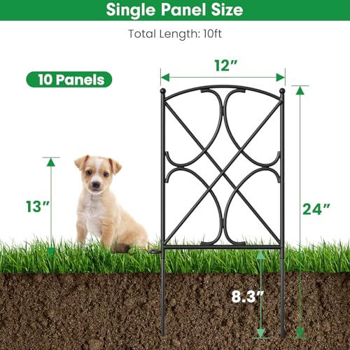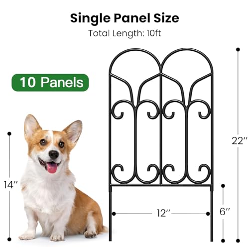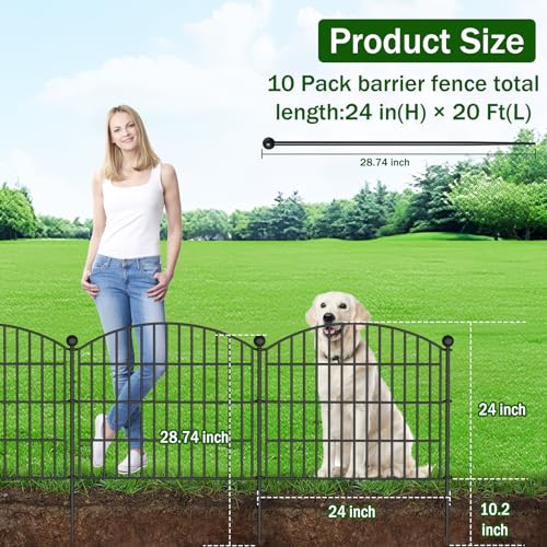 10 Panels No Dig Decorative Garden Fence - 40 in (H) x 23.6 ft (L), Dog Fence Outdoor for Yard,Rustproof Metal Animal Barrier Ground Stakes Fencing for Garden, Patio, Flower Bed