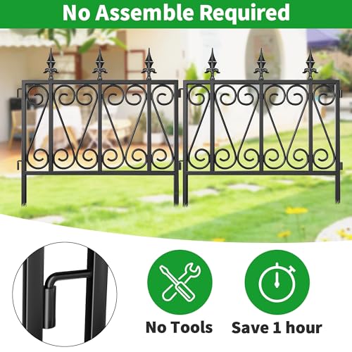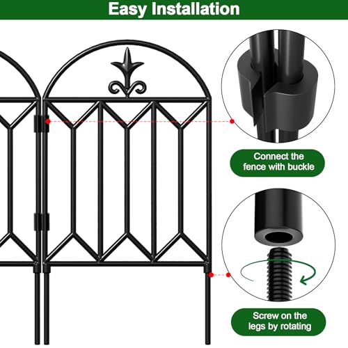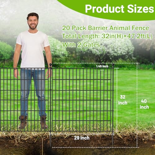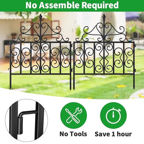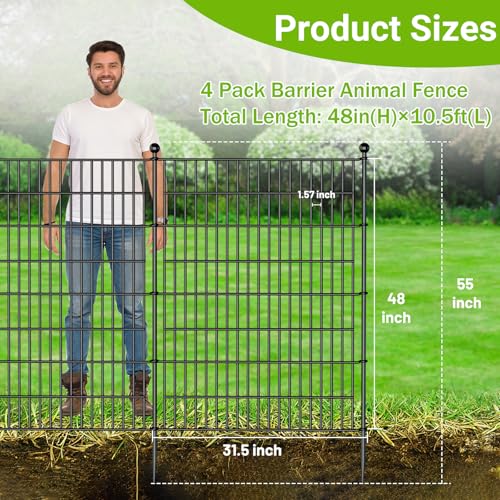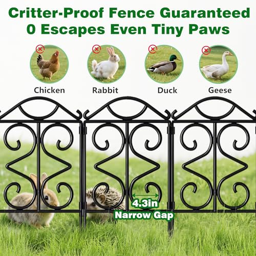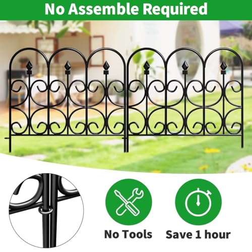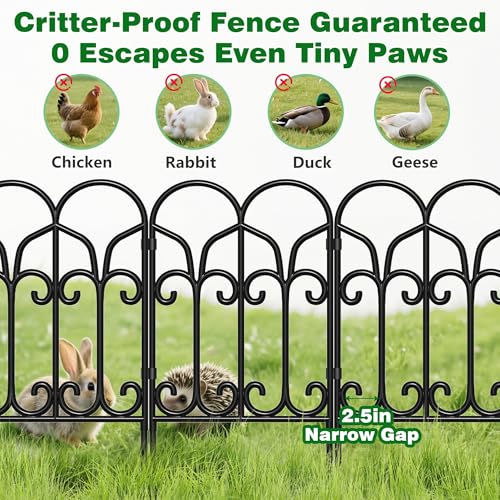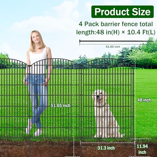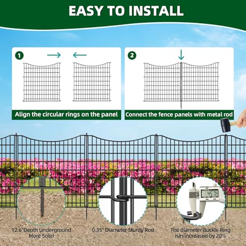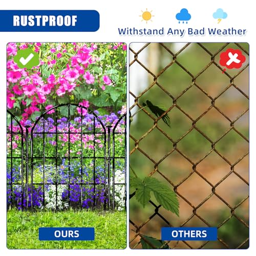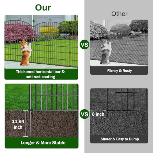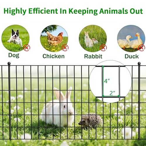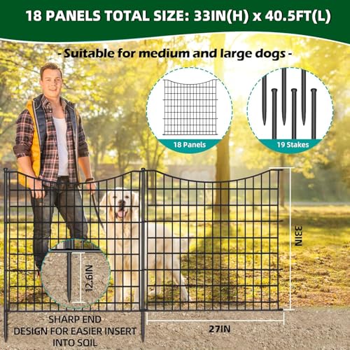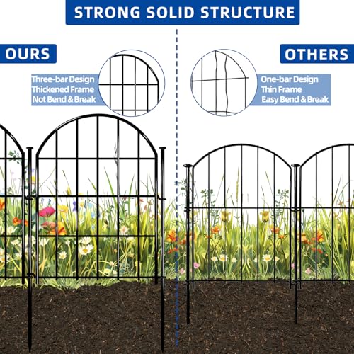 10 Panels No Dig Decorative Garden Fence - 40 in (H) x 23.6 ft (L), Dog Fence Outdoor for Yard,Rustproof Metal Animal Barrier Ground Stakes Fencing for Garden, Patio, Flower Bed