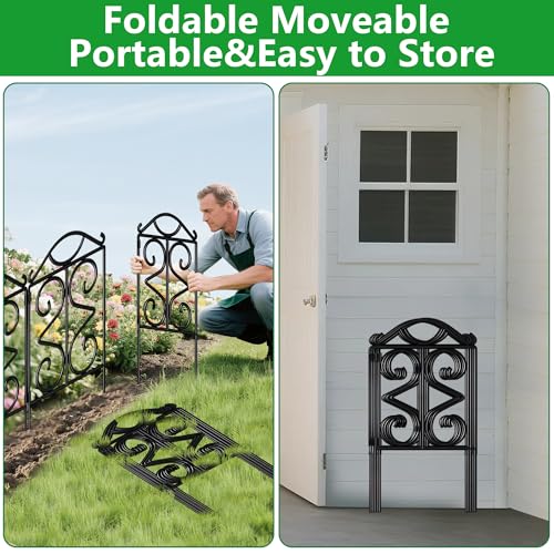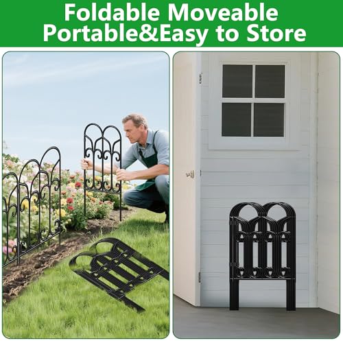 28 Pack Decorative Garden Fence Outdoor 24in (H) x 30ft (L) Coated Metal RustProof Landscape Wrought Iron Wire Border Folding Patio Fences Flower Bed Fencing Animal Barrier Section Panels Decor