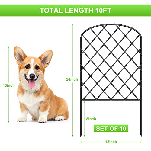 OUSHENG 10 Pack Decorative Garden Fence, Total 10ft(L) x 24in(H) Animal Barrier Border, Rustproof Metal Wire Section Edging Fencing Panel for Outdoor Patio Garden Yard, Arched