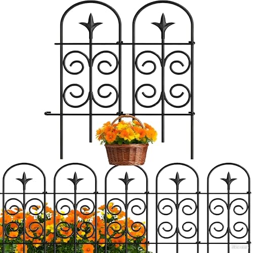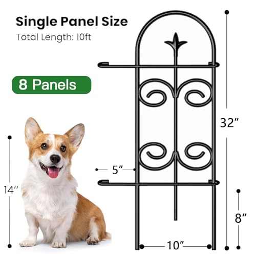 AMAGABELI GARDEN & HOME 8 Panels 32in(H)×10ft(L) Decorative Garden Fences and Borders for Dogs Pre-Linking Panels No Dig Garden Edging Border Fence for Animal Barrier Fencing for Flower Bed Yard Patio