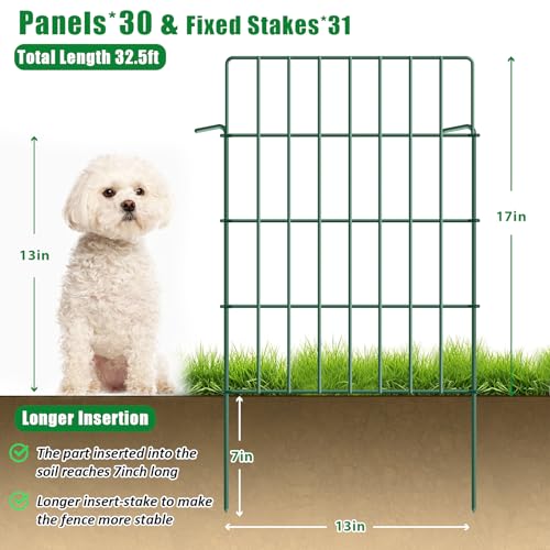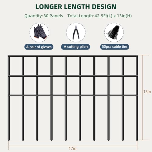 42.5ft(L) x 13in(H) Animal Barrier Fence, 30 Panels No Dig Garden Fence for Dog Rabbit, Rustproof Anti Digging Barrier, Garden Edging Border Ground Defense for Outdoor, Yard, Patio