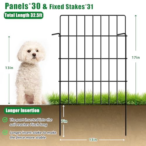 30 Pack Decorative Garden Fence Total 32.5ft (L) x 24in High 1.44" Gap Metal Wire Rustproof Small Animal Barrier Fence Easy Assembly Patio Yard Seedlings Protection Fencing Border Black