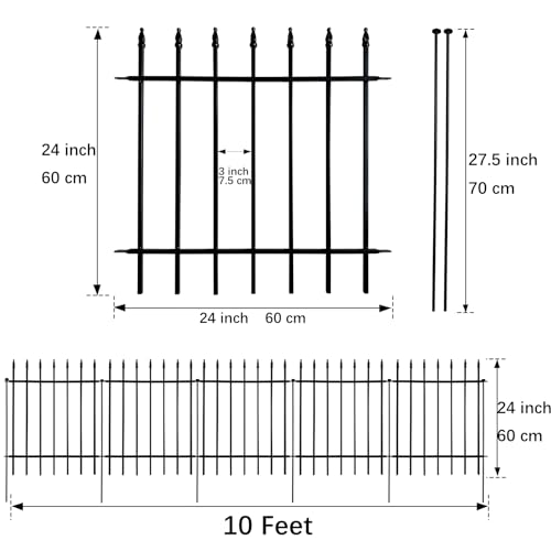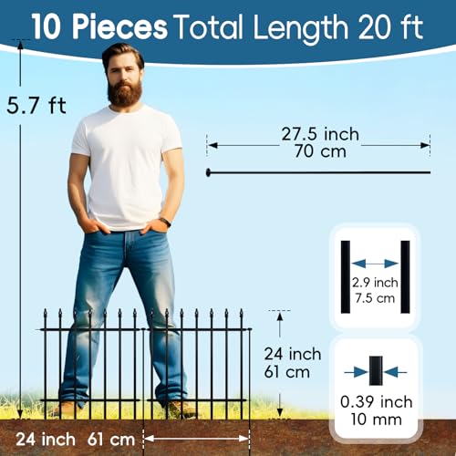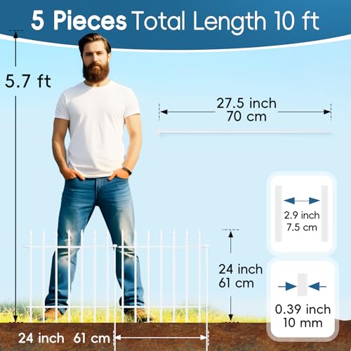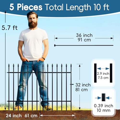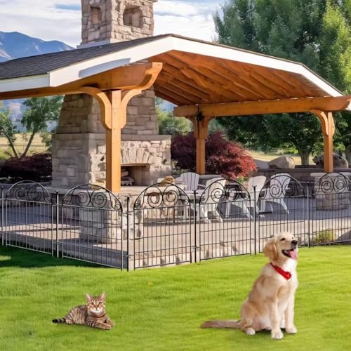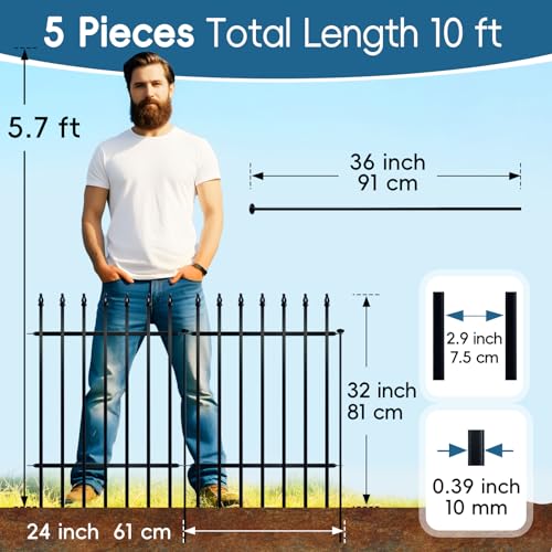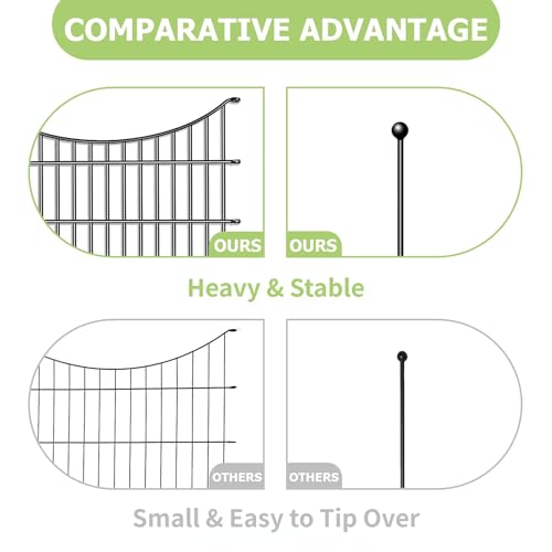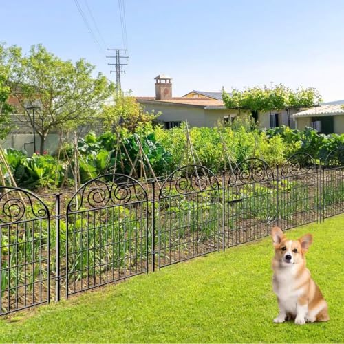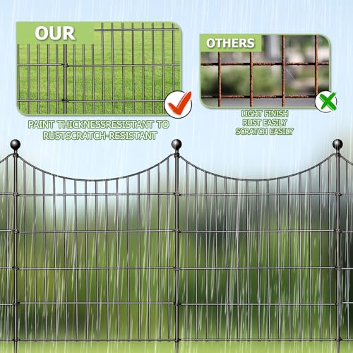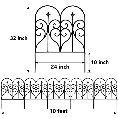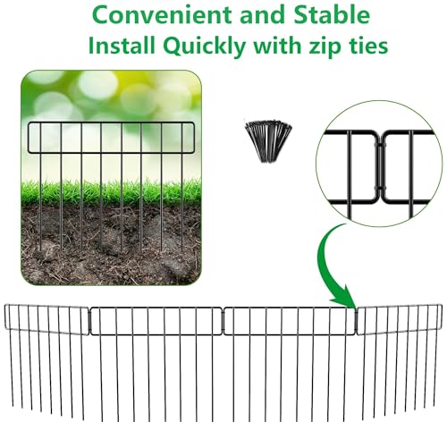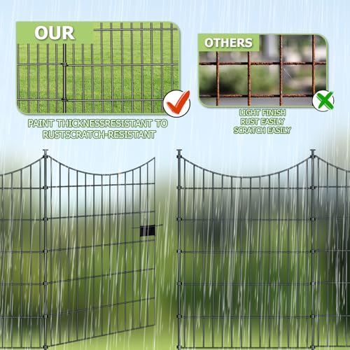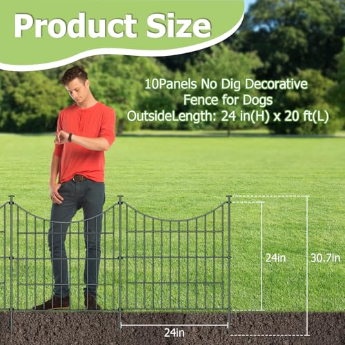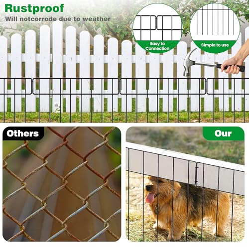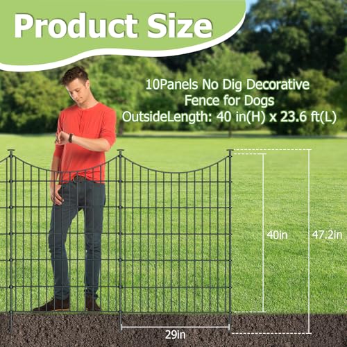 10 Panels Garden Fence Dog Fence Outdoor for Yard, 32in H x 23.6ft L Rustproof Metal Fencing with Ground Stakes | No Dig Animal Proof Containment for Pets/Rabbits | Durable Patio Security Panels