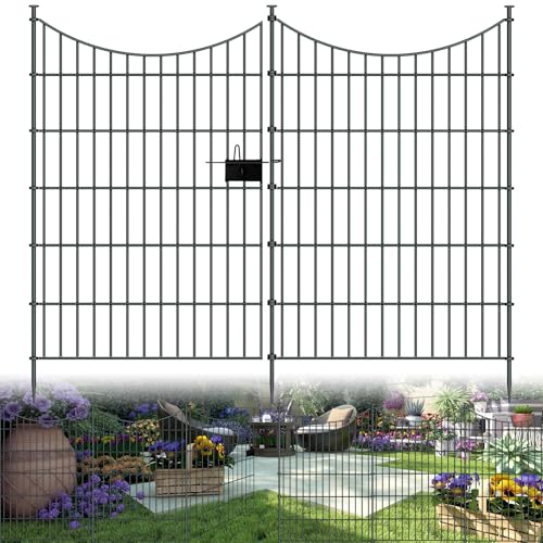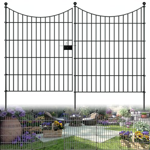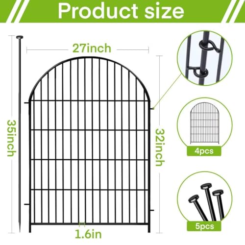 ADAVIN Garden Fence Animal Barrier with Gate 32 in(H)×35 Ft(L) 16 Panels,Rustproof Metal Wire Tall Fencing Border for Dogs Rabbits,Outdoor no dig pet Fences,Black Flower Edging for Yard,Arched